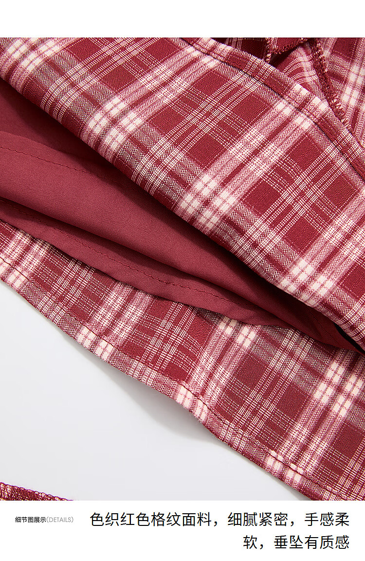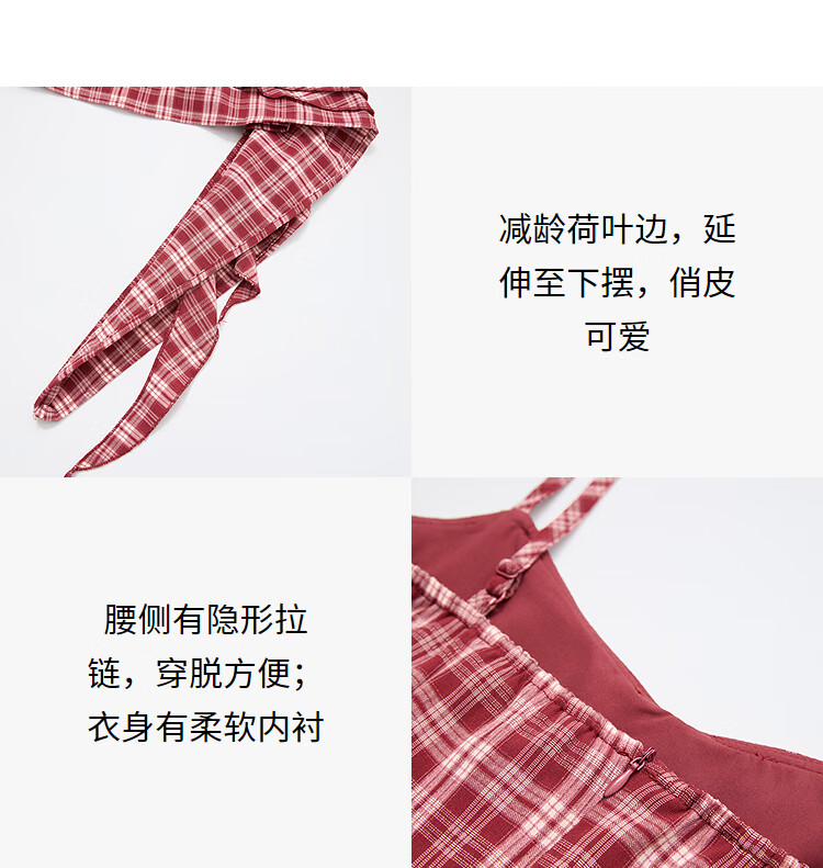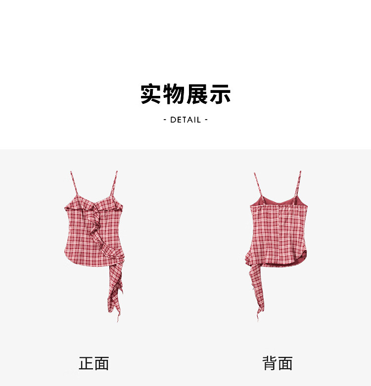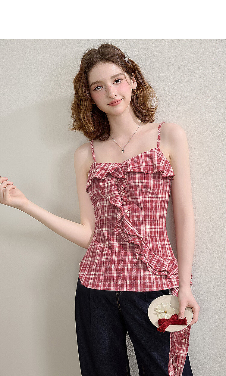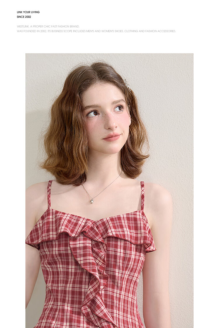 西遇(Westlink)【明媚少女】辣妹复古红色格纹收腰荷叶边吊带女2025夏季上衣 红色 S (155)