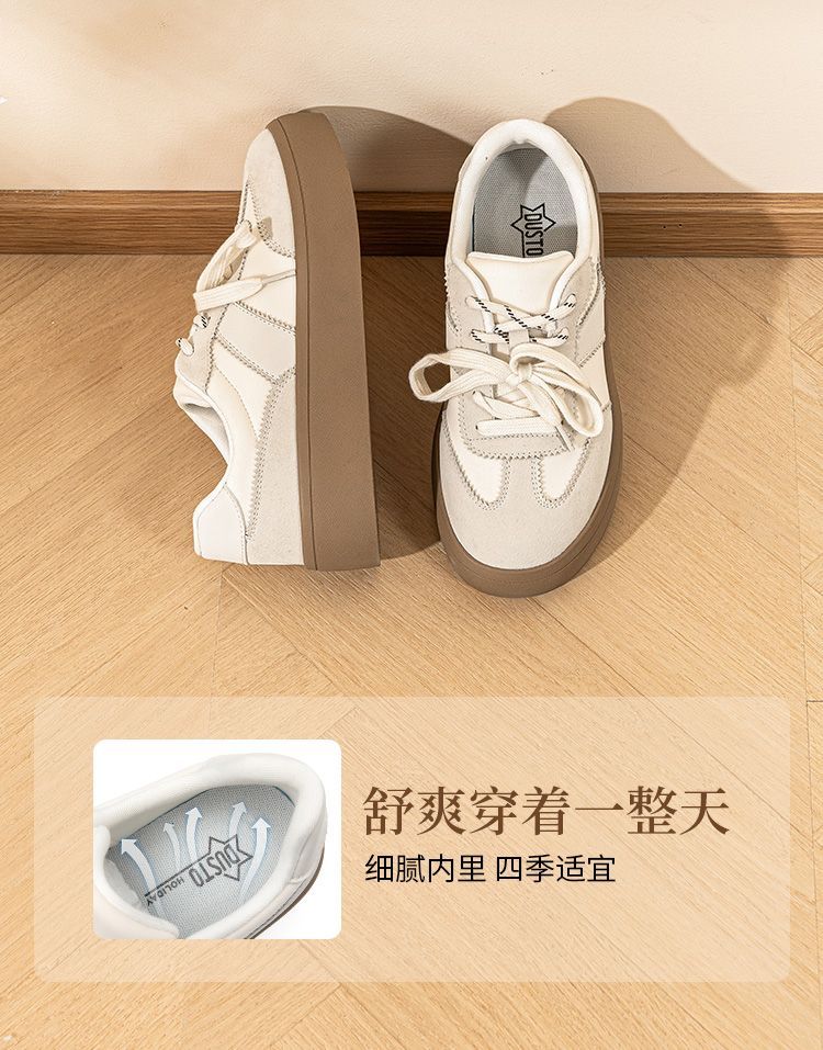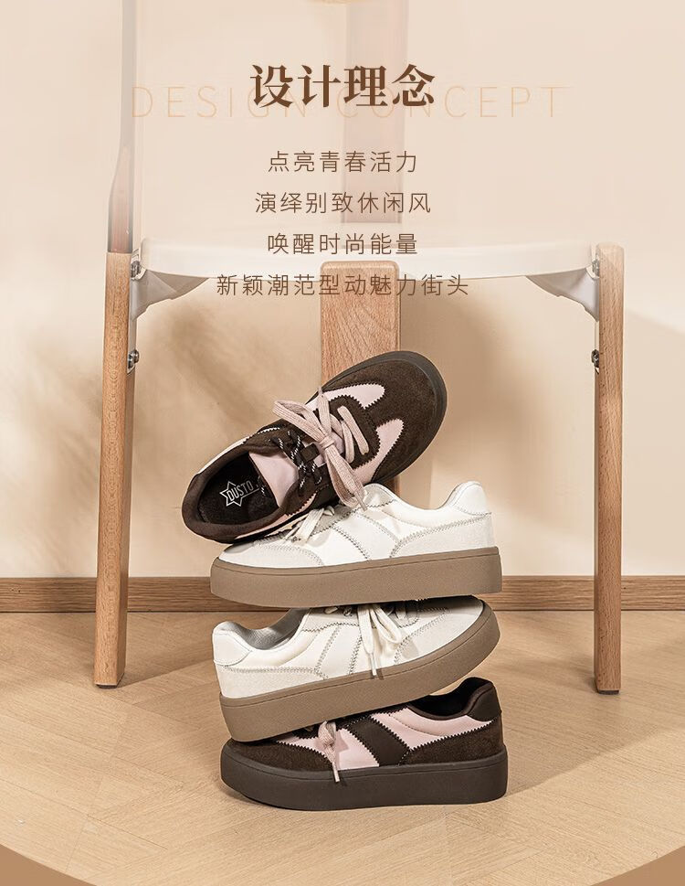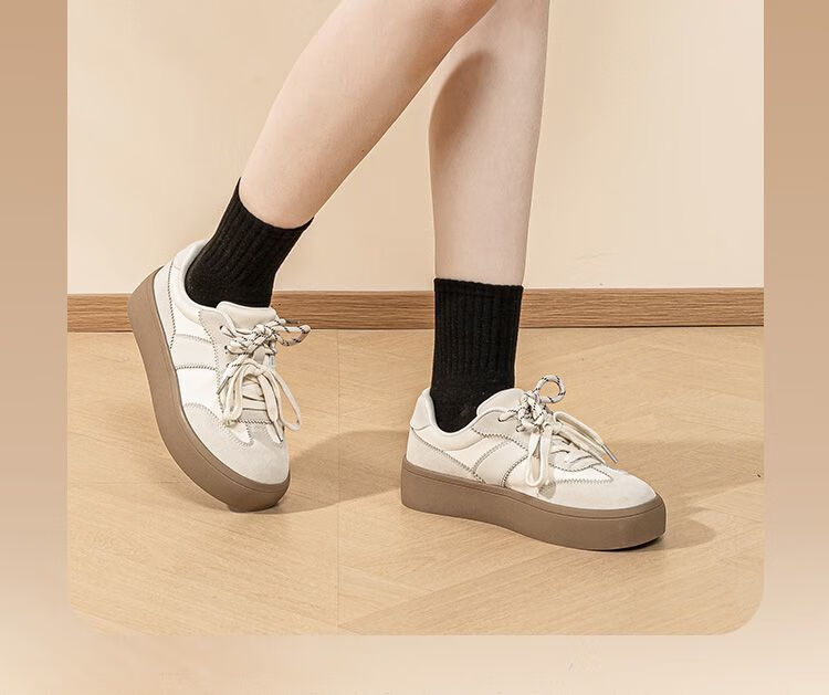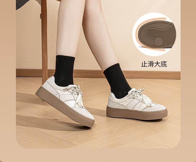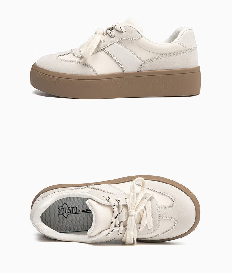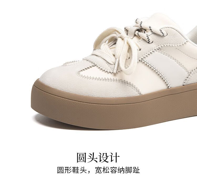 大东(dusto)平底复古德训鞋2025年夏季拼接百搭舒适女鞋学生运动板鞋0130 米色 35