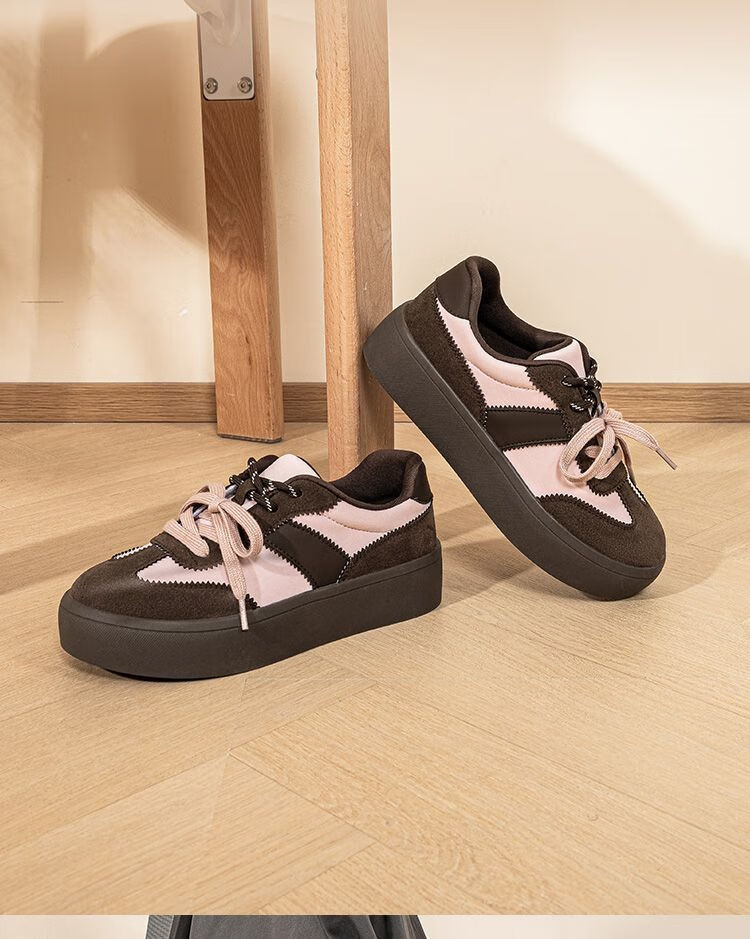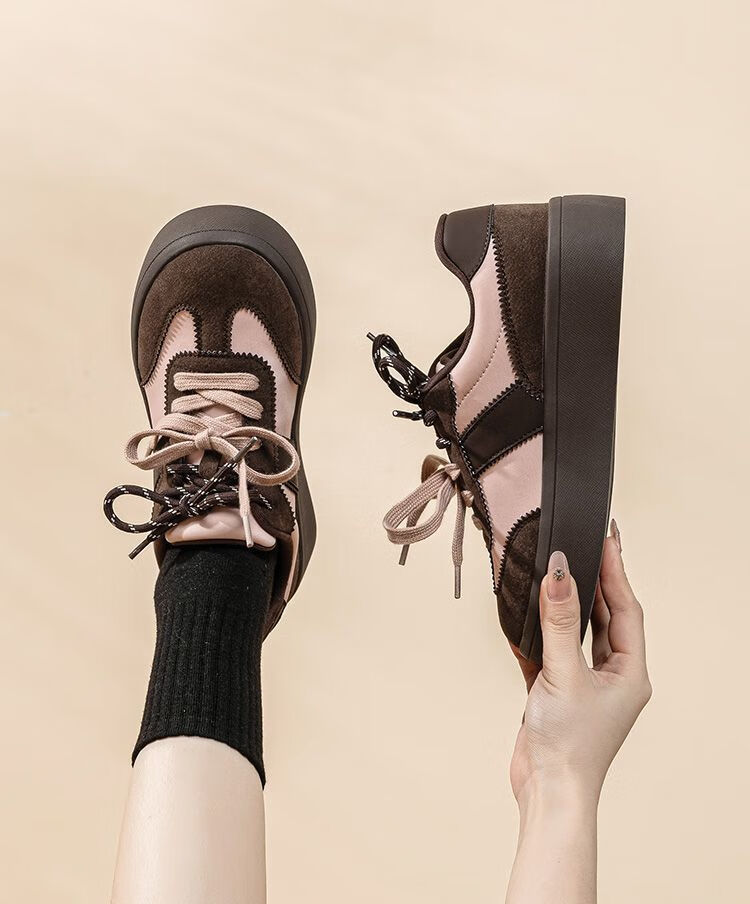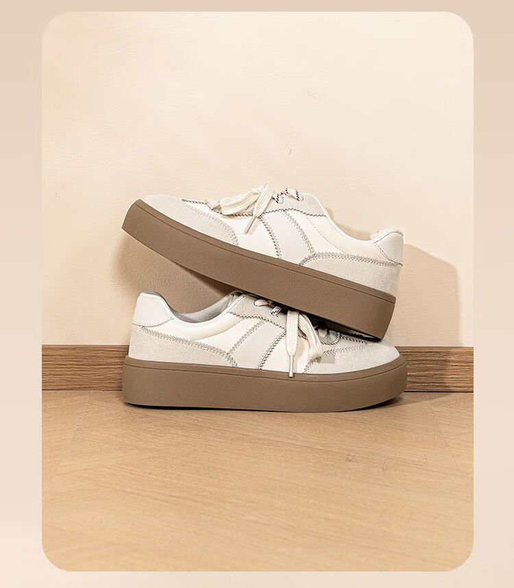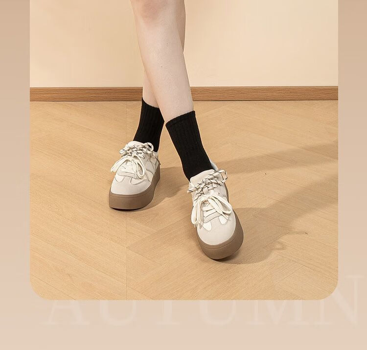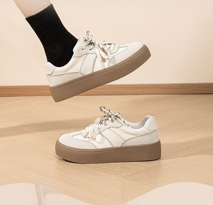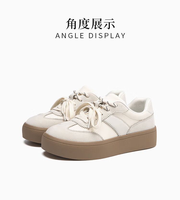 大东(dusto)平底复古德训鞋2025年夏季拼接百搭舒适女鞋学生运动板鞋0130 米色 35