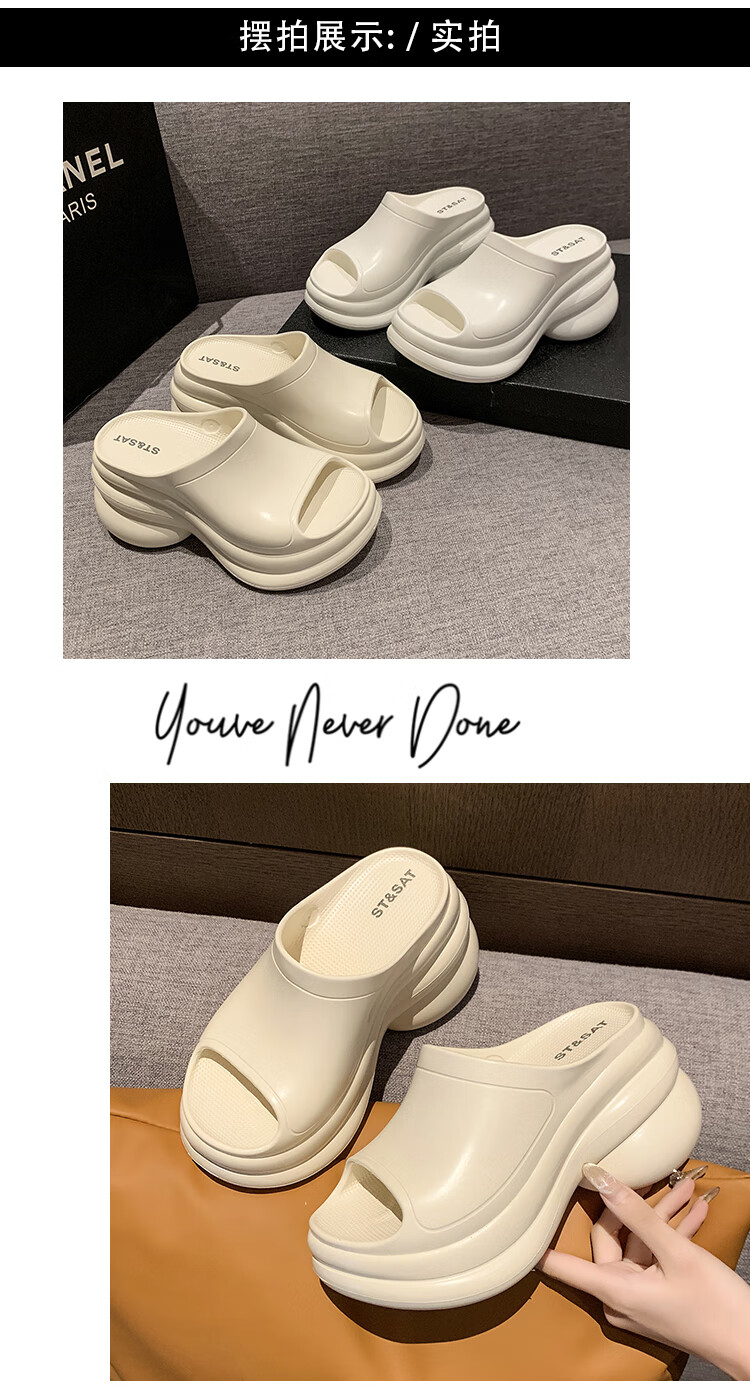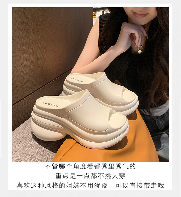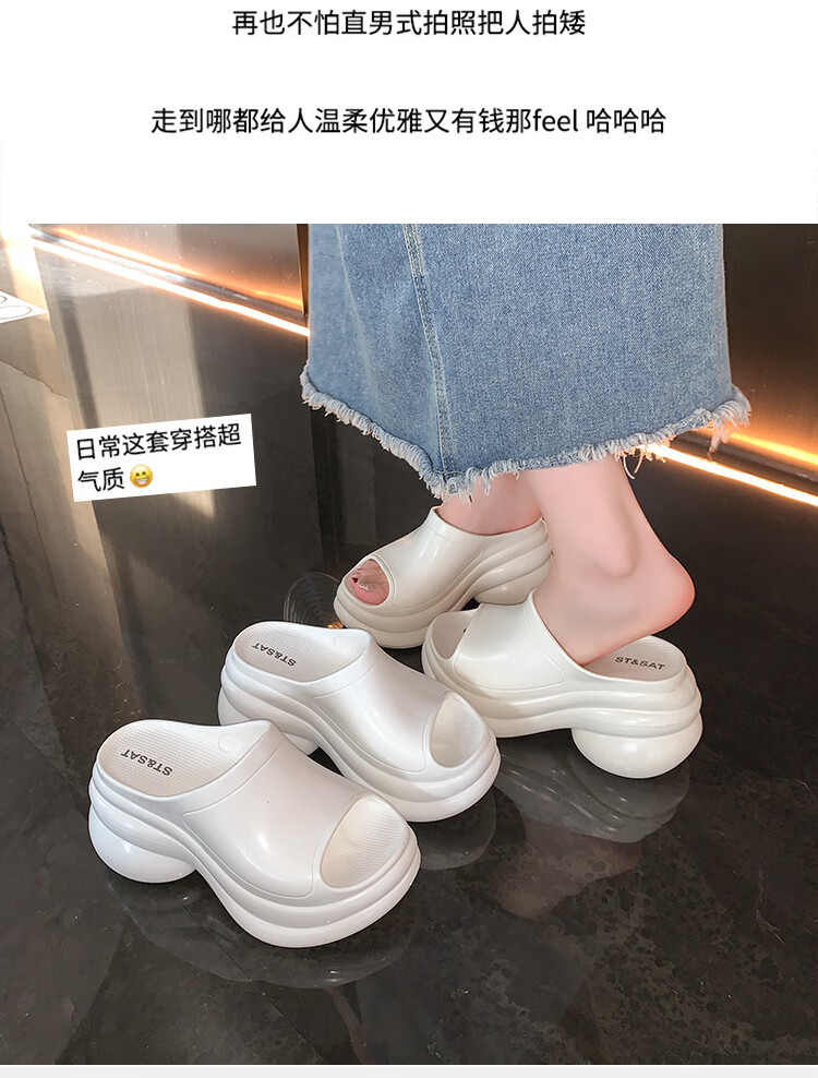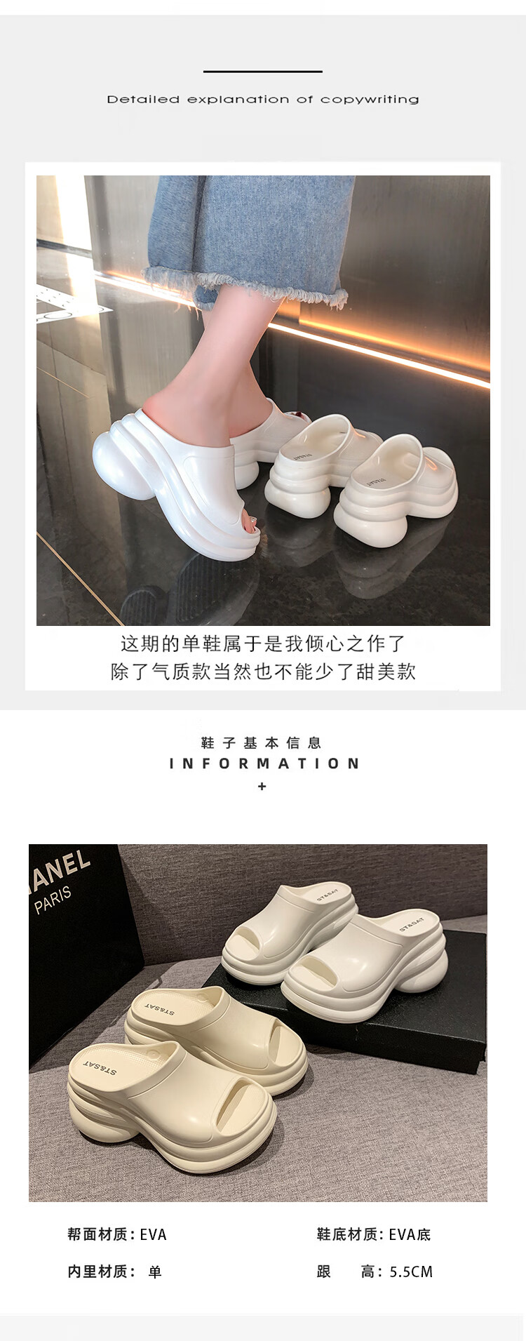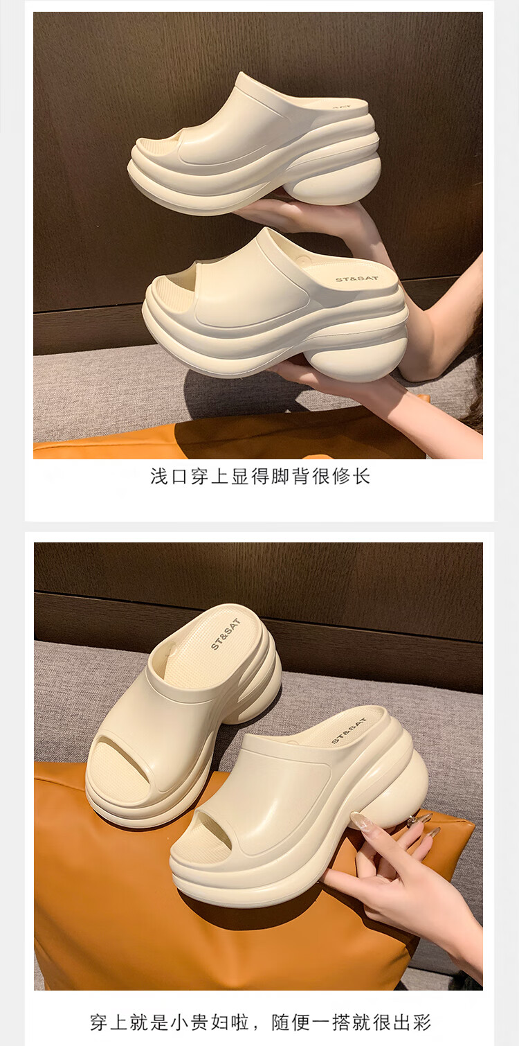 星期六【增高6公分】洞洞鞋踩屎感软底夏季2025新款舒适防滑百搭女凉鞋 乳白 37