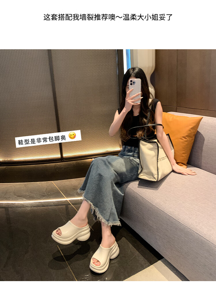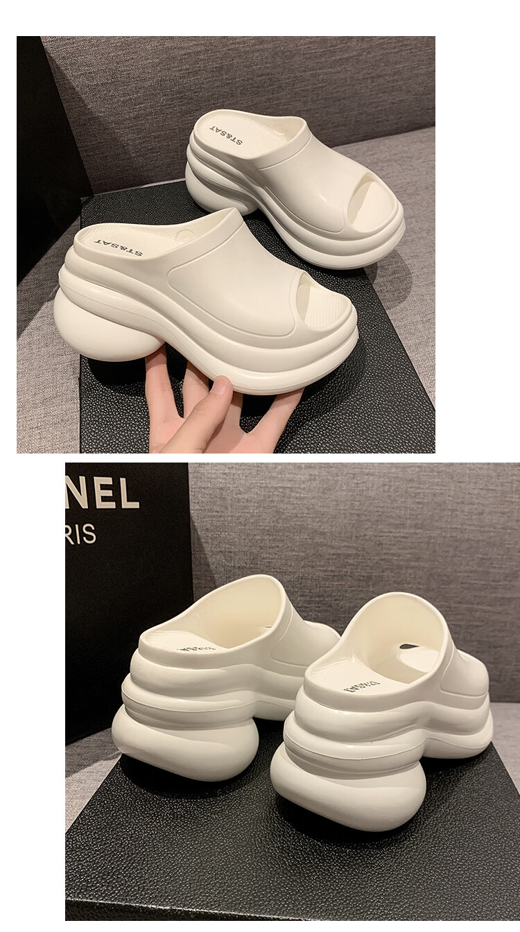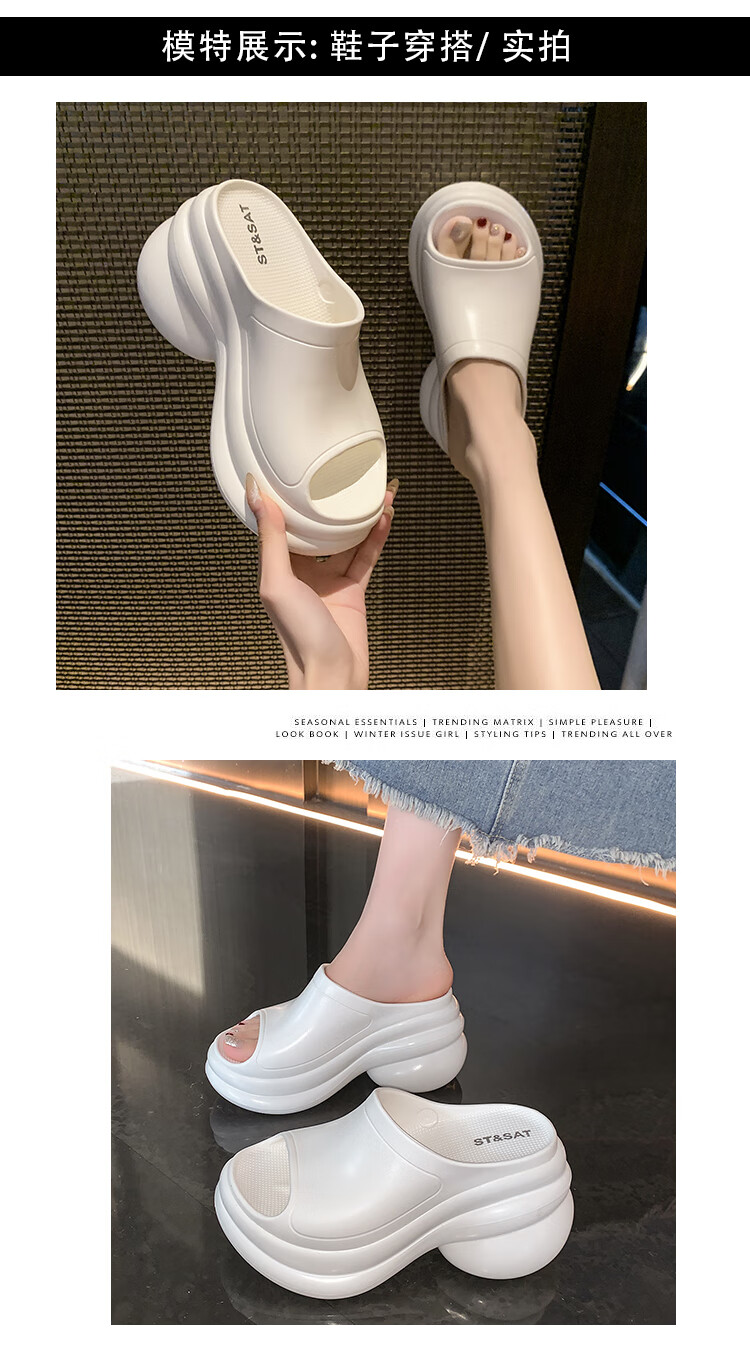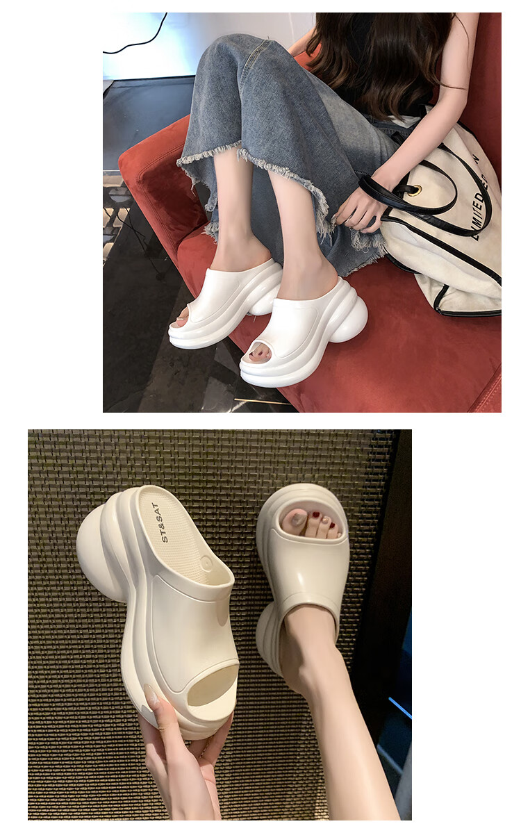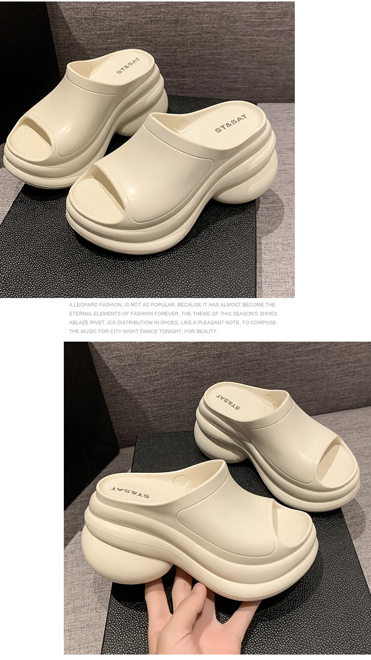 星期六【增高6公分】洞洞鞋踩屎感软底夏季2025新款舒适防滑百搭女凉鞋 乳白 37
