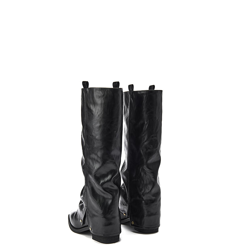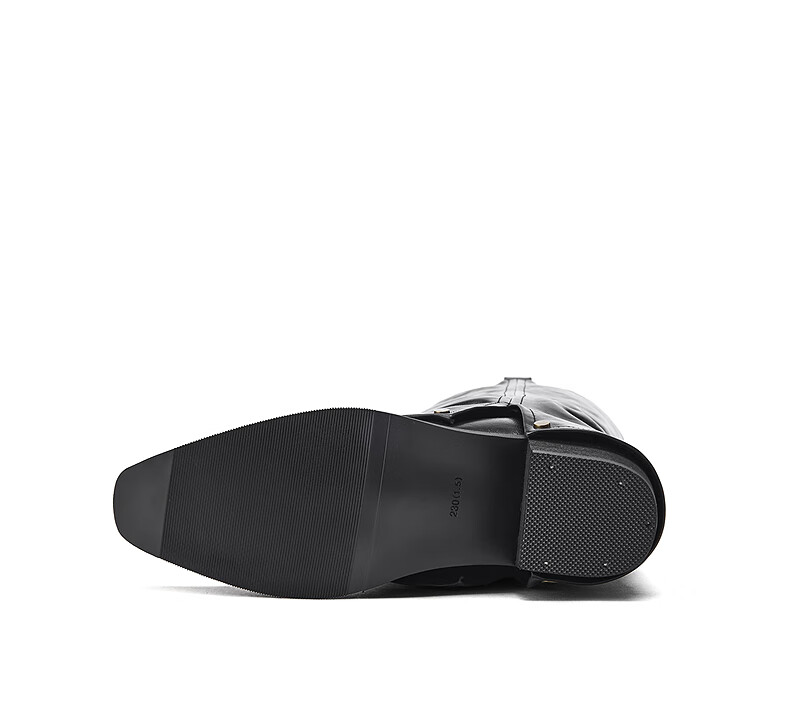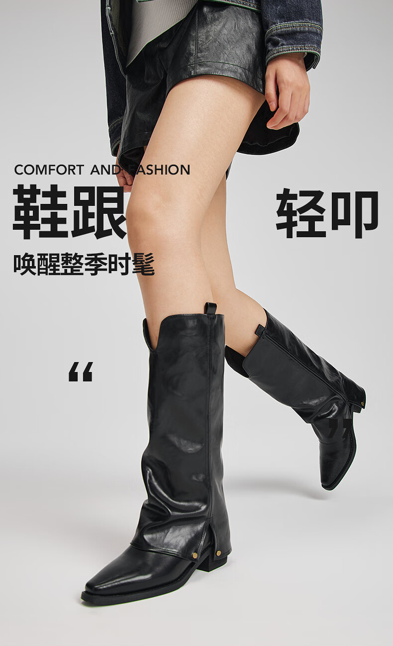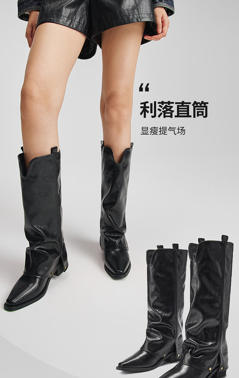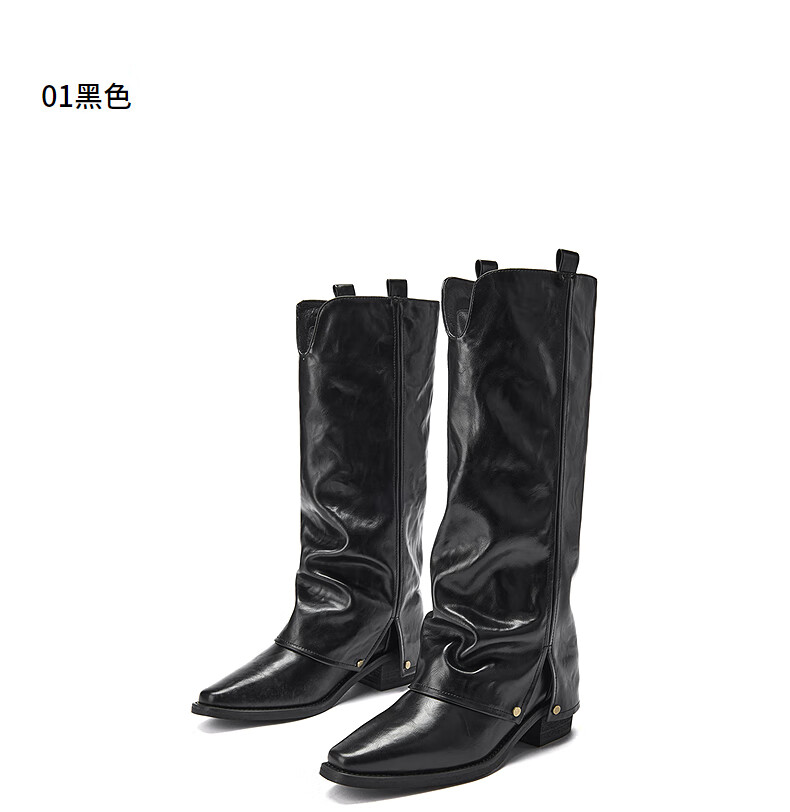 热风尖头骑士靴女款2025年冬季新款百搭长筒靴子黑色西部牛仔靴女 01黑色 38
