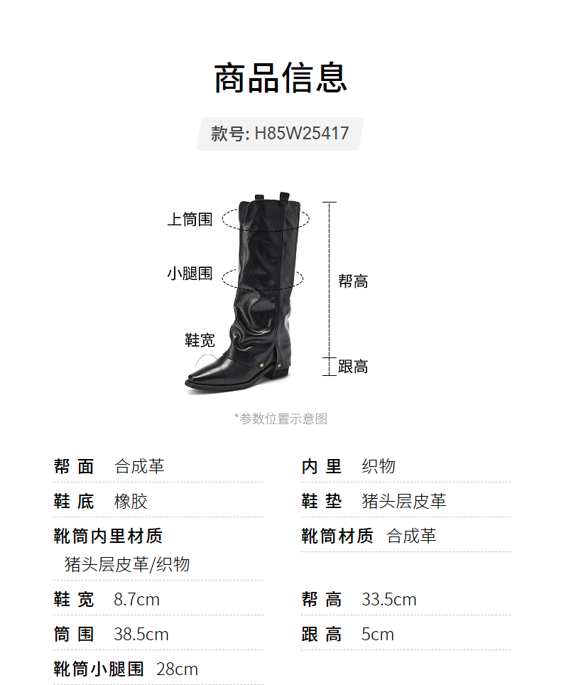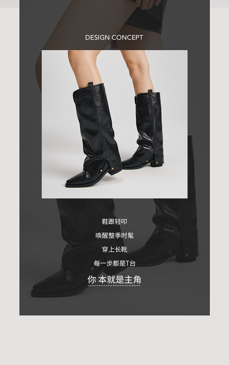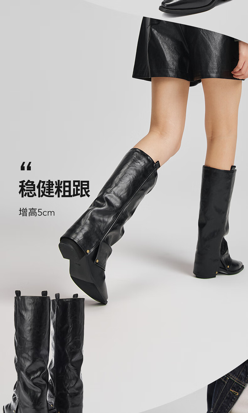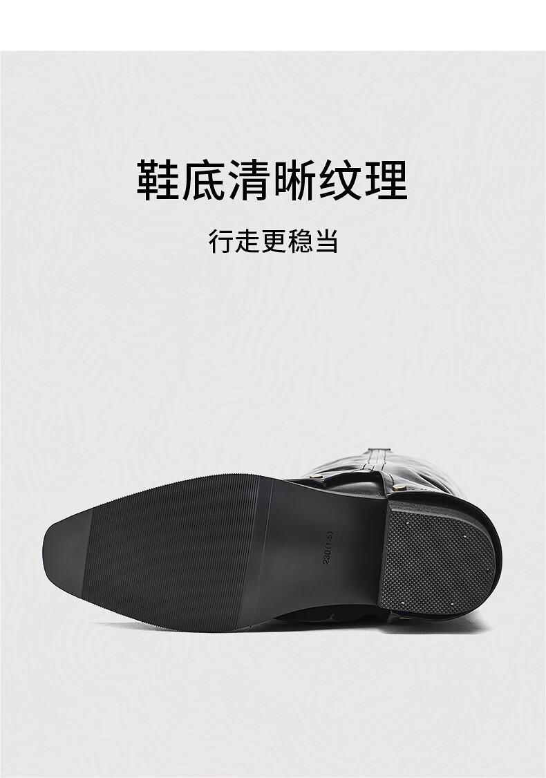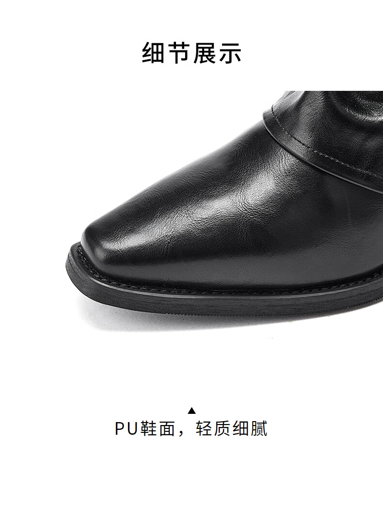 热风尖头骑士靴女款2025年冬季新款百搭长筒靴子黑色西部牛仔靴女 01黑色 38