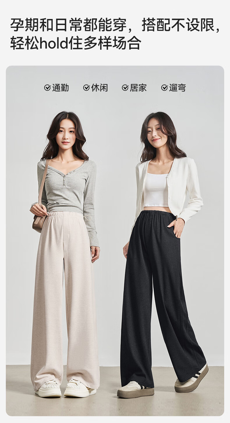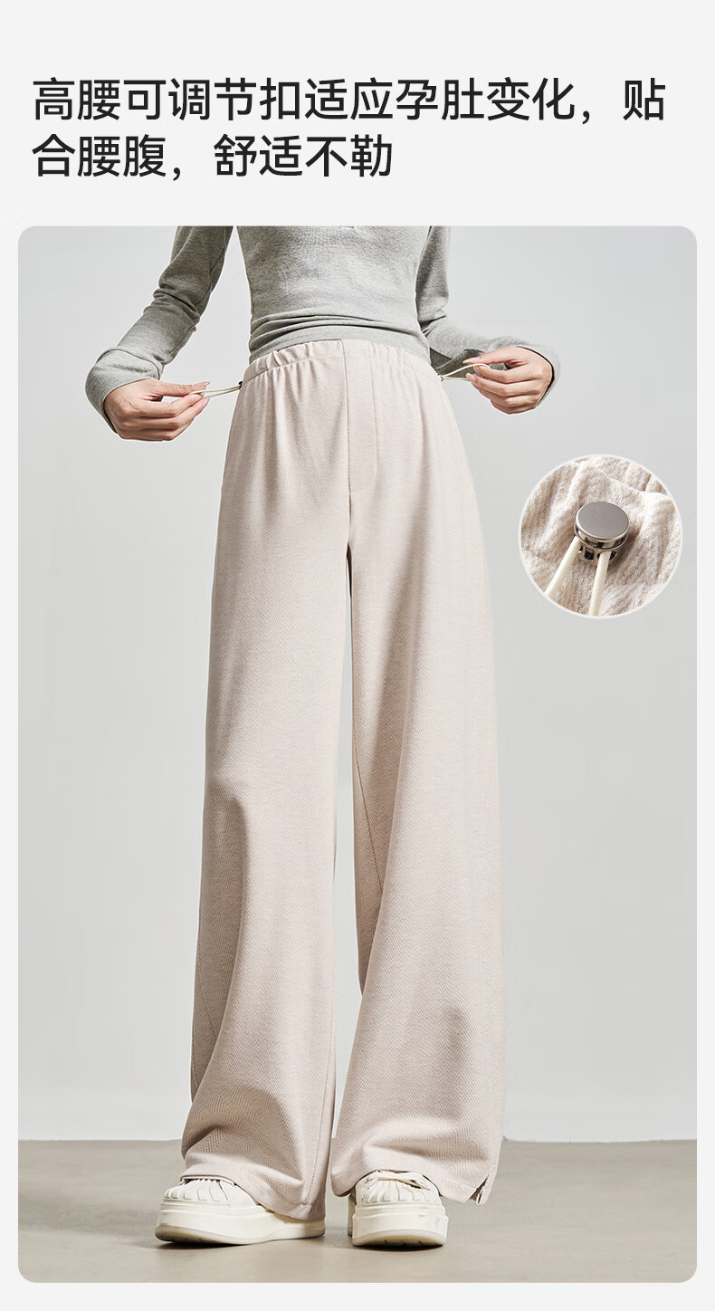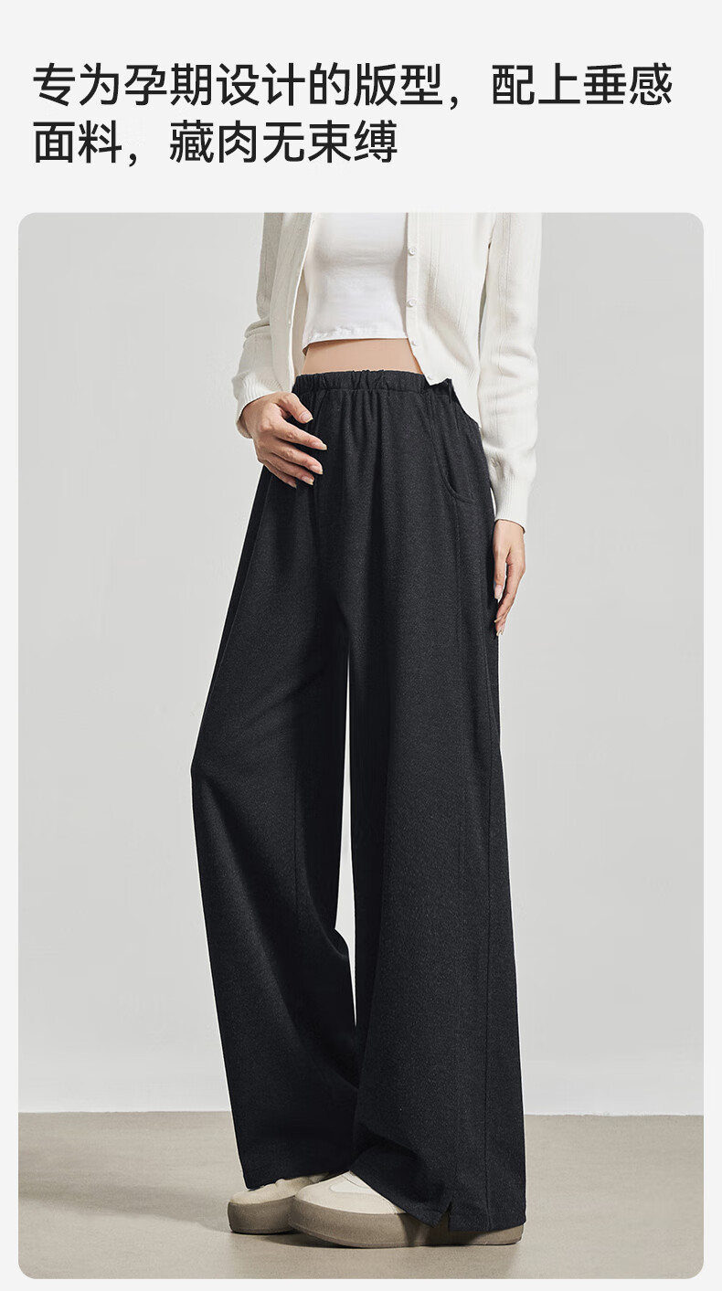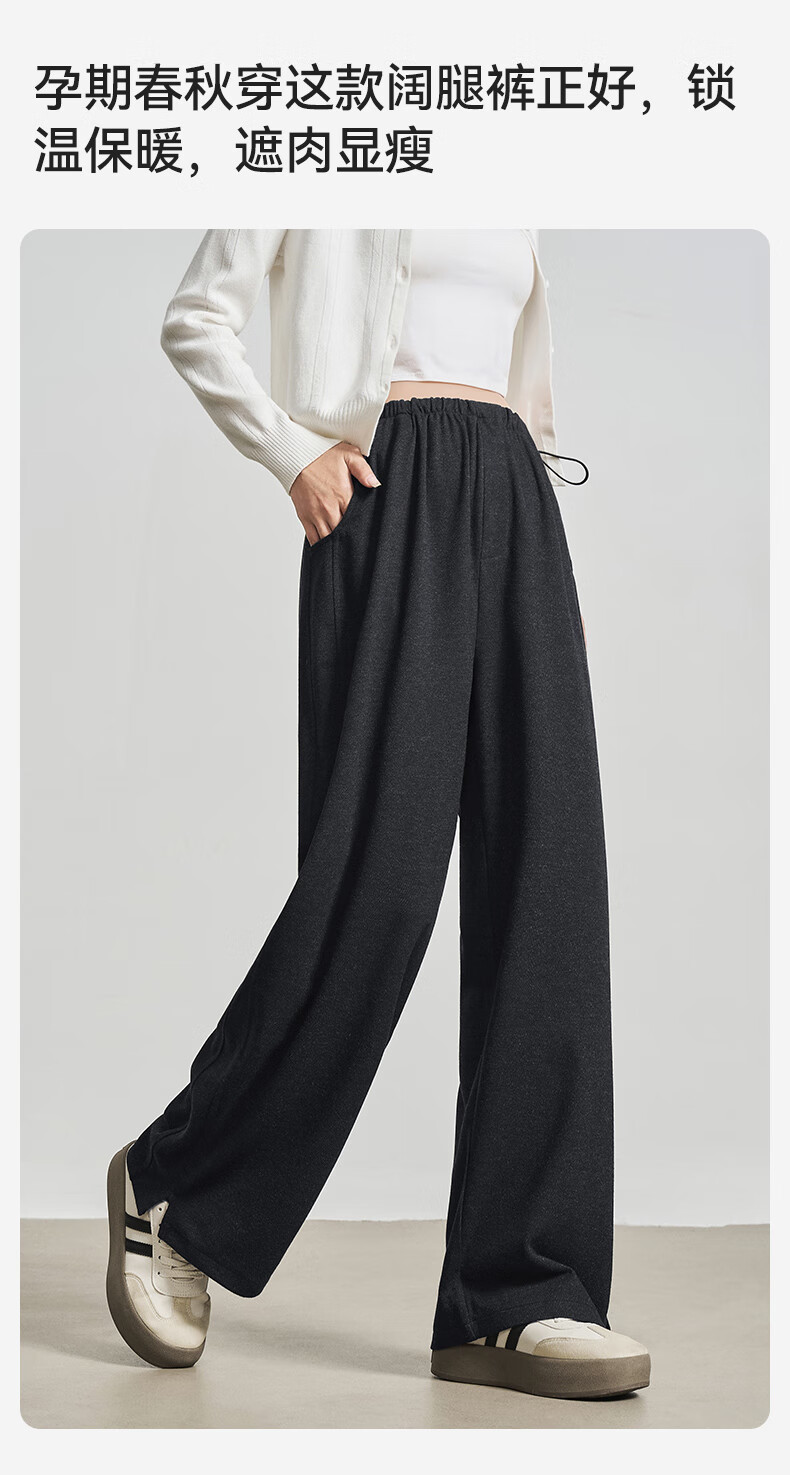 十月结晶孕妇裤子春秋四季外穿阔腿裤宽松百搭休闲托腹裤 黑棕色-【10A抗菌】 M 推荐体重115-125斤