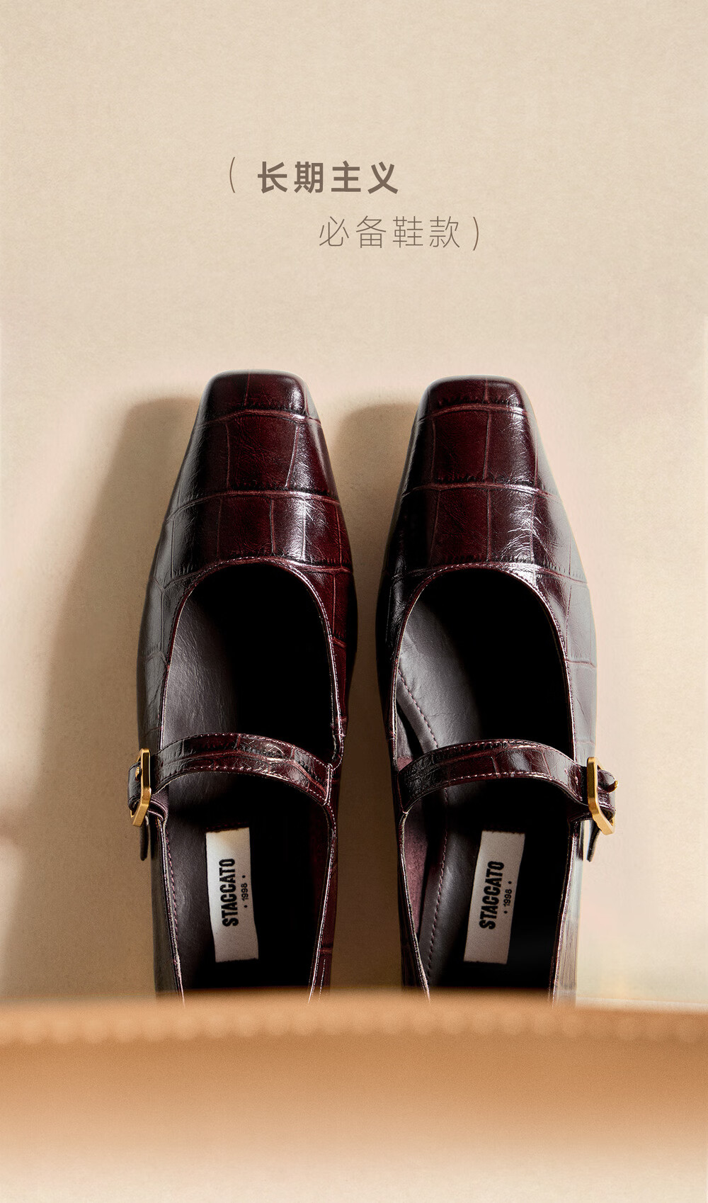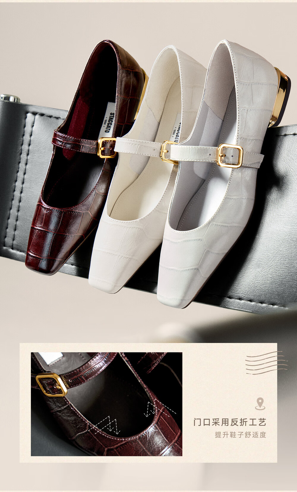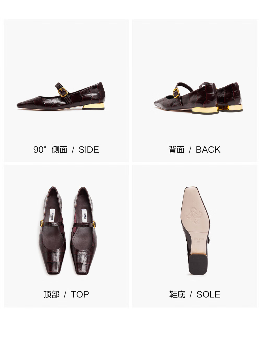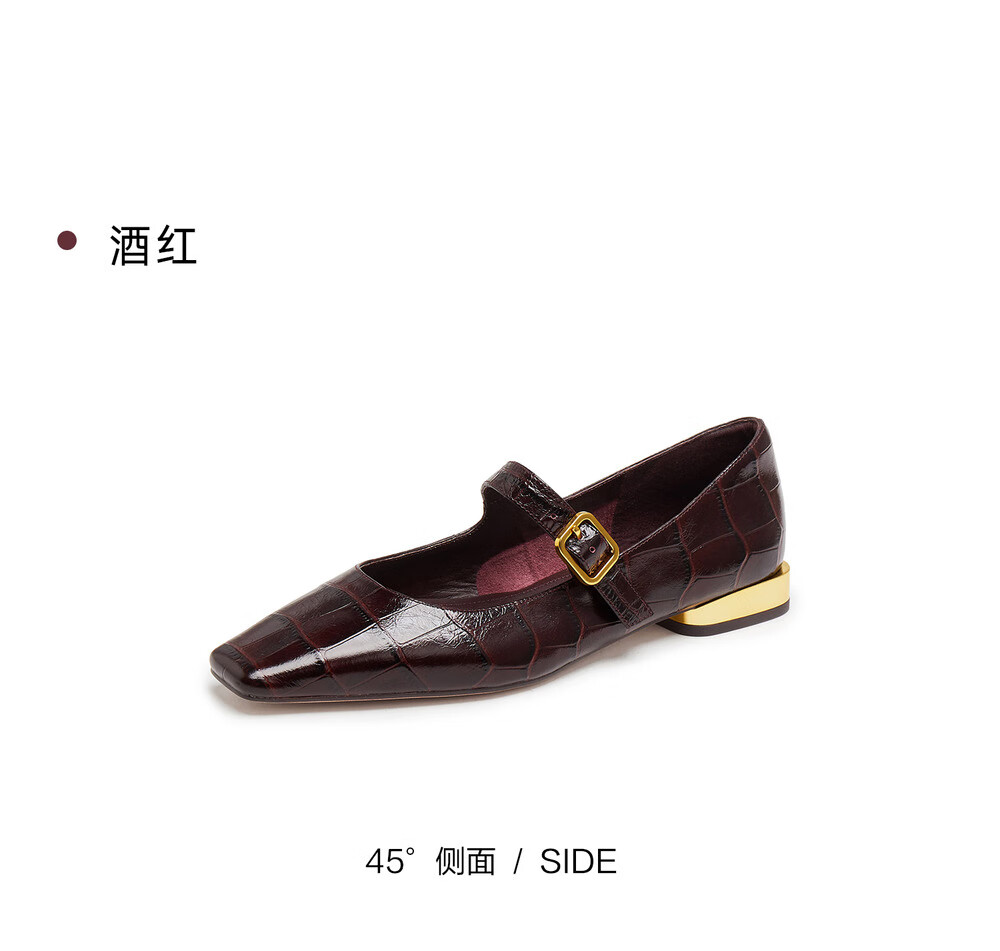 思加图2025秋季新款Annie安妮玛丽珍鞋平底鞋浅口单鞋女鞋EWV08CQ5 酒红(宽版) 36