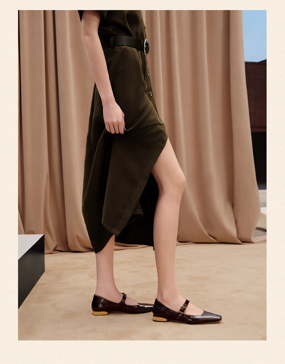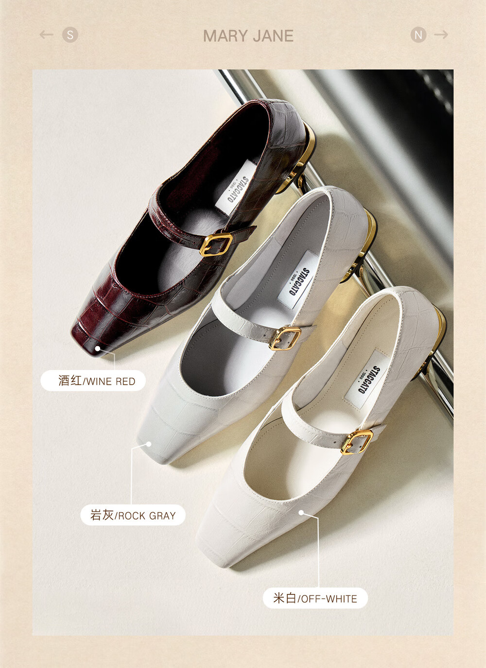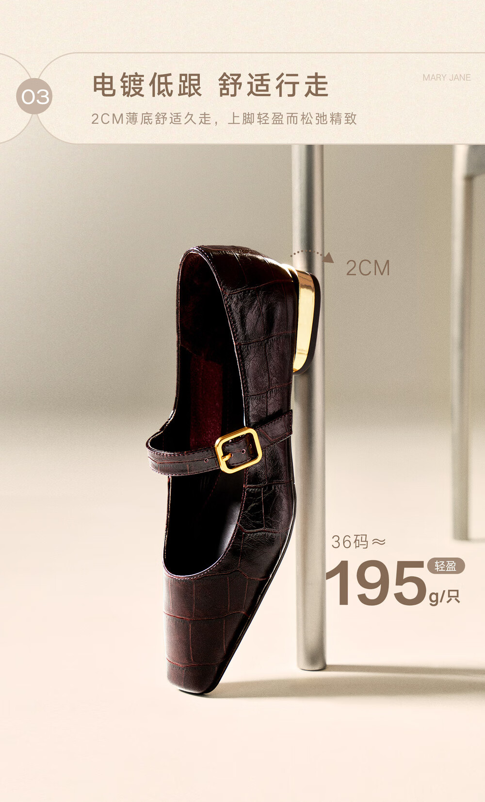 思加图2025秋季新款Annie安妮玛丽珍鞋平底鞋浅口单鞋女鞋EWV08CQ5 酒红(宽版) 36