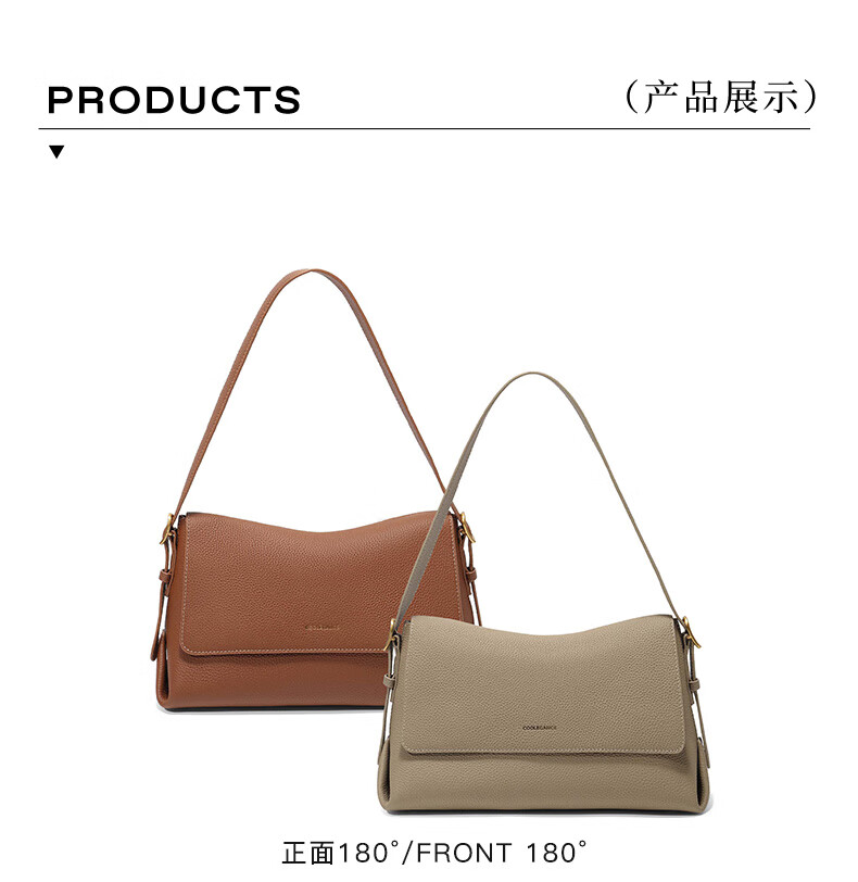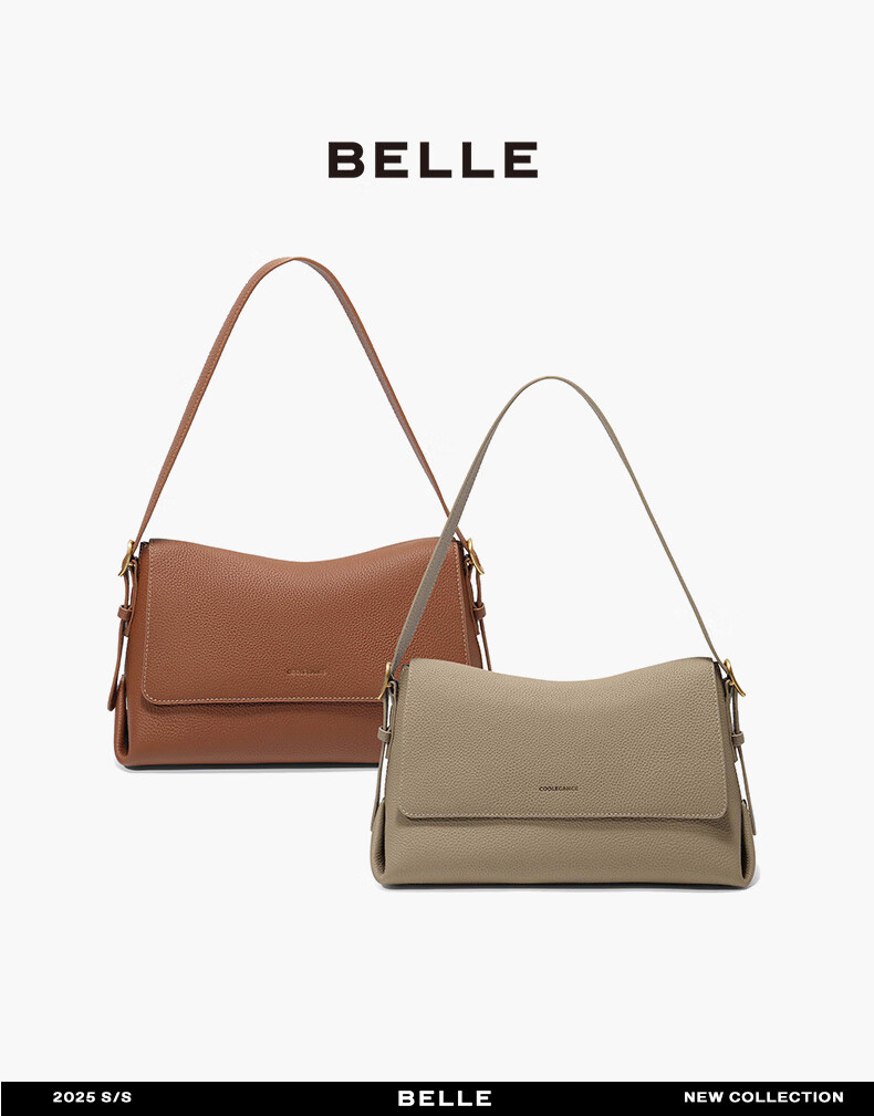百丽包包女25商场同款头层牛皮美拉德风单肩斜挎波士顿包BL861DX5 棕色【牛皮款】 F