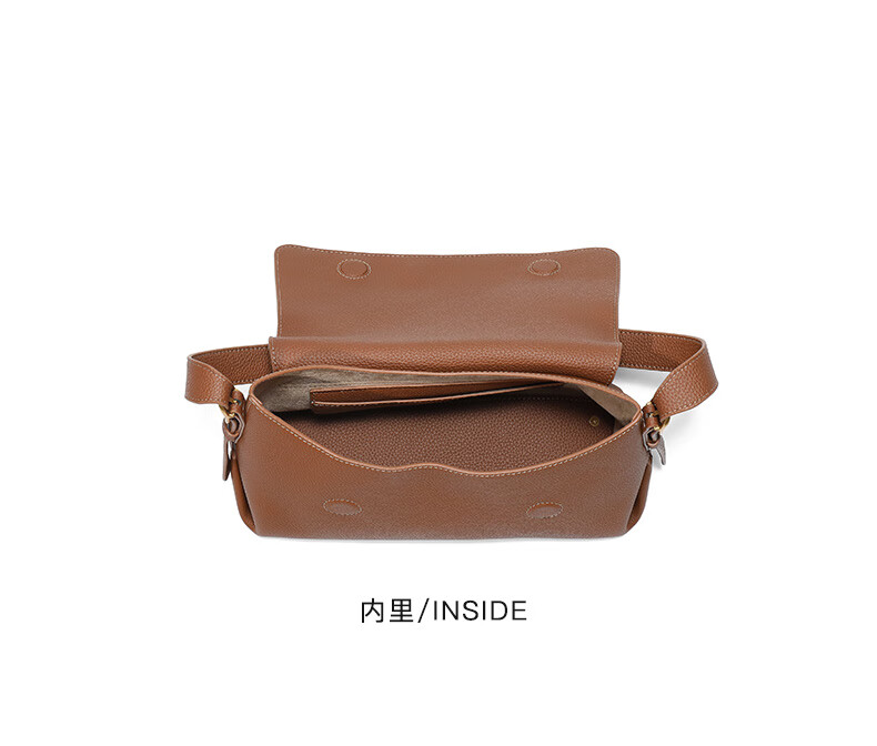 百丽包女2025秋新品复古绒牛质感邮差包单肩小方包X7371CX5 棕色 F