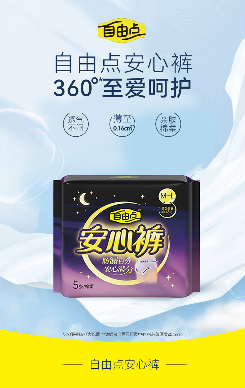 自由点安心裤裤型卫生巾 适合臀围80-105cm 透气夜用组合【安心品质】 M-L码 10条 均码