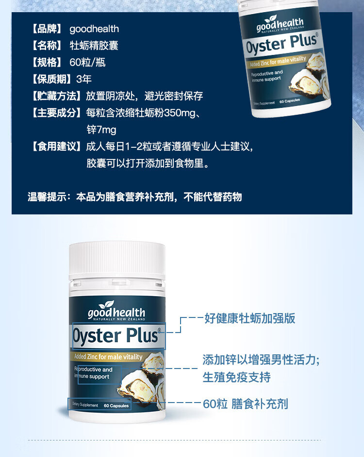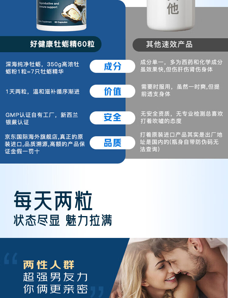 好健康goodhealth牡蛎精氨酸片补肾男士保健品生蚝精补睾酮早泄延时持久 【肾虚肾亏】加钙牡蛎精胶囊60粒/瓶