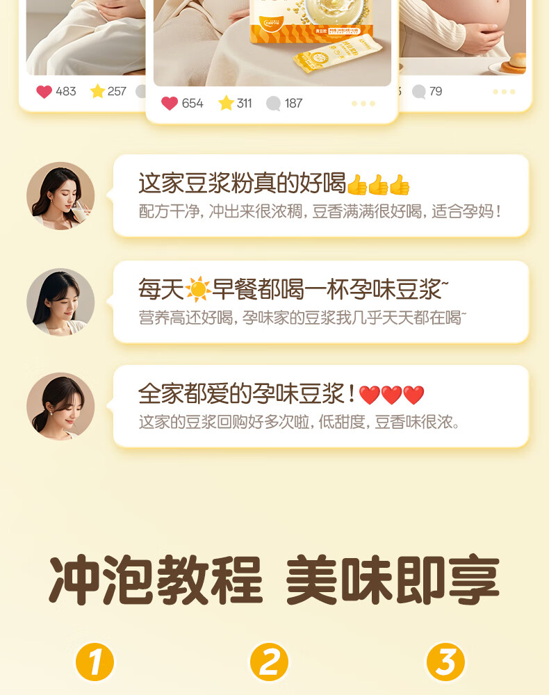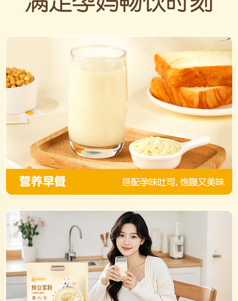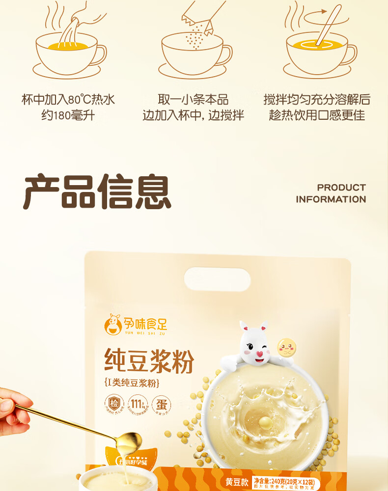 孕味食足孕妇可吃豆浆孕妇早餐纯豆浆粉0添加蔗糖黄豆浆 20g*12条