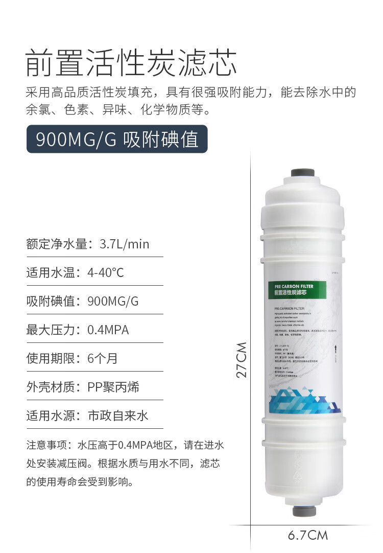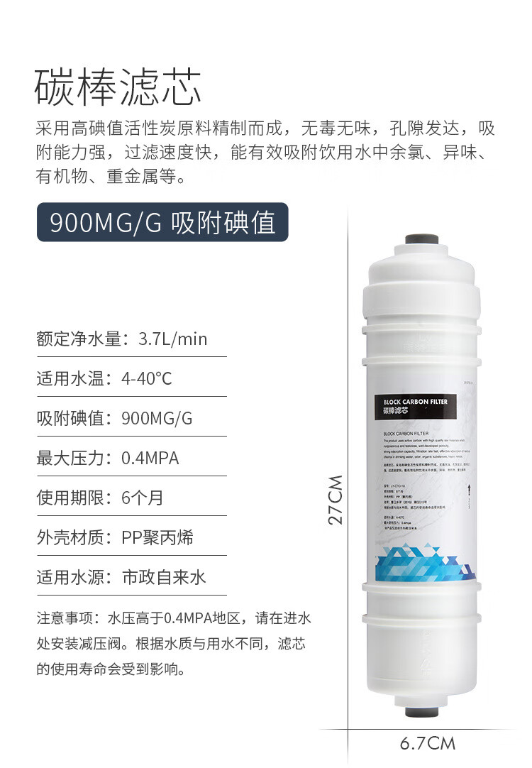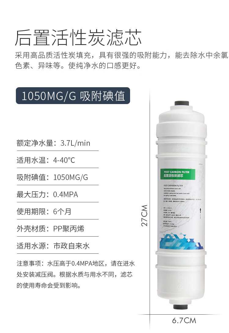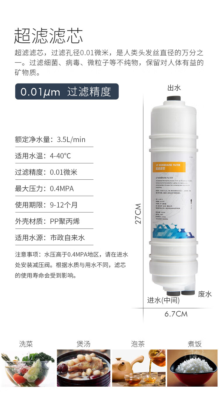 诺华清源适用九阳净水器jyw-hc-1365wu/1265WU/RC326滤芯超滤机通用快接 UDF颗粒活性炭滤芯