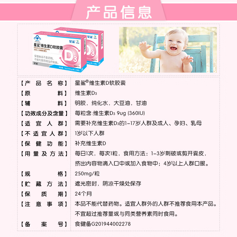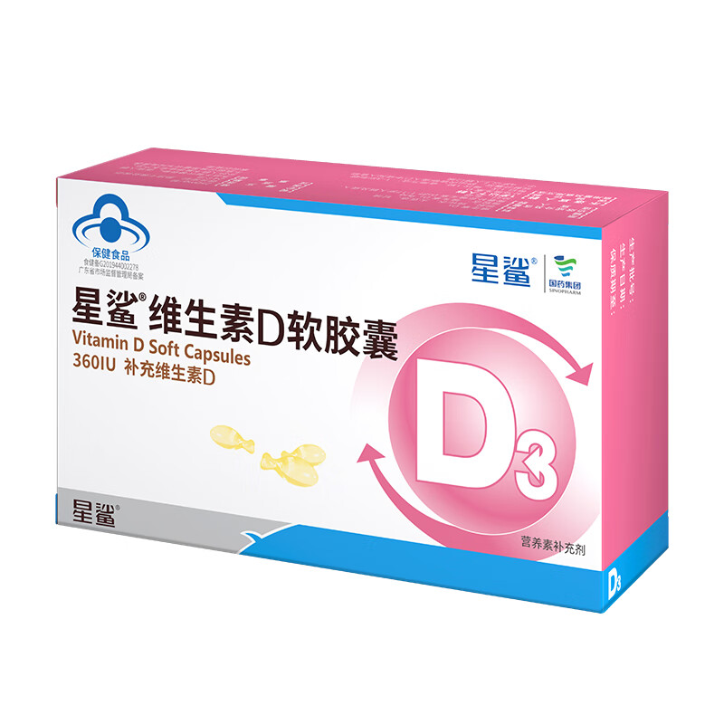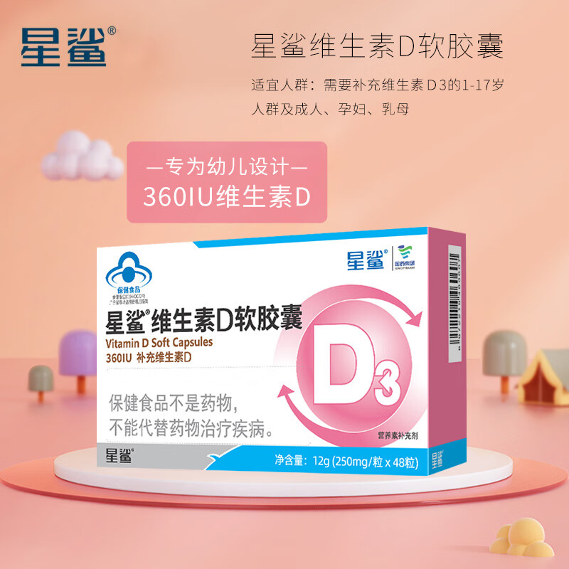 星鲨维生素D软胶囊 补充维生素D营养 10粒*5盒维生素D3软胶囊(1岁以上)
