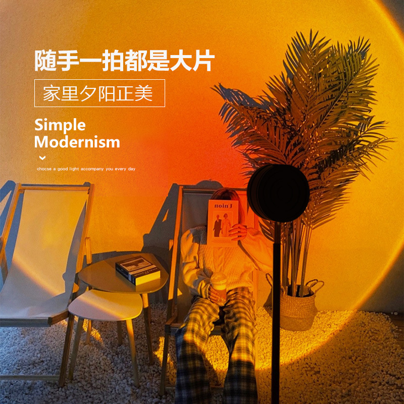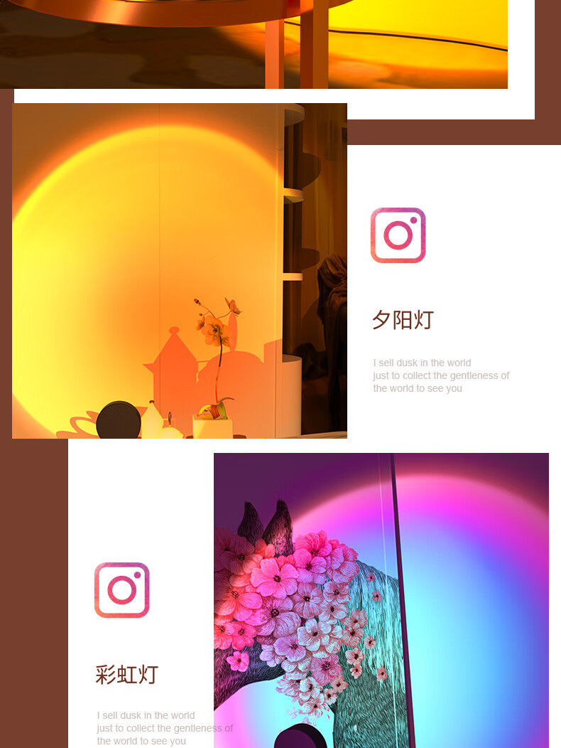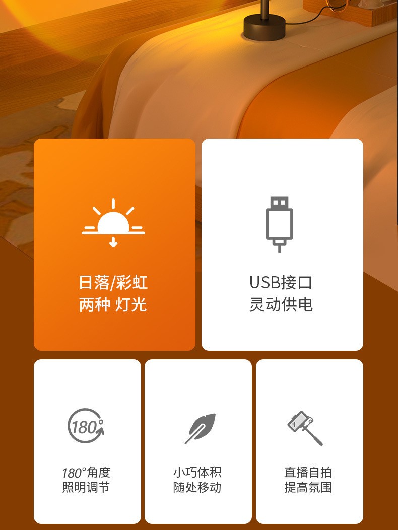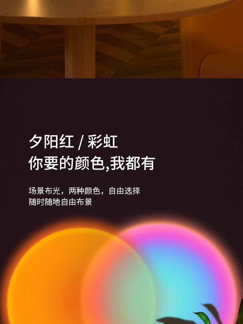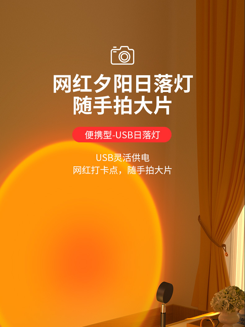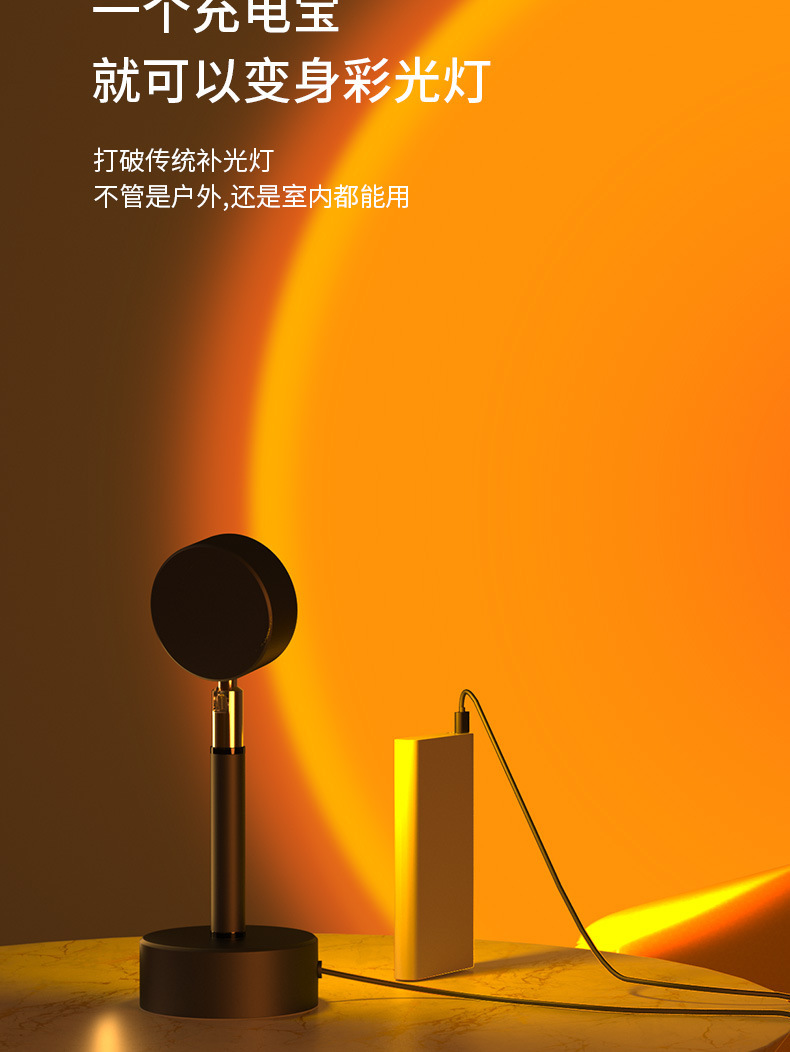 幽麦 夕阳落日灯 彩虹投影灯网红直播氛围灯 180°调节USB 夕阳红