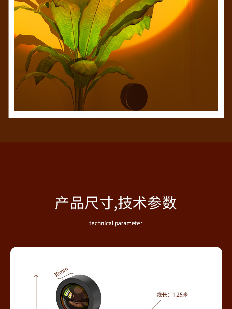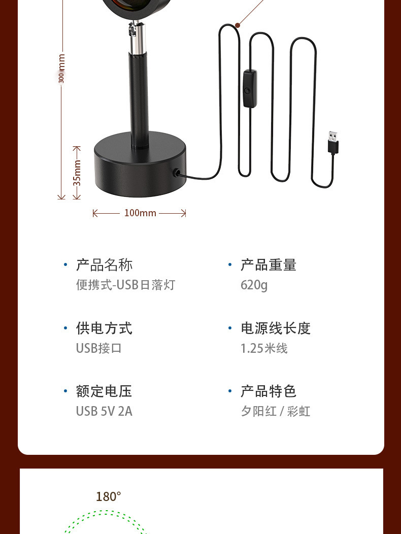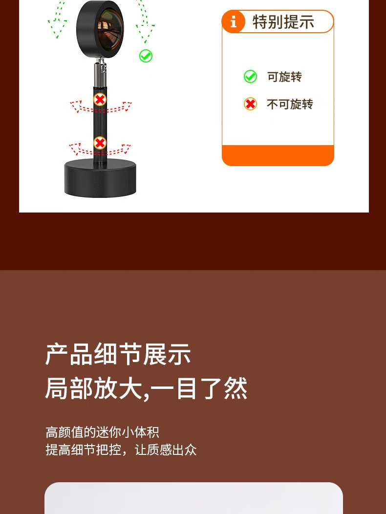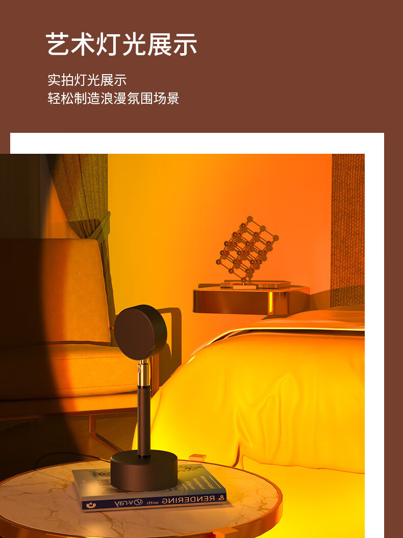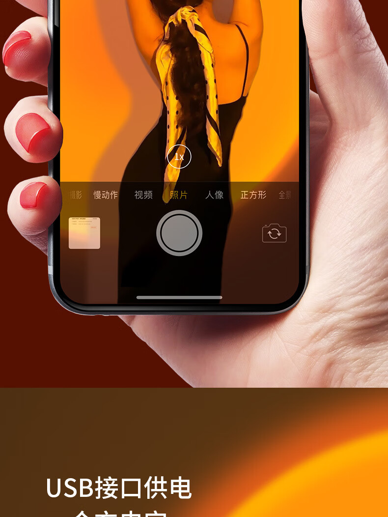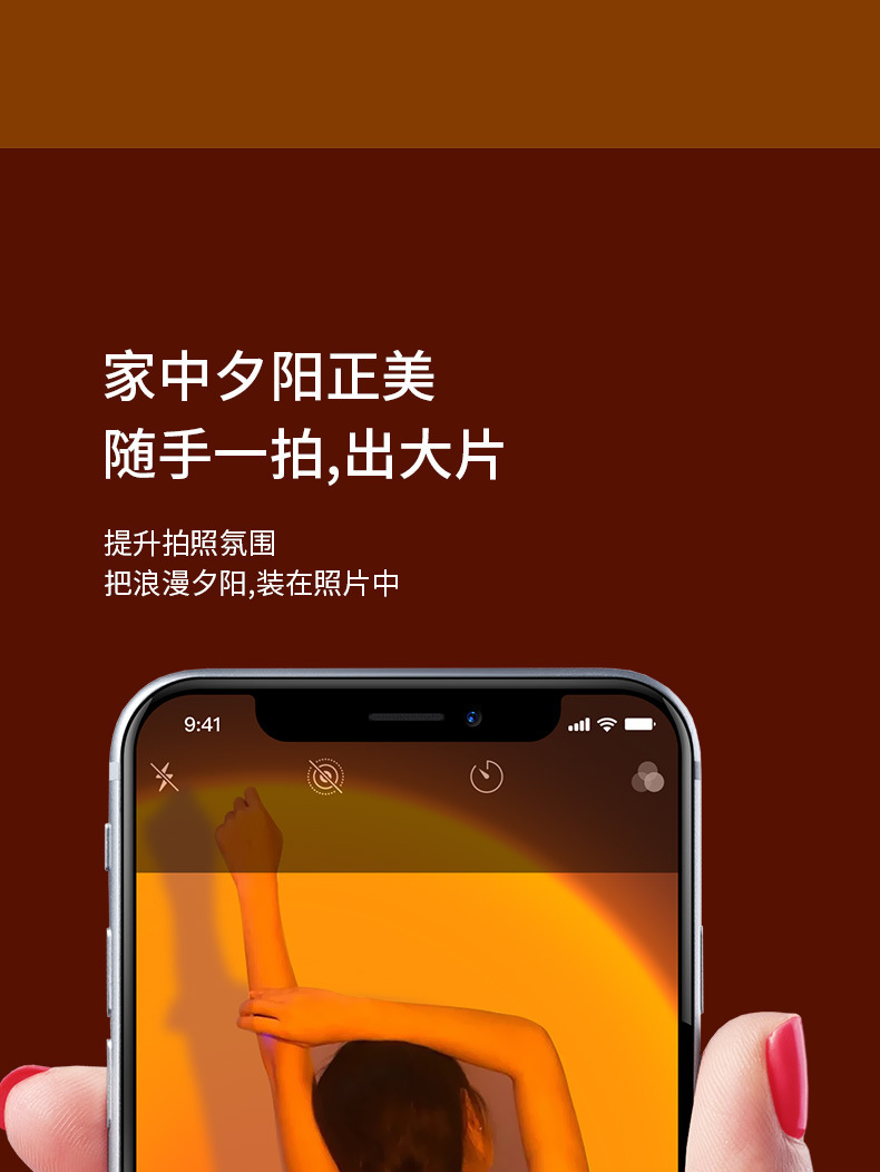 幽麦 夕阳落日灯 彩虹投影灯网红直播氛围灯 180°调节USB 夕阳红