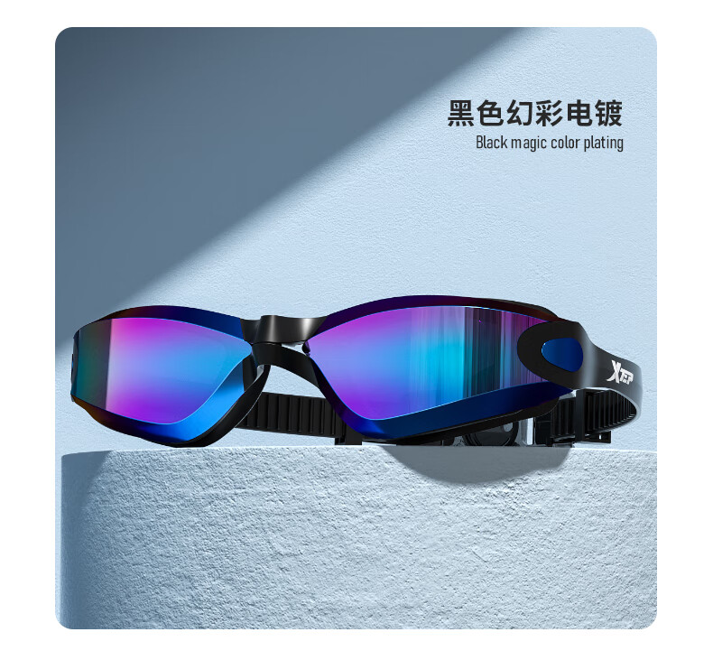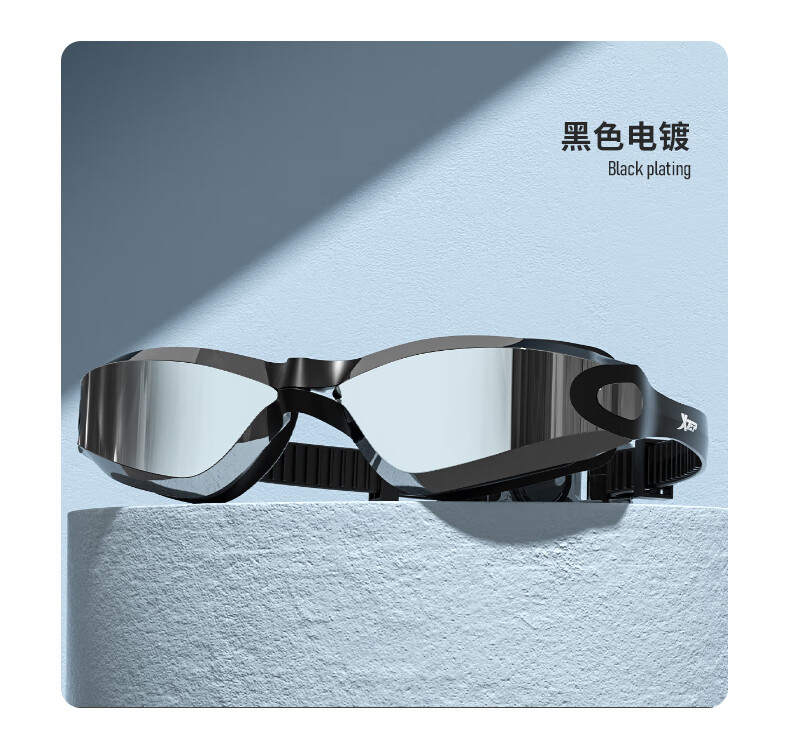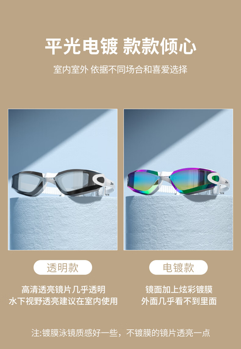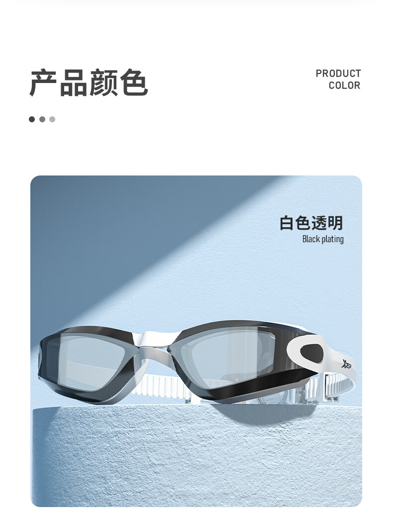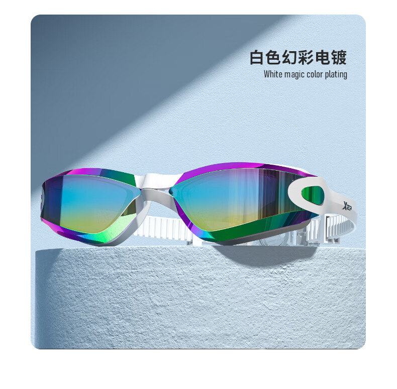 特步泳镜高清防雾防水男士平光女士游泳眼镜专业竞速潜水泳帽套装装备 电镀白