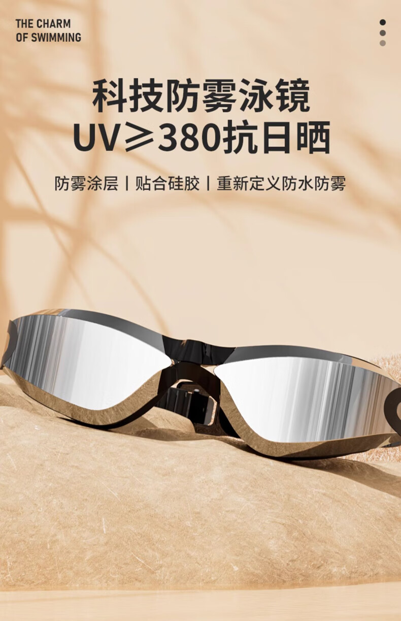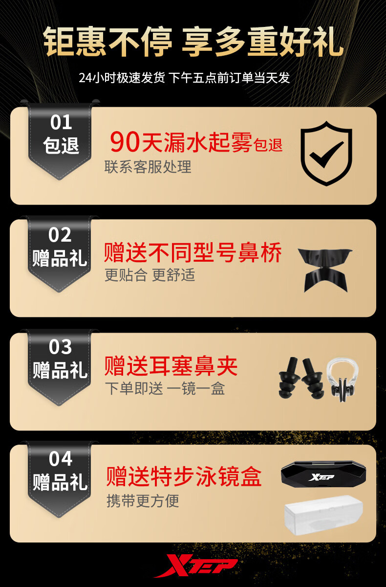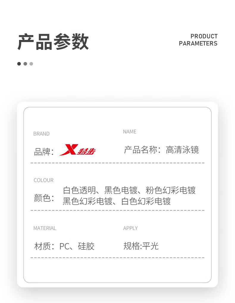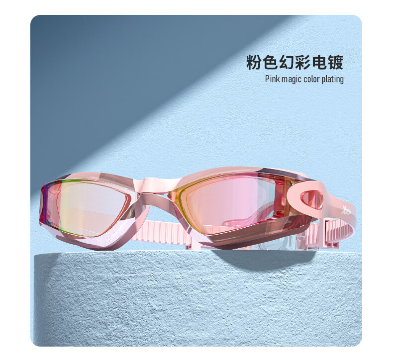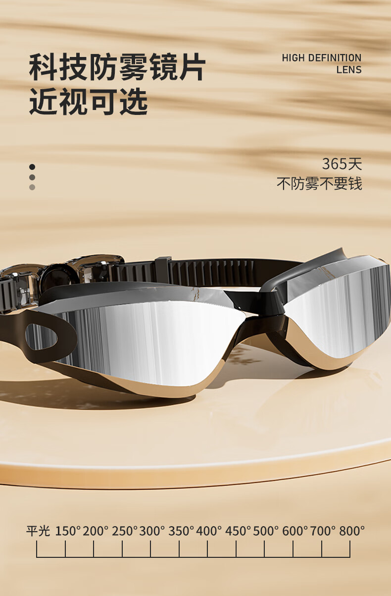 特步泳镜高清防雾防水男士平光女士游泳眼镜专业竞速潜水泳帽套装装备 电镀白