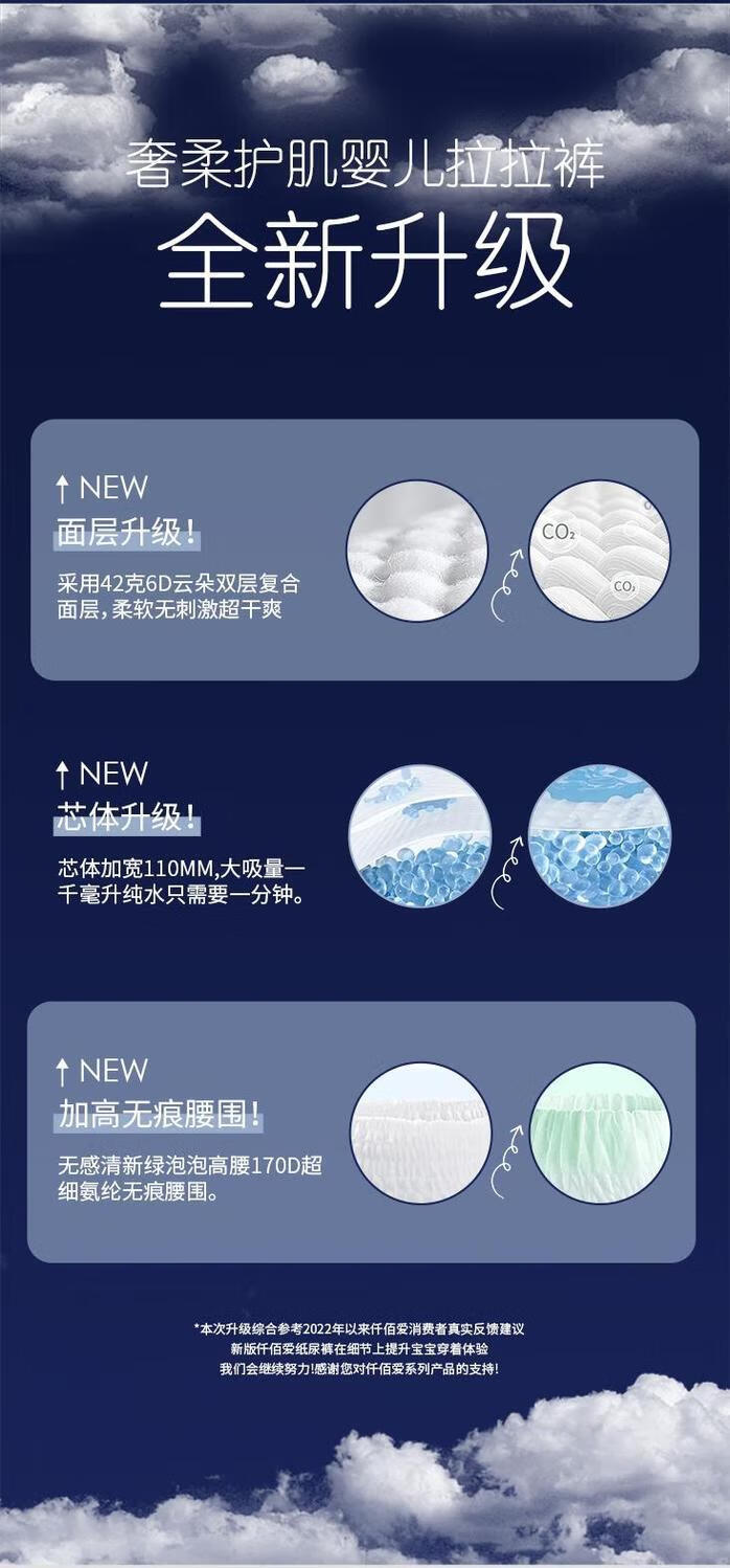 仟佰爱【高品质】仟佰爱护肌防红臀婴儿纸尿裤拉拉裤尿不湿超薄透气瞬吸 试用6片【拆包可退】额外送运显 高端泡泡腰围拉拉裤4XL码 30片