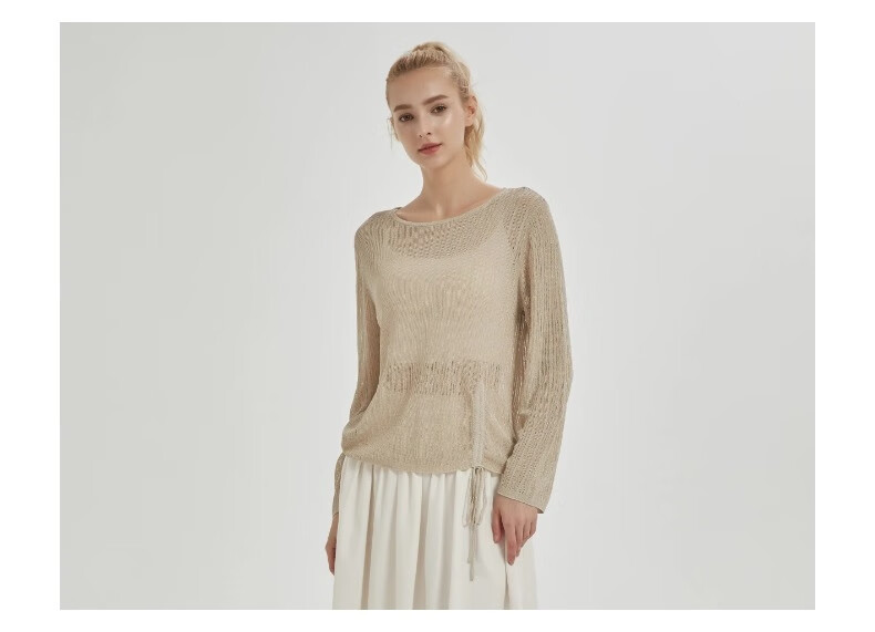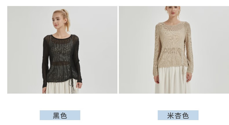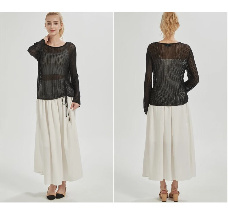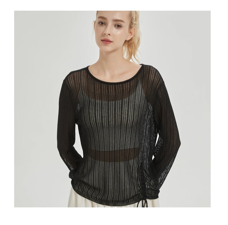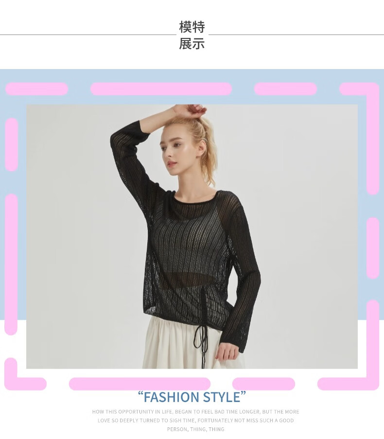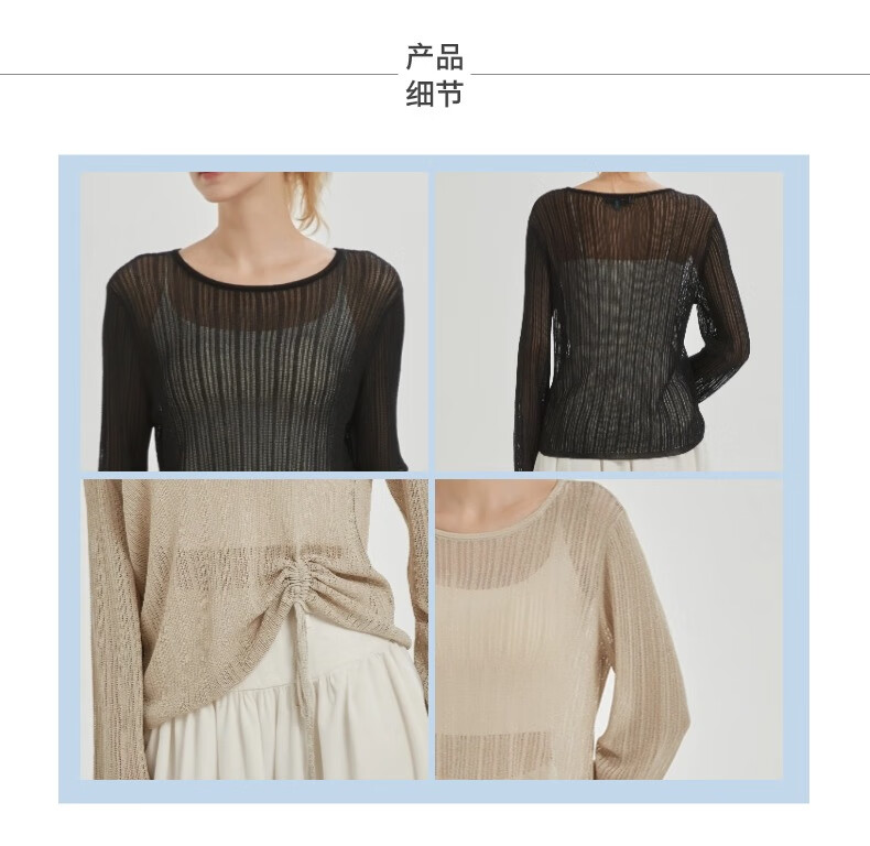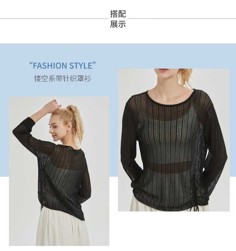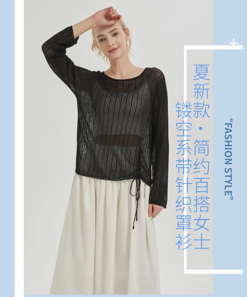 葵莺夏新款女士简约时尚镂空针织罩衫 黑色 轻薄 XL