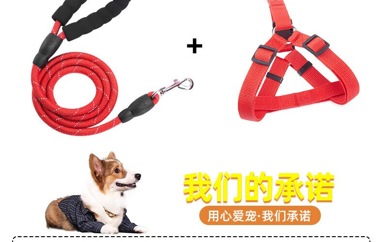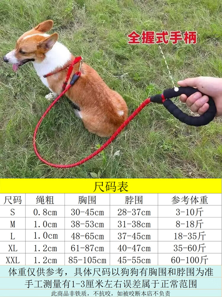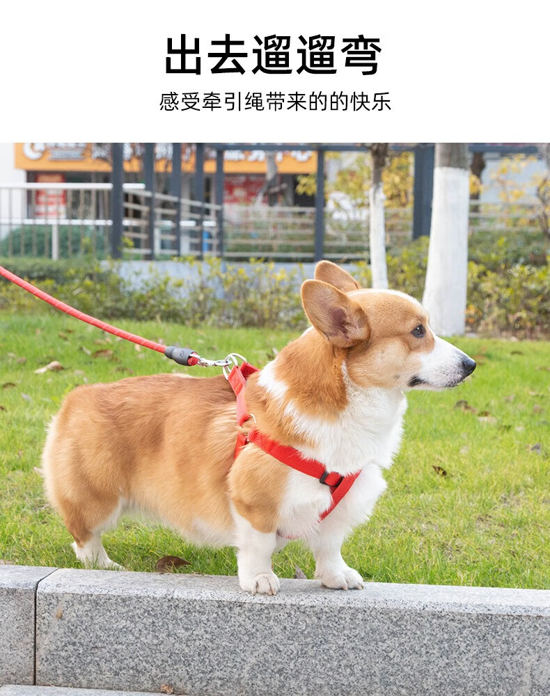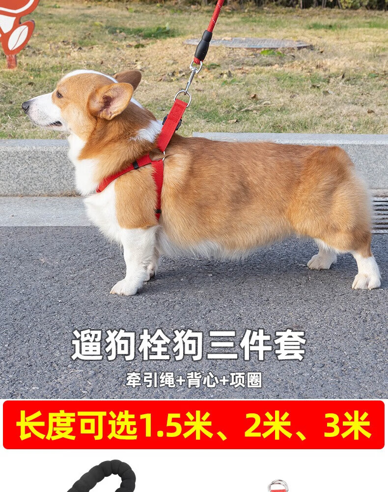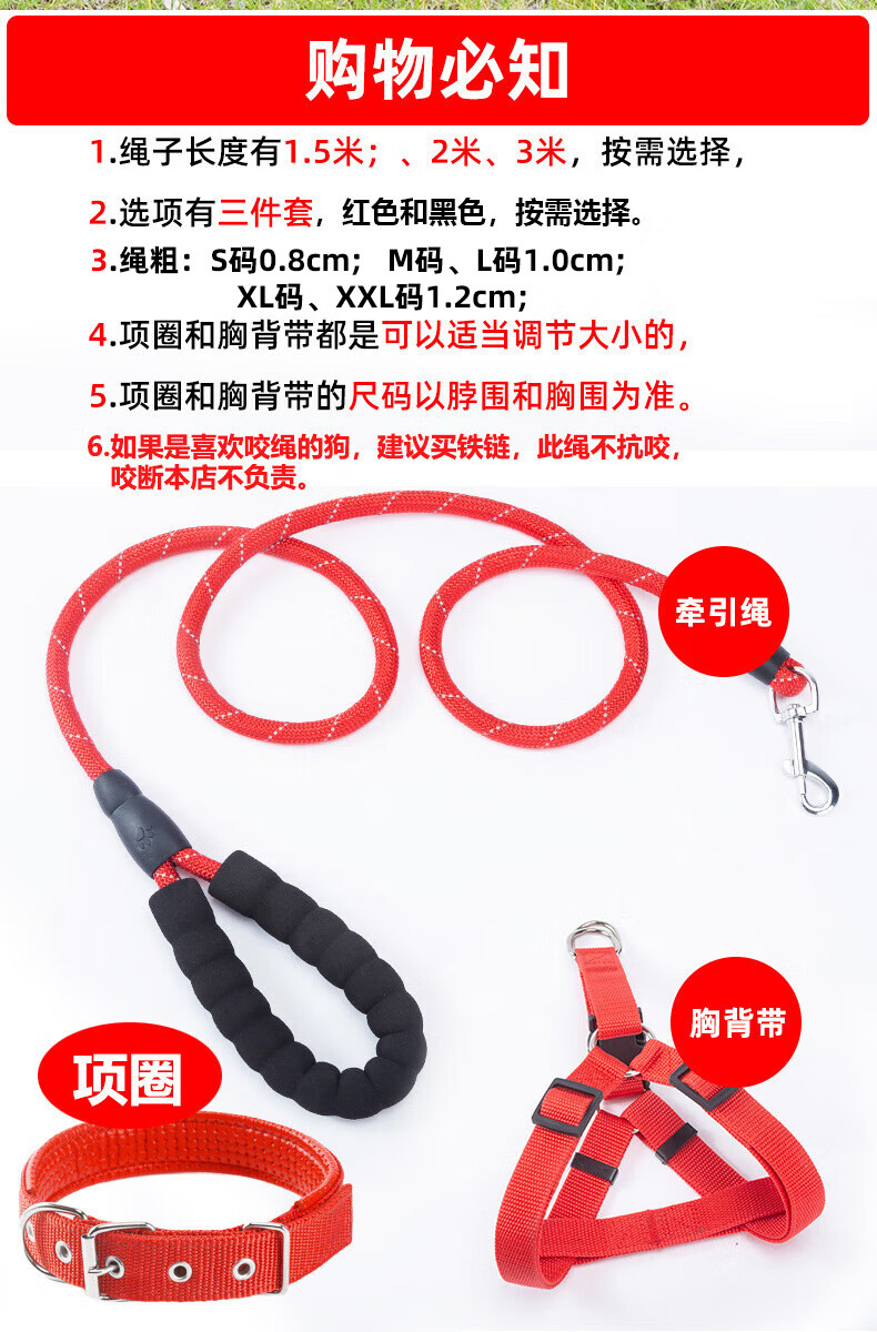 斯派科狗狗牵引绳套装遛狗栓狗绳子胸背项圈整套柯基大型犬金毛防爆冲绳 红色三件套|绳长3米+项圈+胸背 XL-【35-60斤】