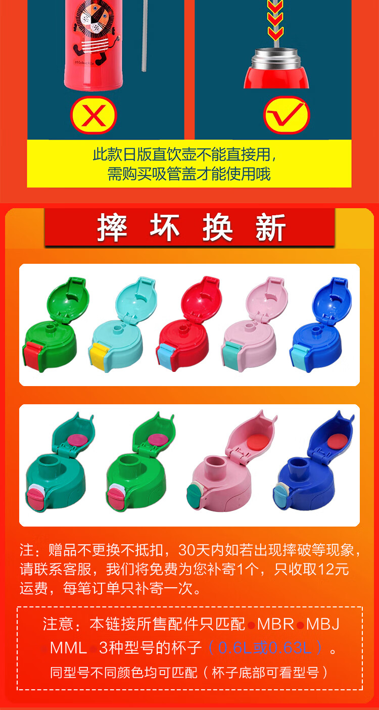 虎牌热水瓶株式会社儿童保温水壶盖子硅胶吸嘴管直饮杯替换头日本原装密封垫通用配件 原版吸嘴2只
