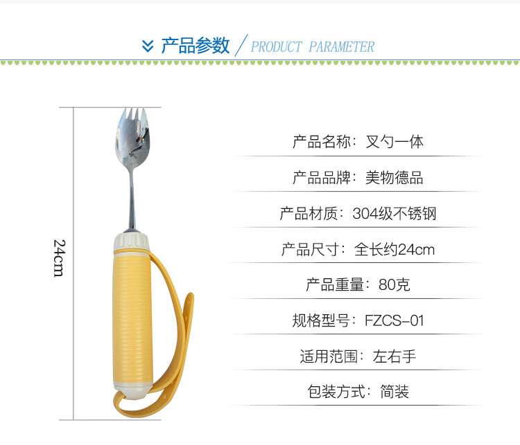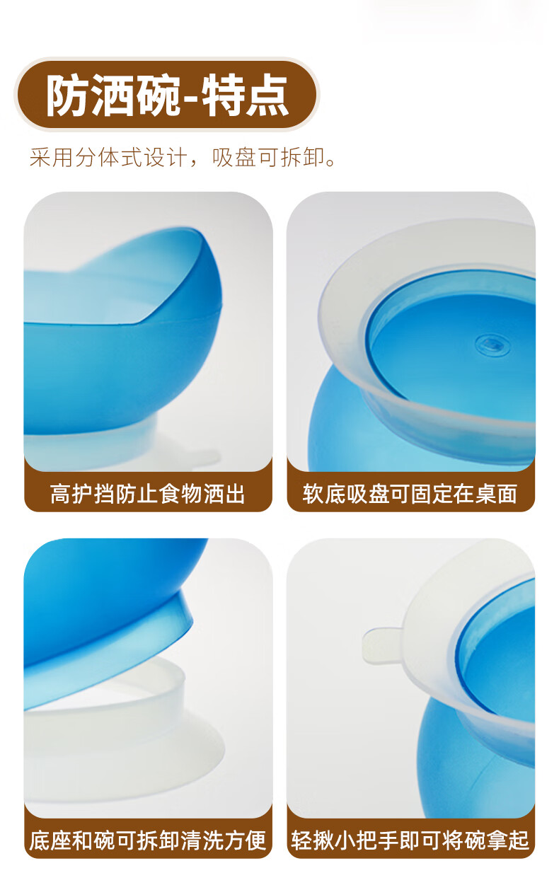 美物德品老人残疾人帕金森辅助筷子叉勺助食餐具防洒吸盘碗吸管护理杯牙刷 筷+勺+叉+碗 4件套