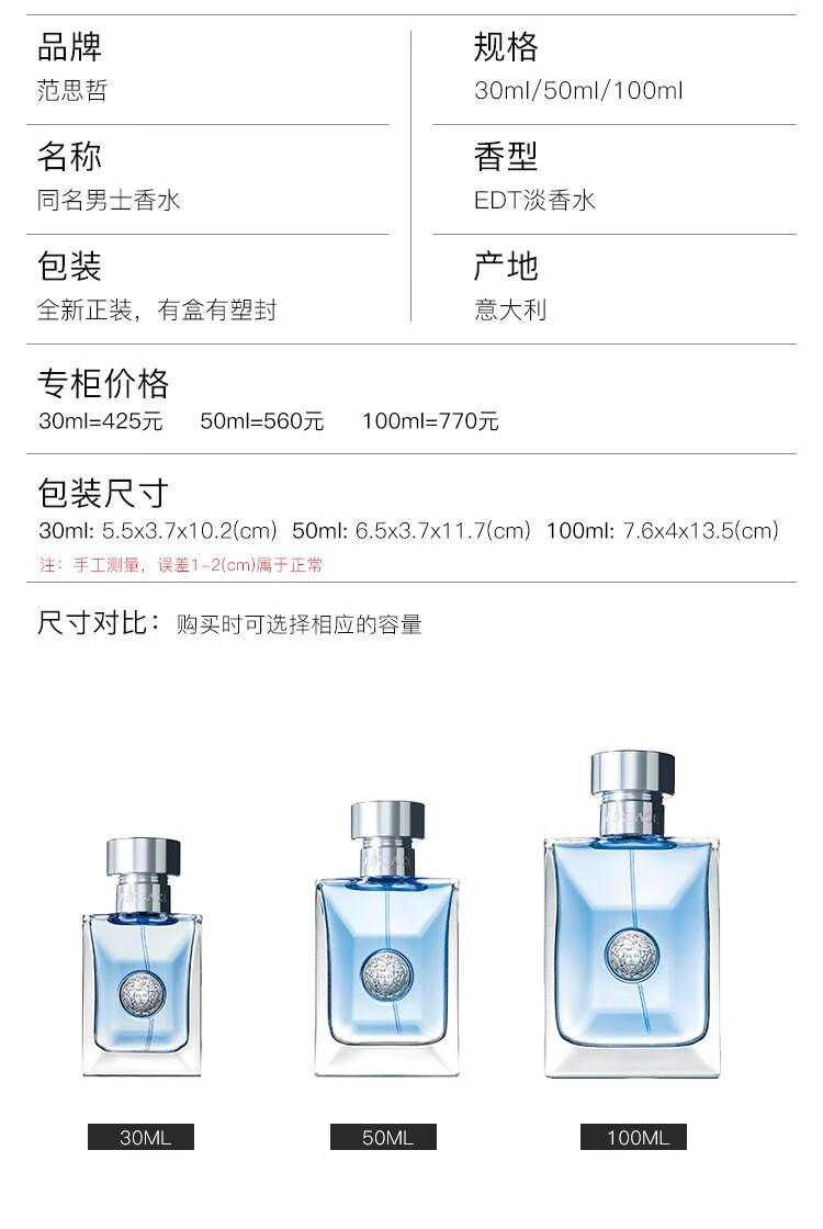 范思哲VERSACE经典同名男士木质淡香水50ml/100ml 范思哲同名男士淡香水 100ml
