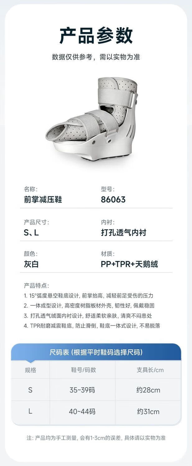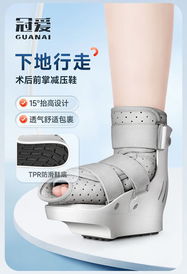 通用护踝崴脚伤后固定 前足减压鞋跖骨脚趾踝关节固定支具拇外翻术后 医用透气减压款-左脚 S码(适用鞋码35-39)