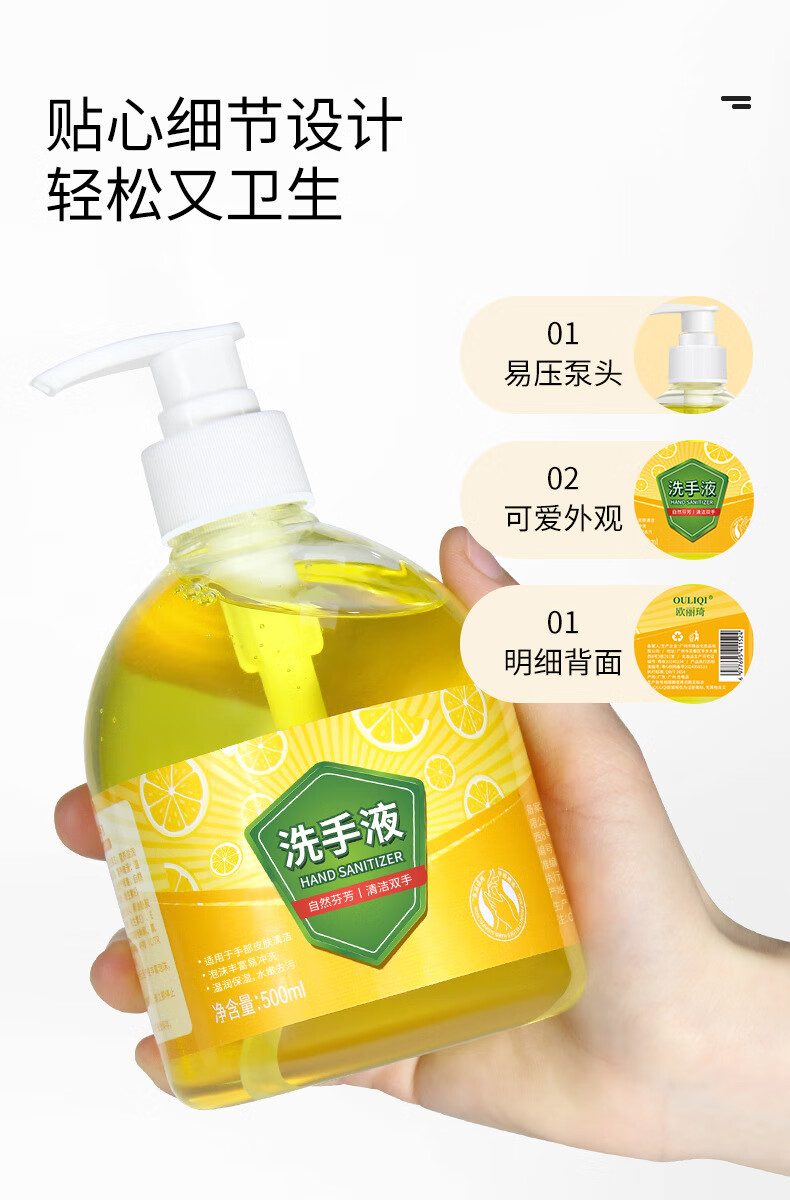 欧丽琦泡沫洗手液滋润倍护清新柠檬大容量洗手液健康温和清洁易冲洗泡泡 【拍1发2】柠檬清香洗手液500ml