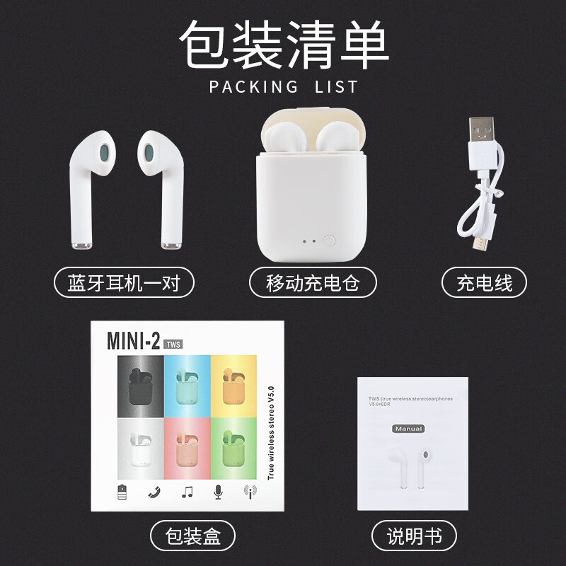 mini2蓝牙耳机i7mini i7s tws双耳运动50马卡龙无线蓝牙耳机 磨砂蓝 mini2opp包装