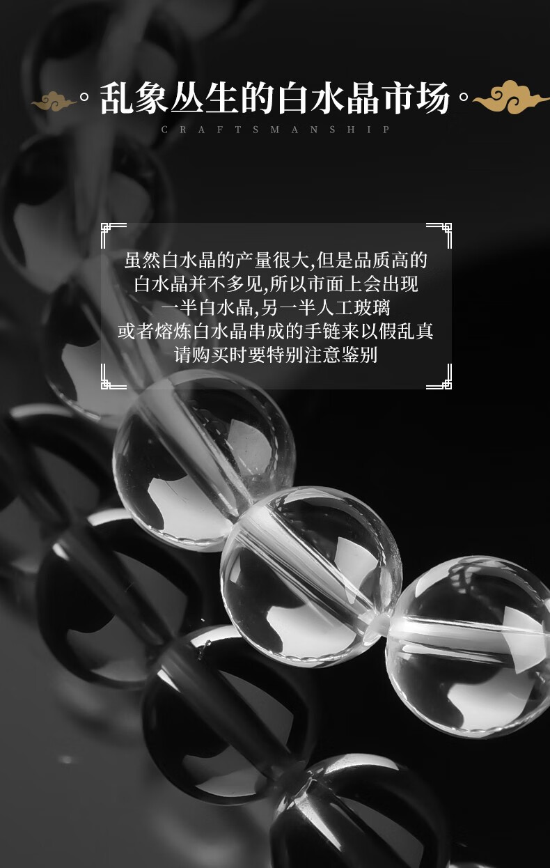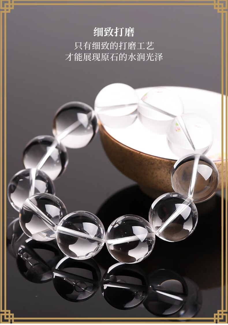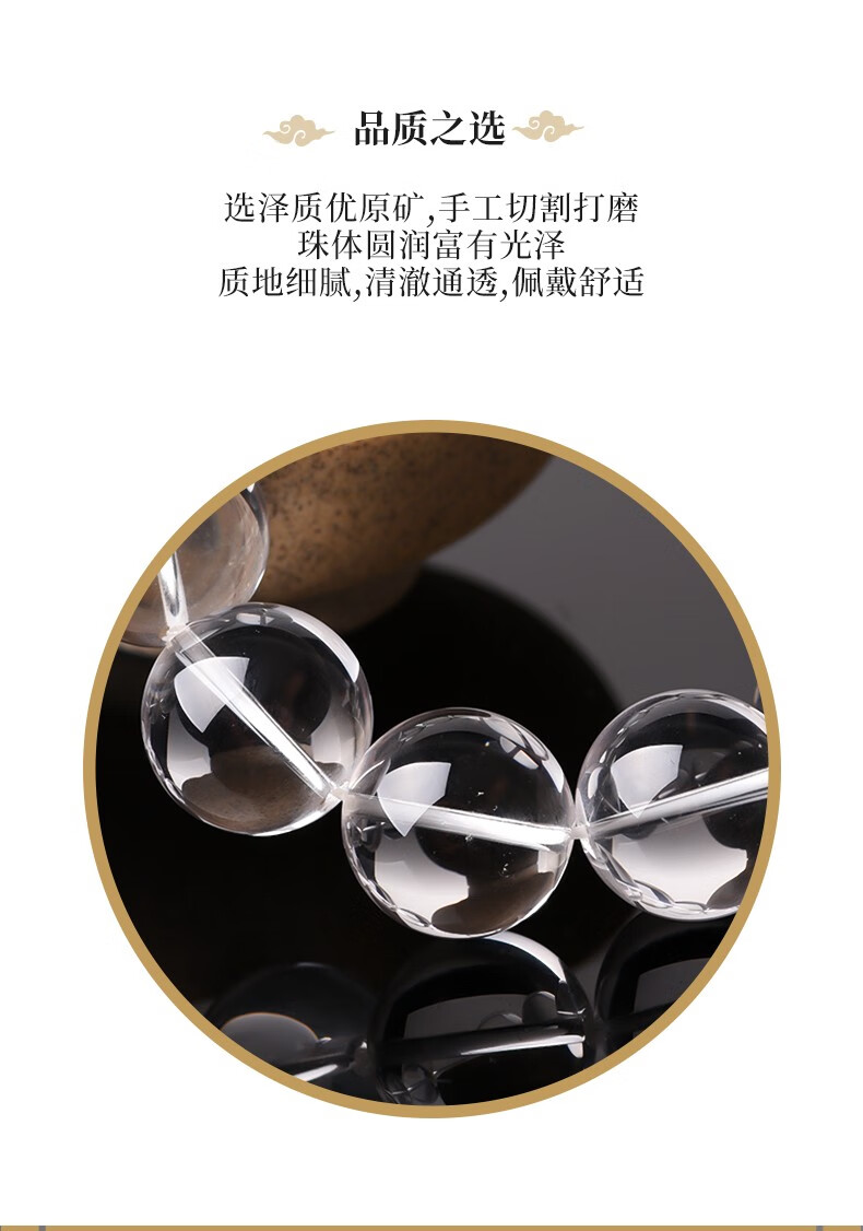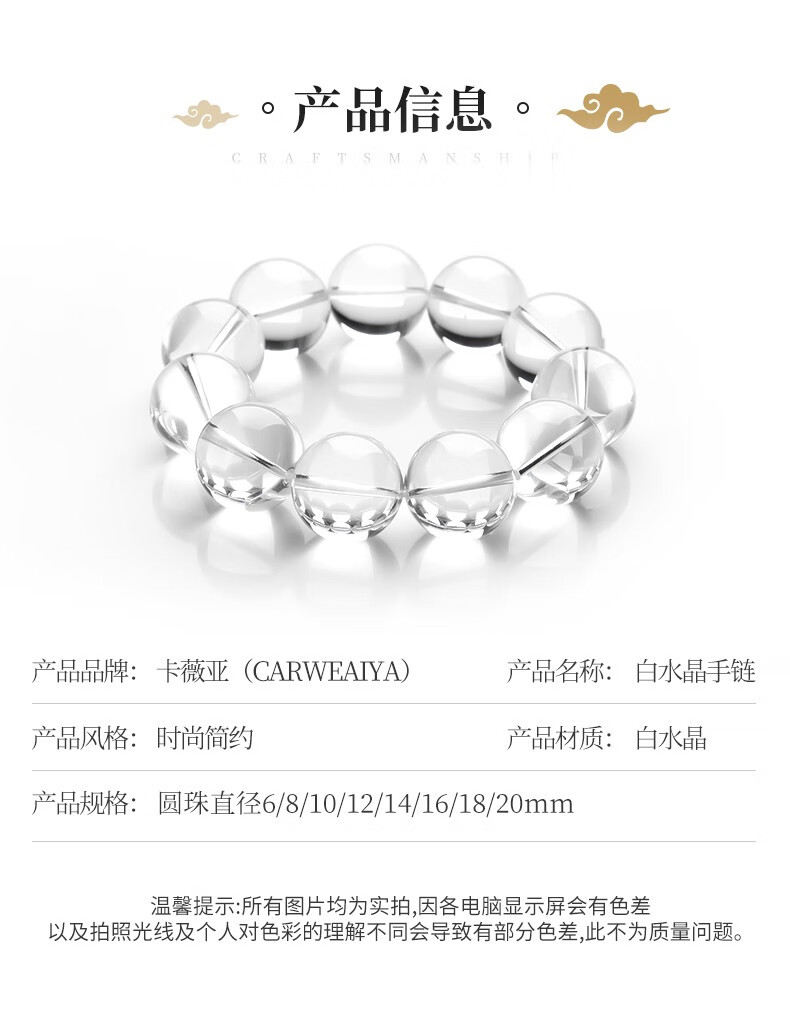 卡薇亚天然白水晶手串男女士情侣款百搭上岸手链AA级净体生日情人节礼物 珠径8mm左右配证书建议女款
