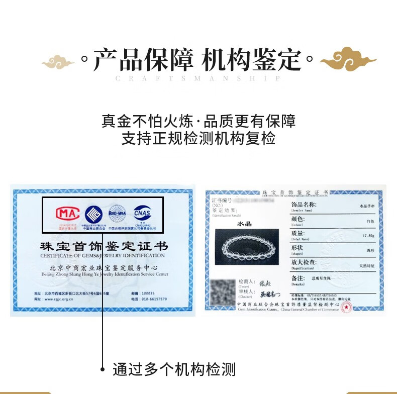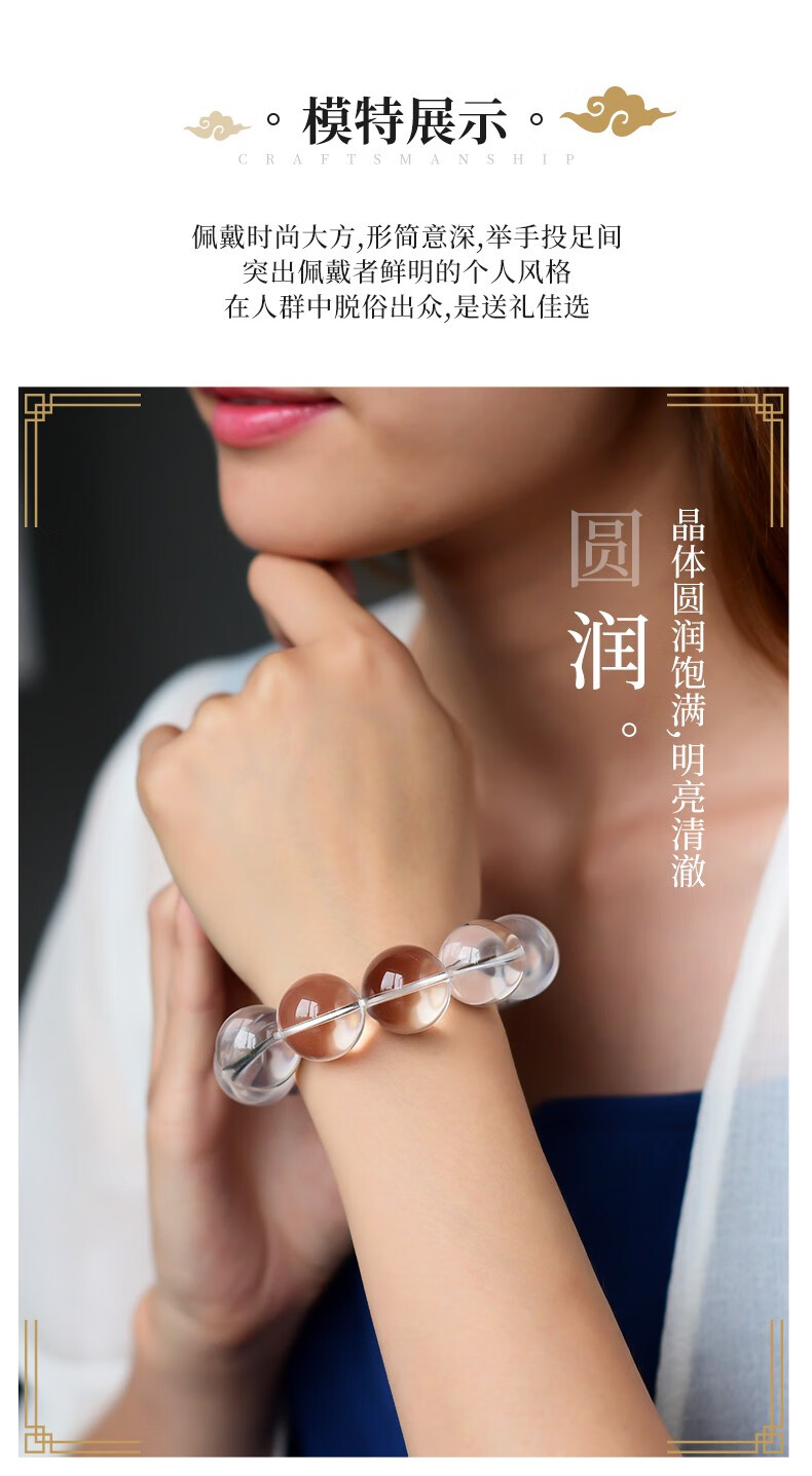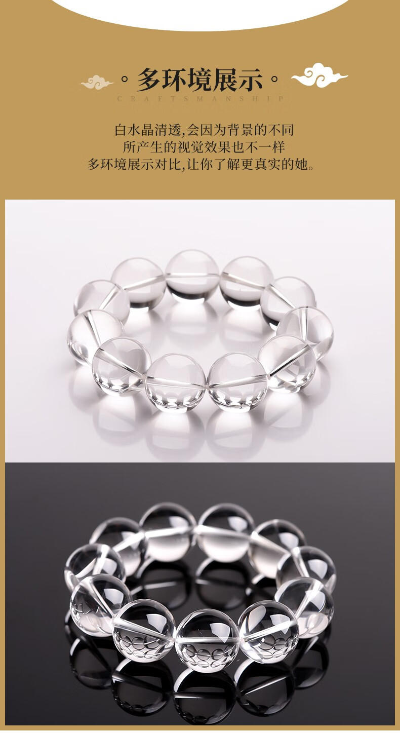 卡薇亚天然白水晶手串男女士情侣款百搭上岸手链AA级净体生日情人节礼物 珠径8mm左右配证书建议女款