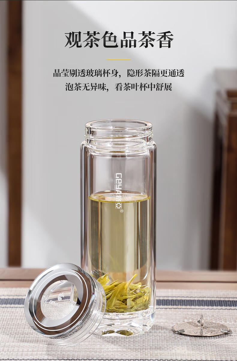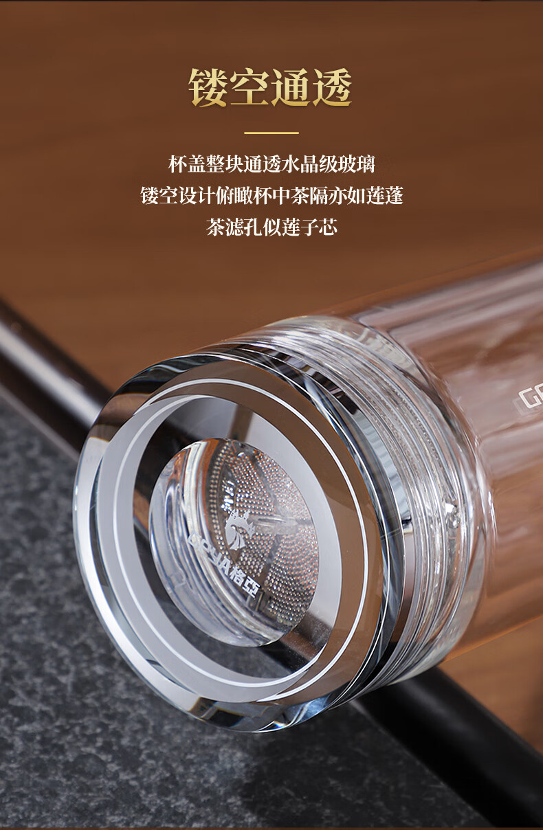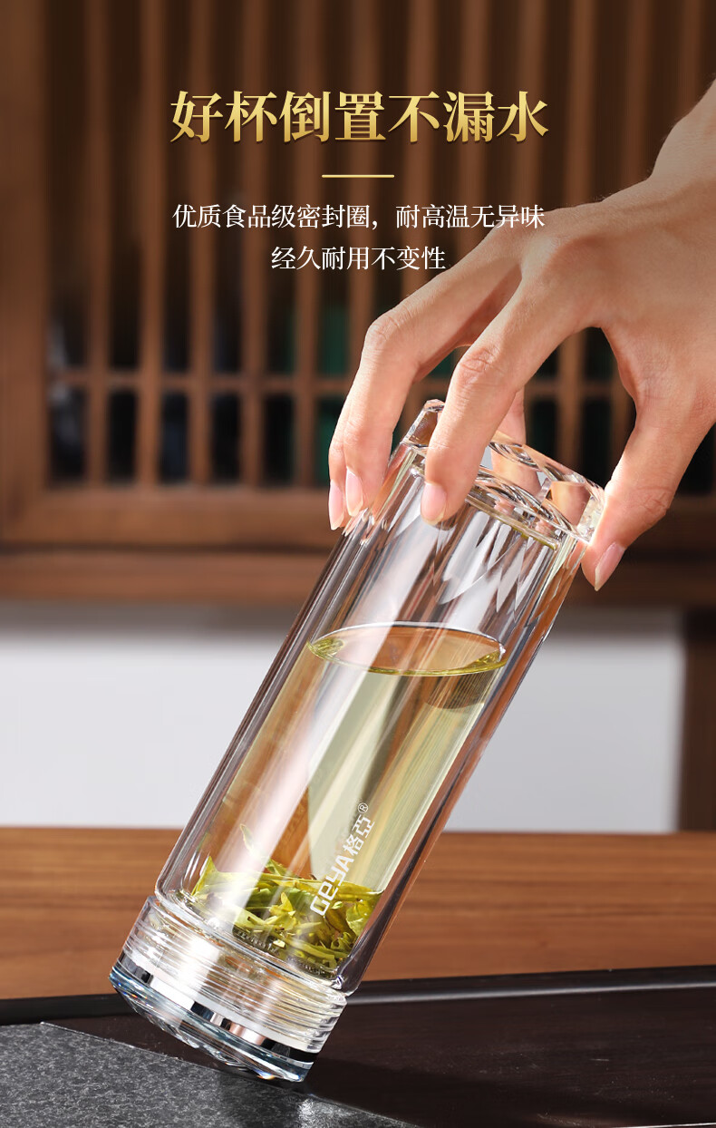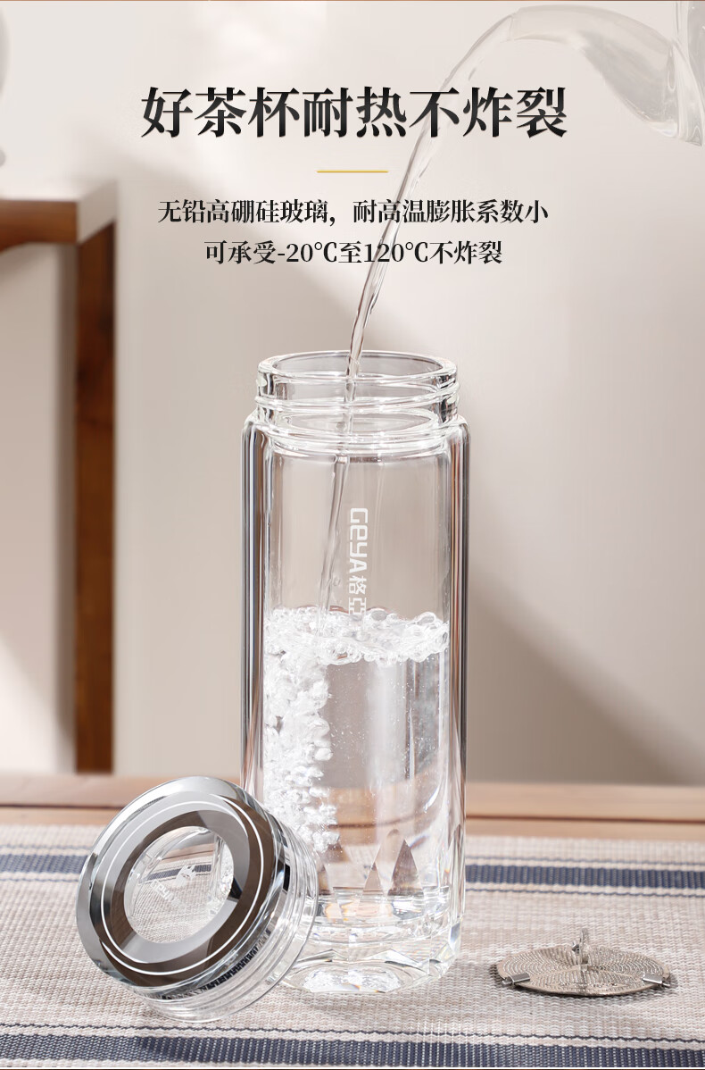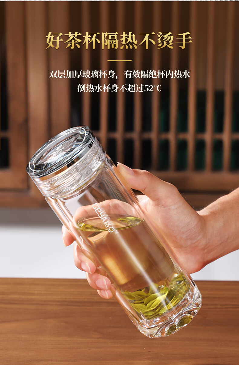 格亚(GEYA)莲华菱形抗菌钛茶杯双层玻璃杯抑菌玻璃茶杯男士玻璃水杯子定制 莲华【礼盒装】380ml