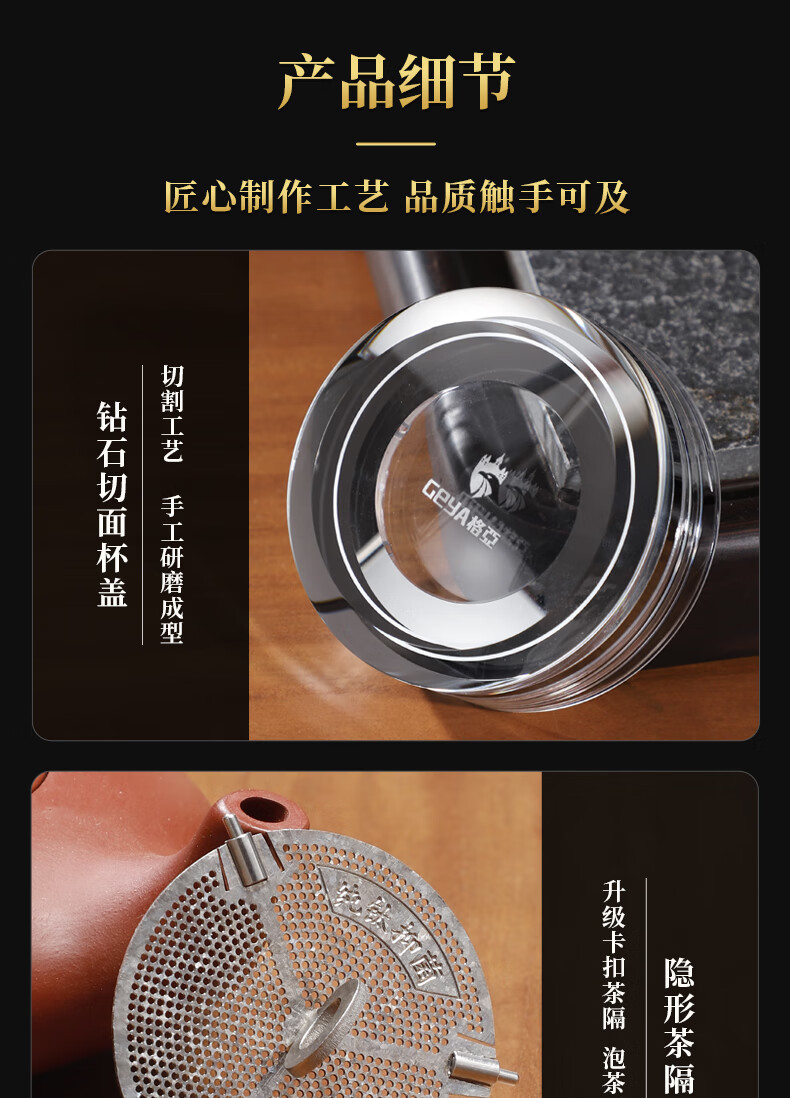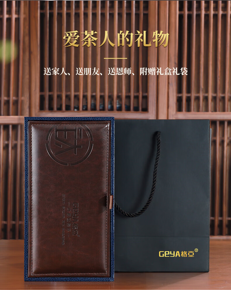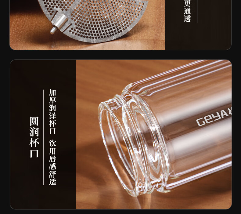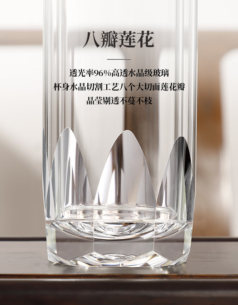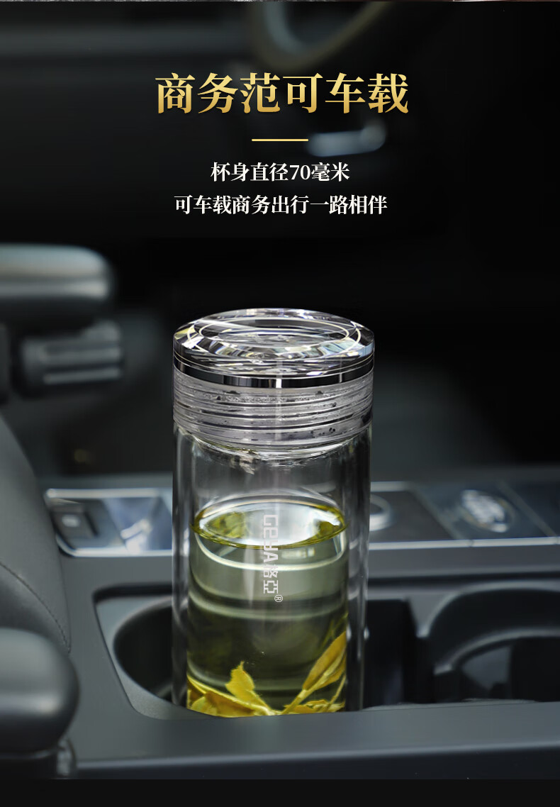 格亚(GEYA)莲华菱形抗菌钛茶杯双层玻璃杯抑菌玻璃茶杯男士玻璃水杯子定制 莲华【礼盒装】380ml