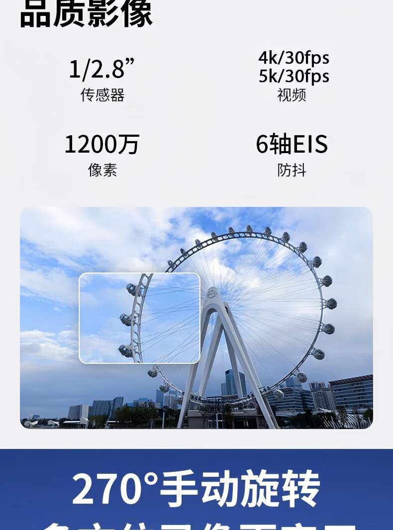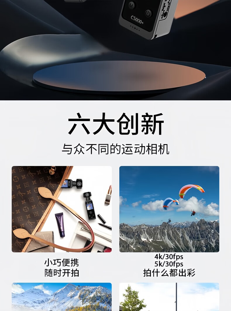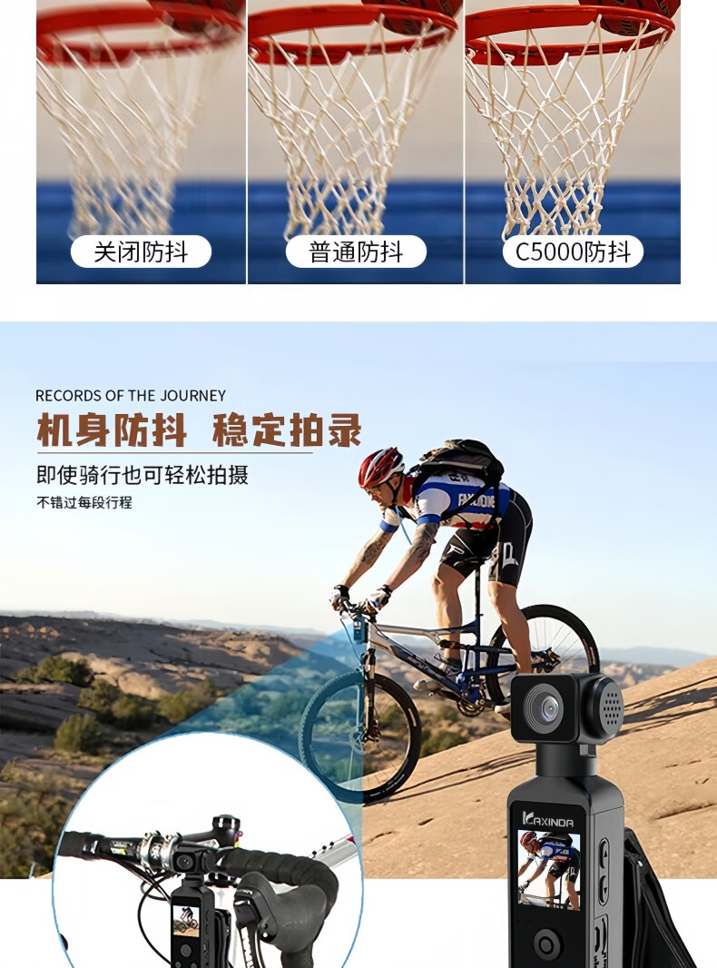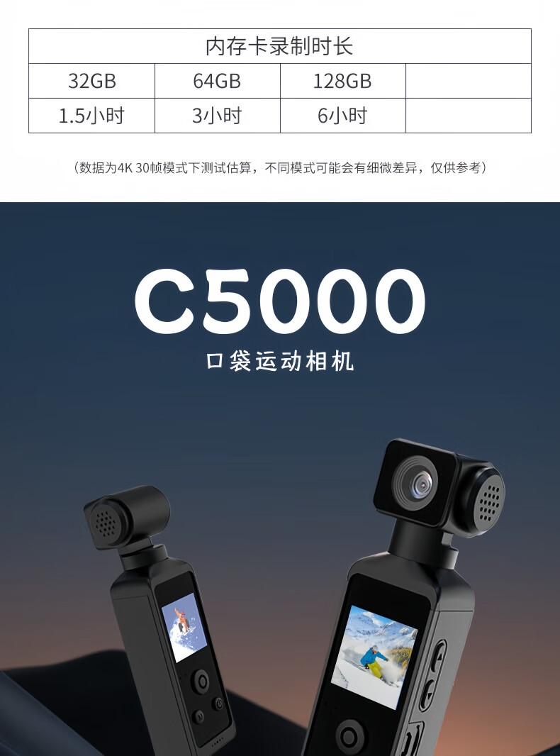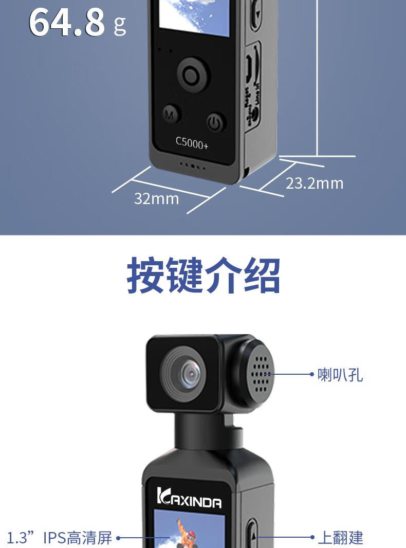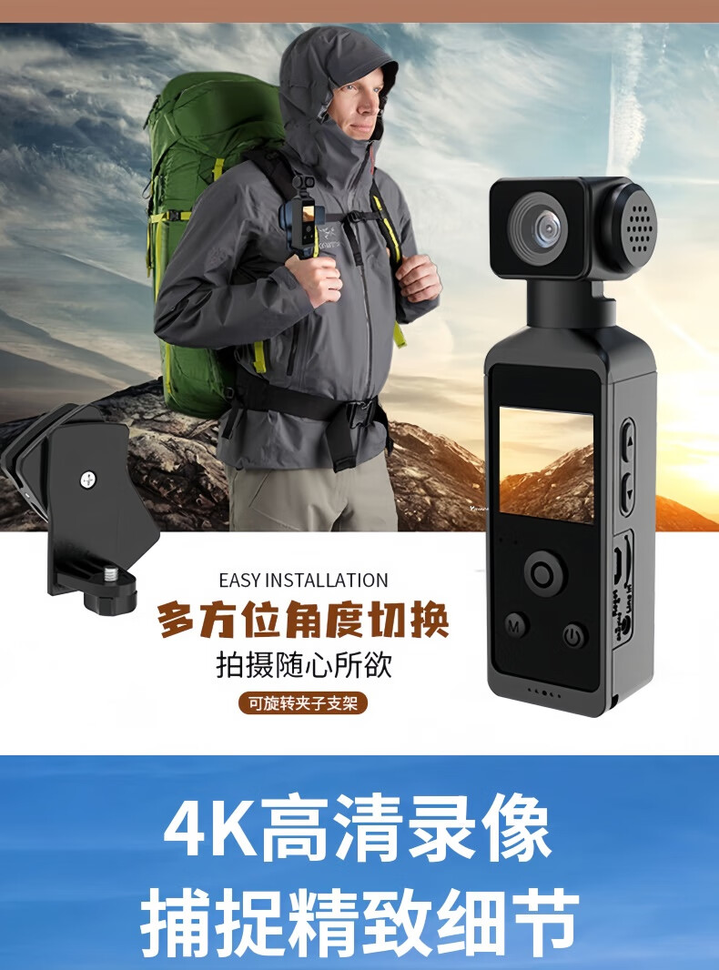 墨雪卿运动相机5K高清手持口袋相机便携式旅游跑步vlog相机户外骑行防抖防水摄像拍照录像云台相机 5K 128G+相机包【套餐】