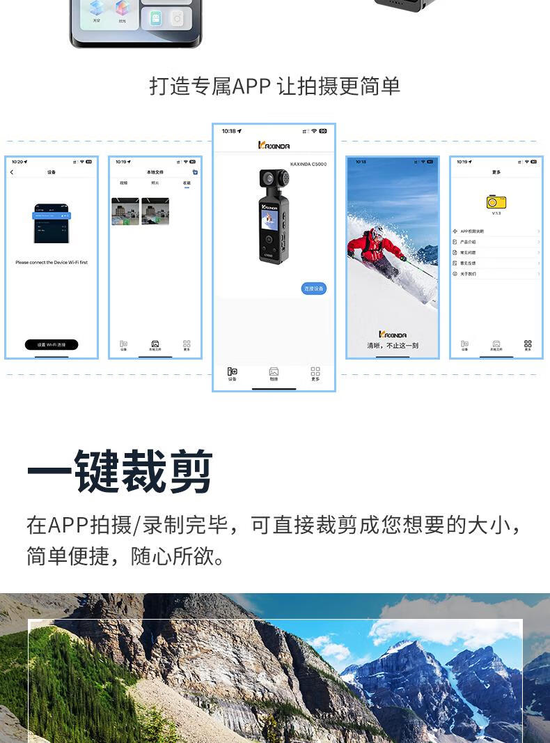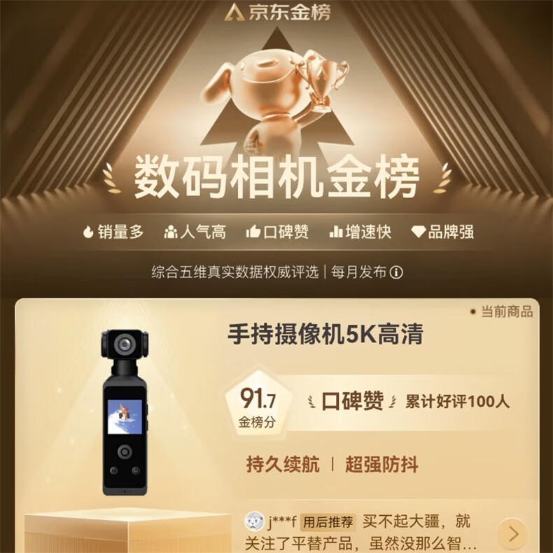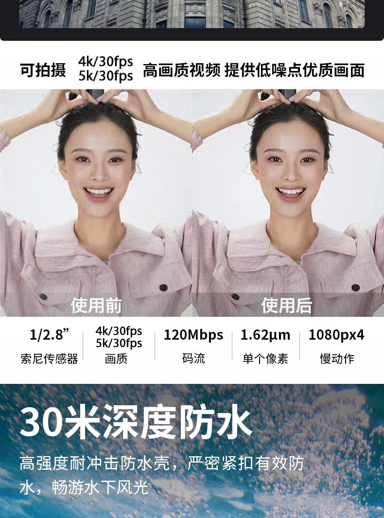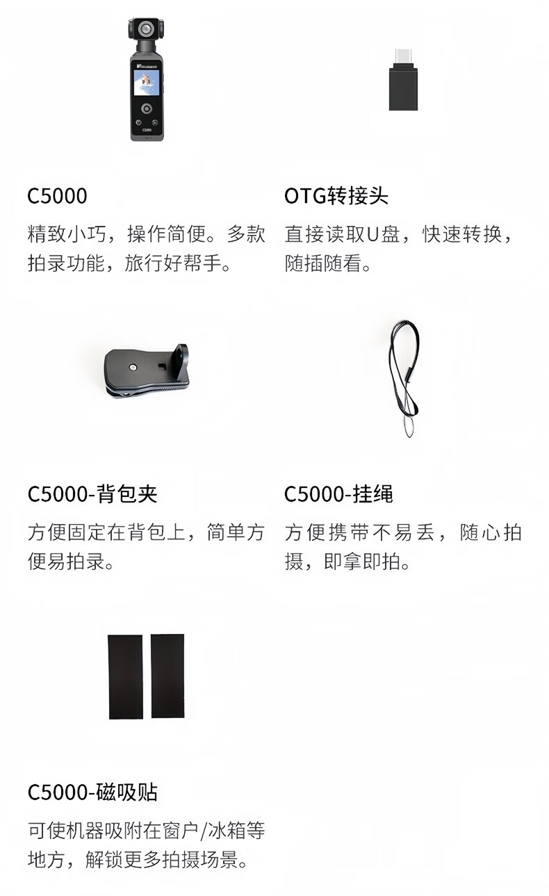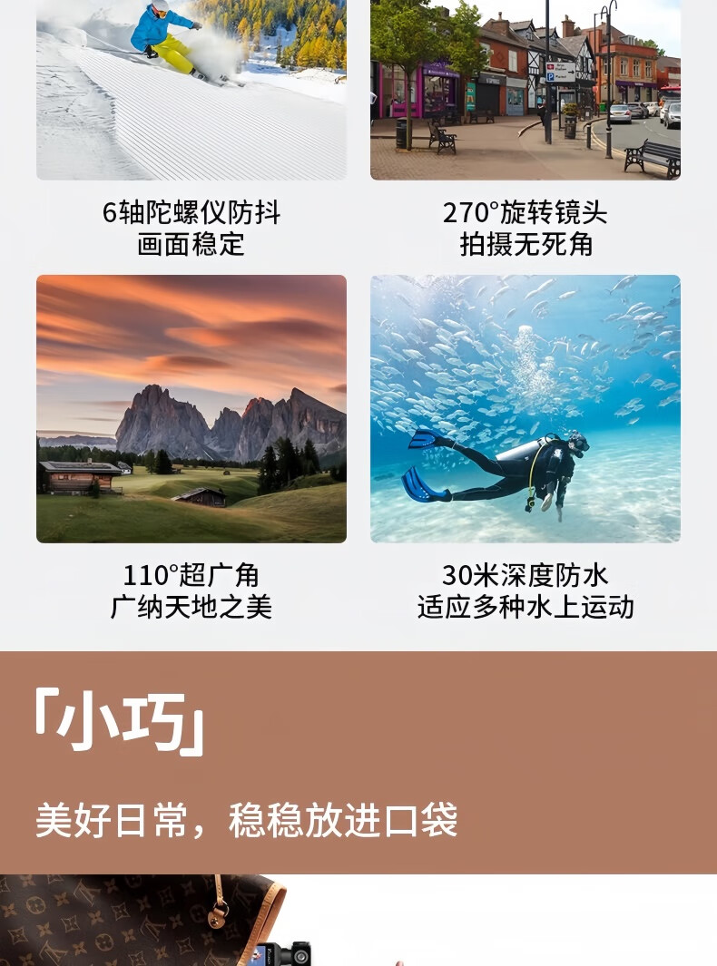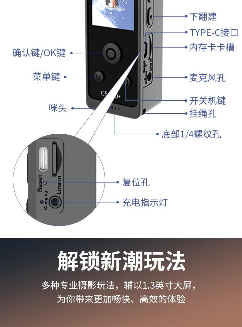 墨雪卿运动相机5K高清手持口袋相机便携式旅游跑步vlog相机户外骑行防抖防水摄像拍照录像云台相机 5K 128G+相机包【套餐】