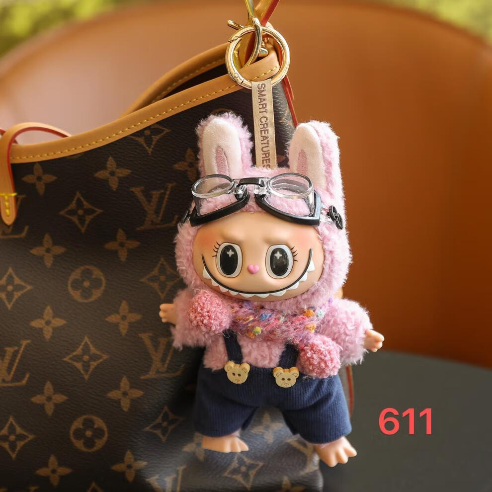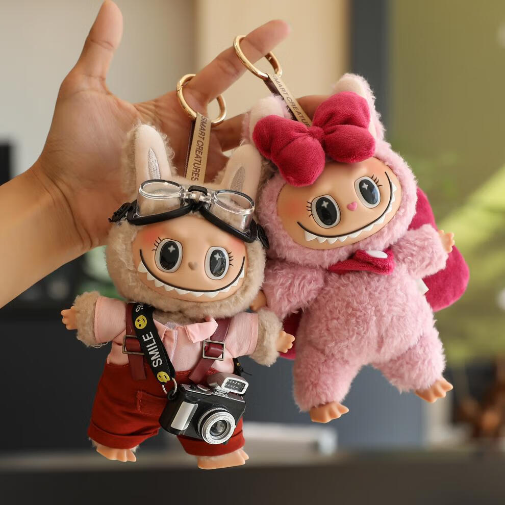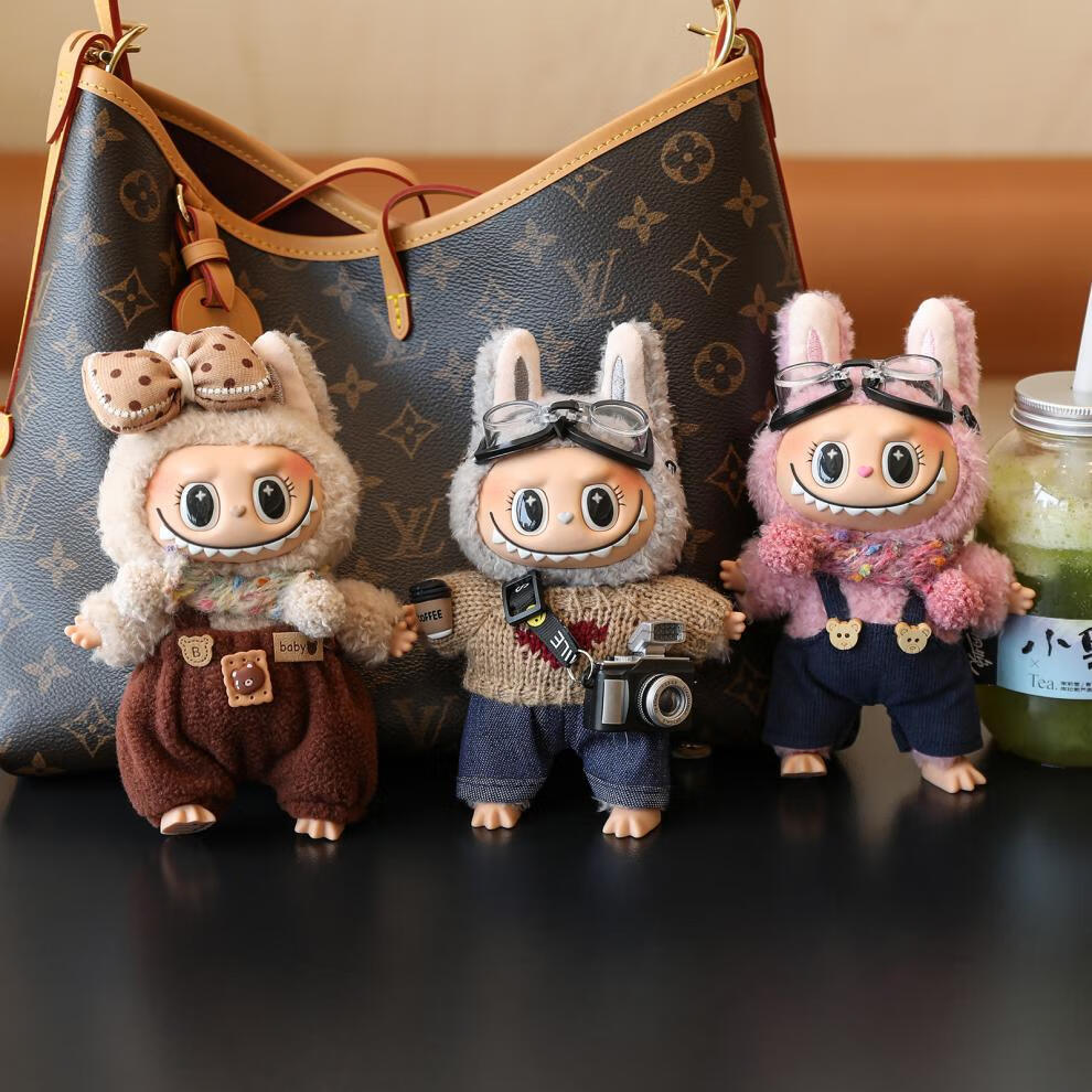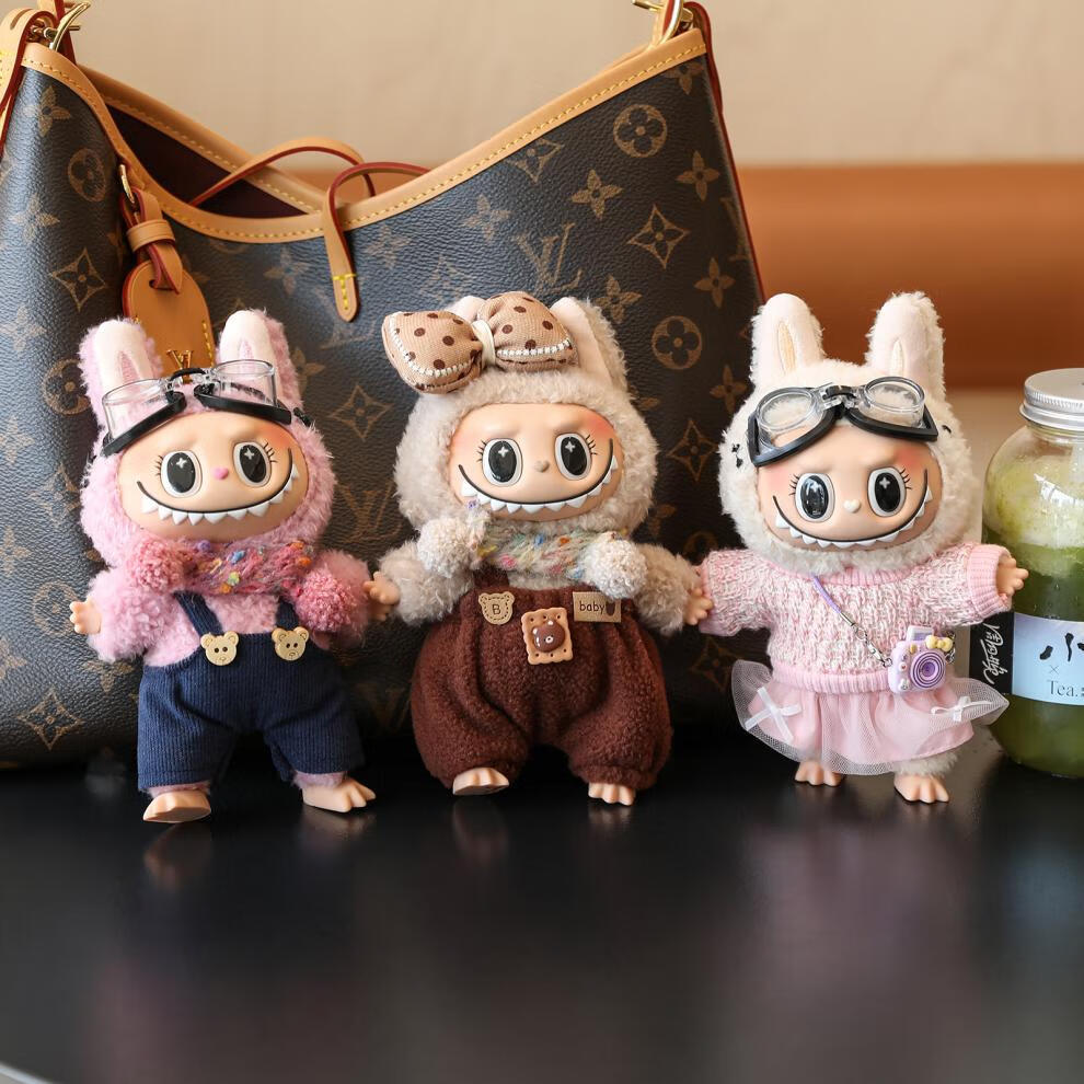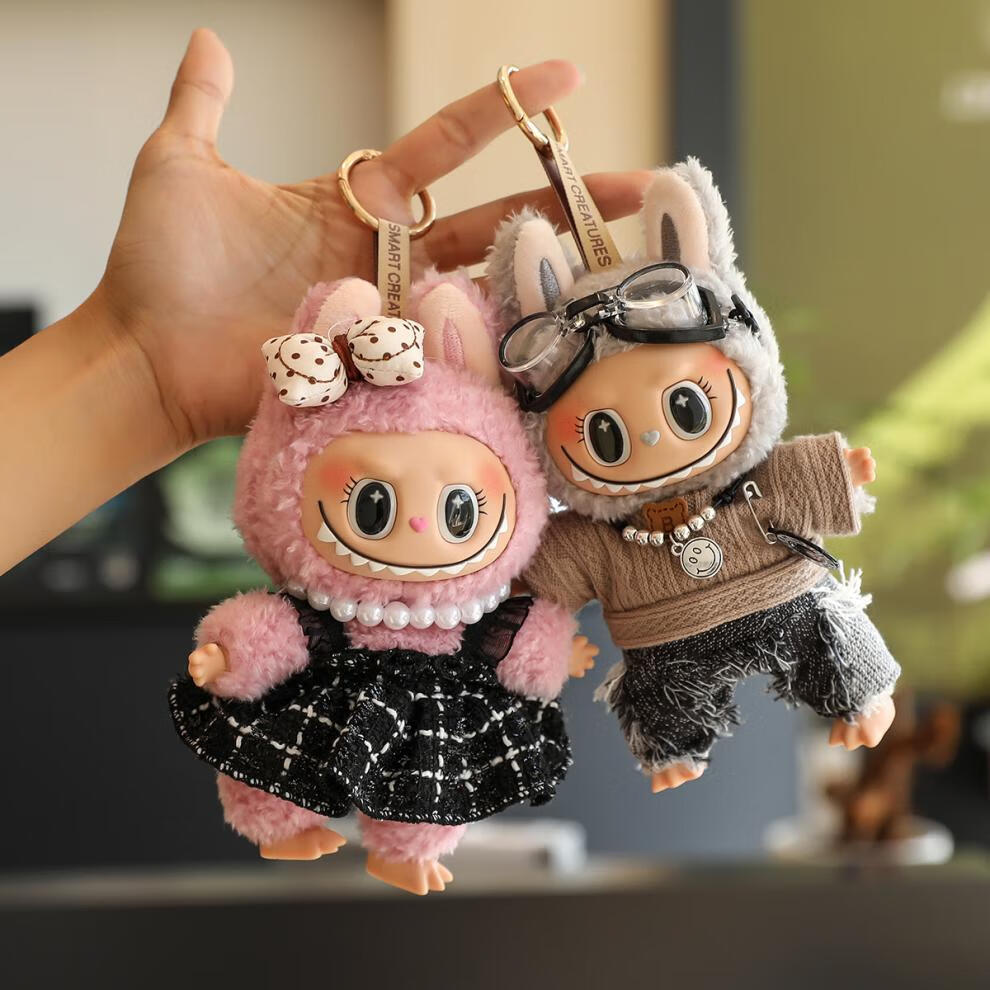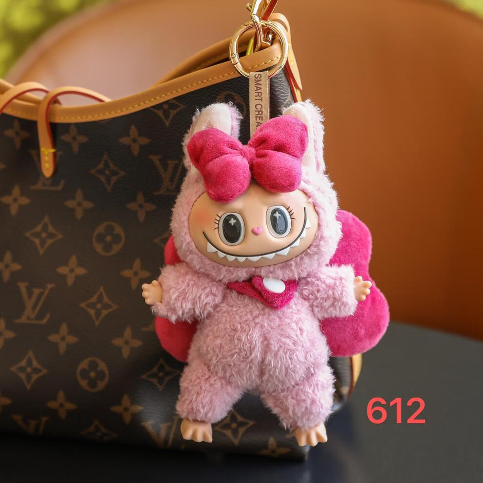 labubu拉布布搪胶毛绒公仔手办贈女生挂件礼物【含娃娃+娃娃】 粉绒萌熊客 【含娃+娃衣】