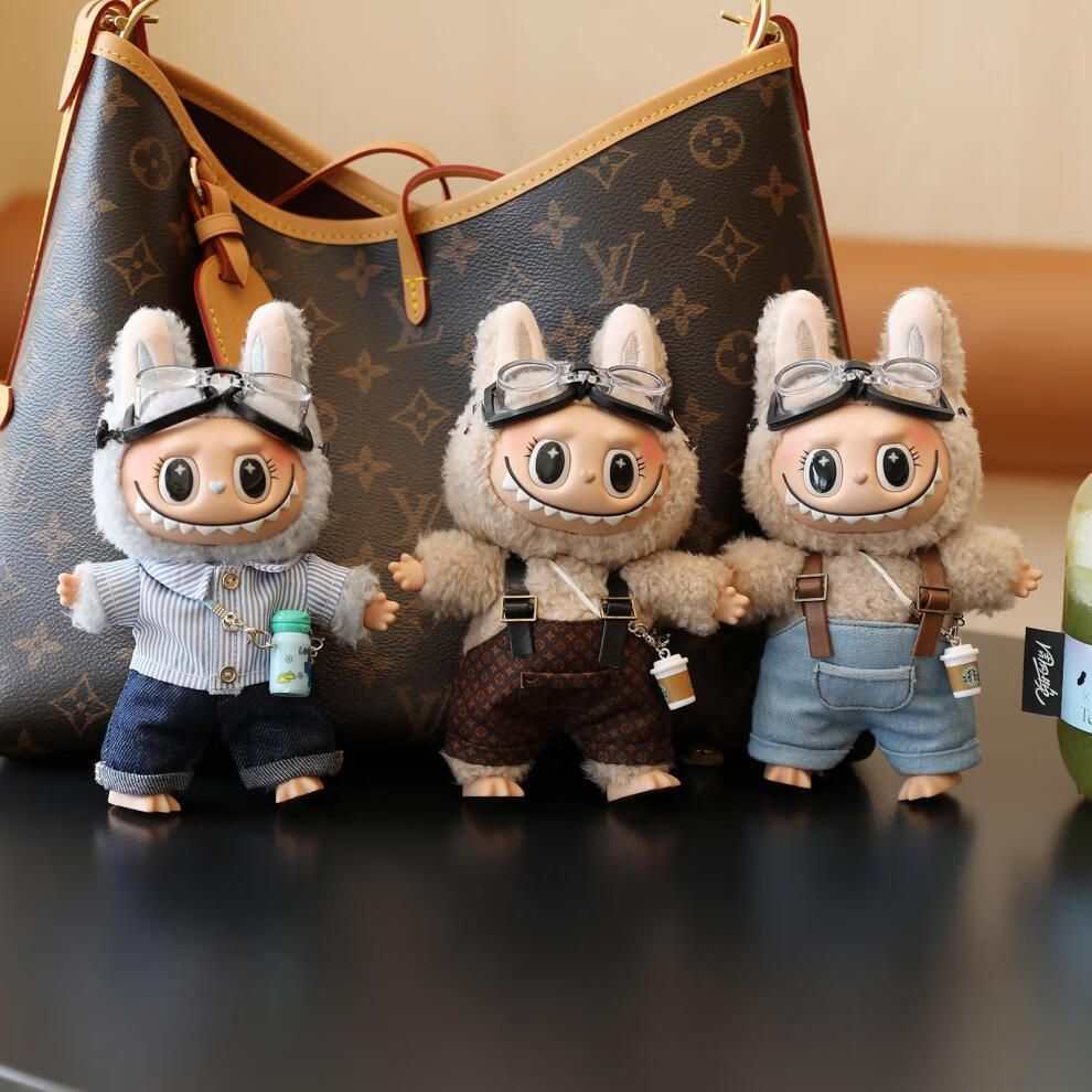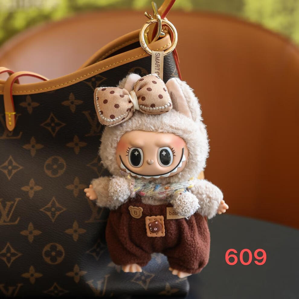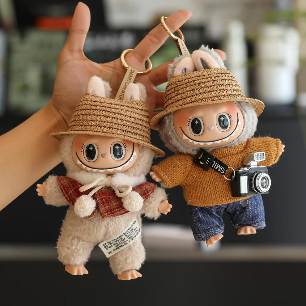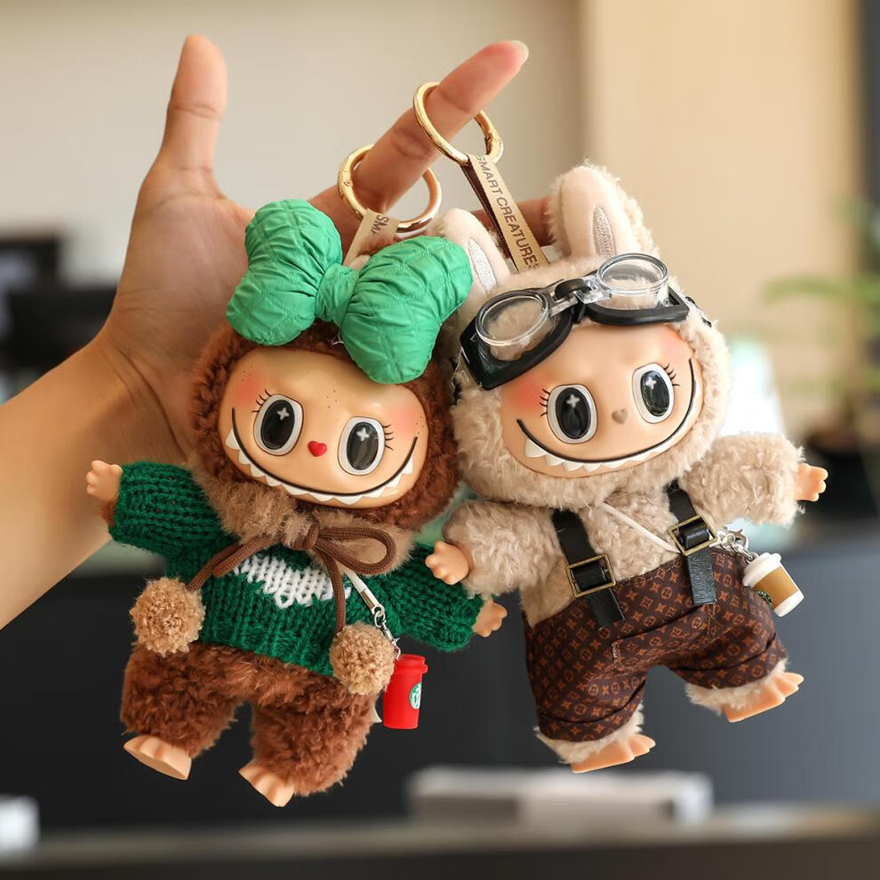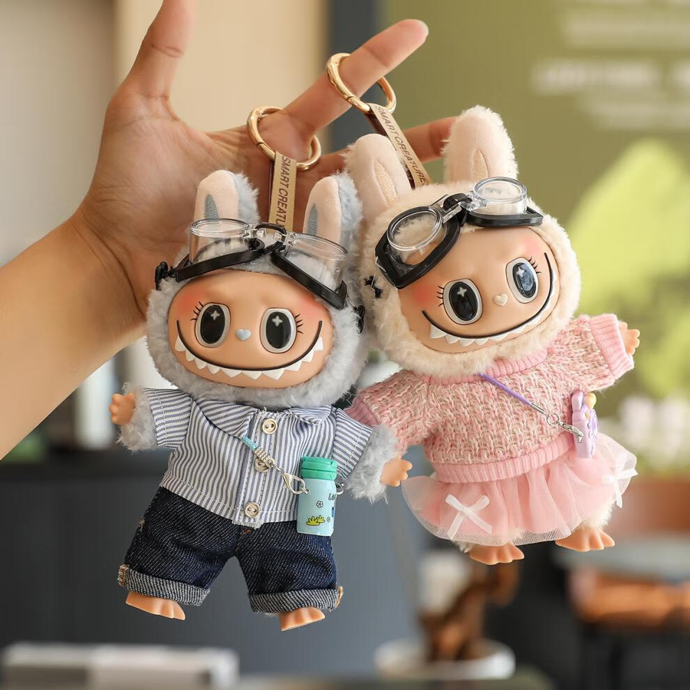 labubu拉布布搪胶毛绒公仔手办贈女生挂件礼物【含娃娃+娃娃】 粉绒萌熊客 【含娃+娃衣】