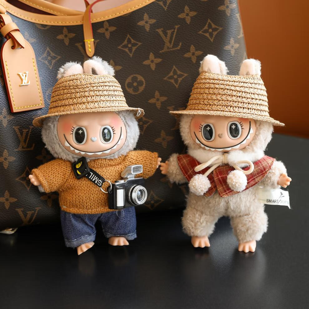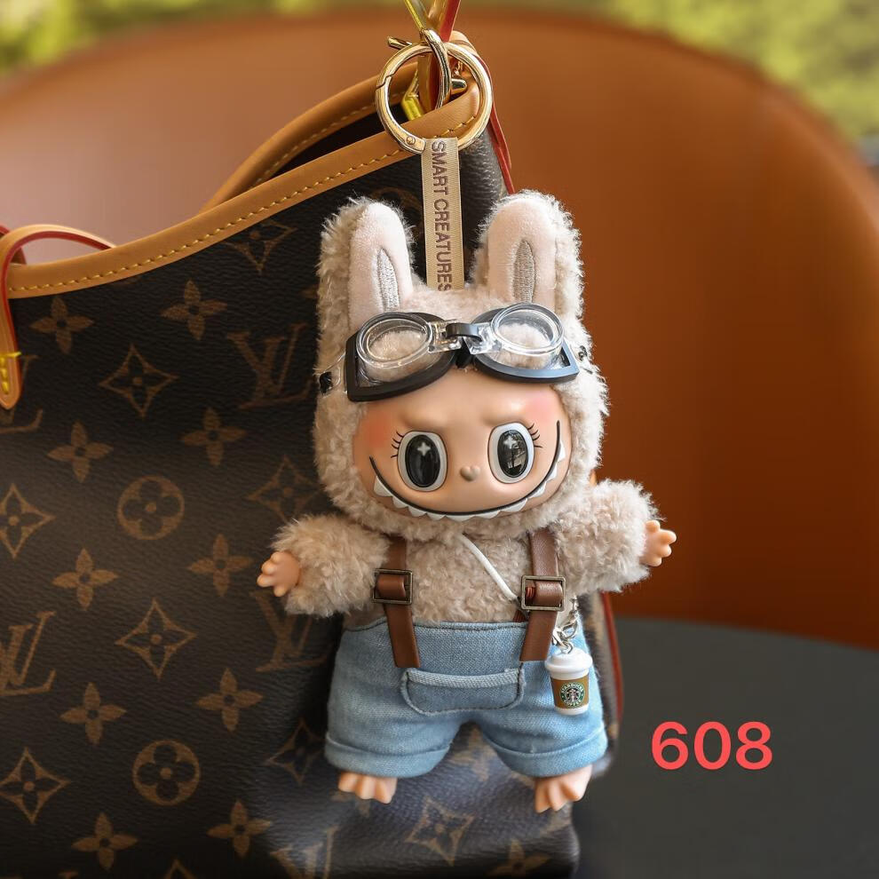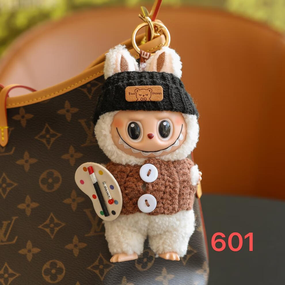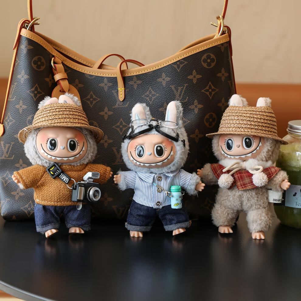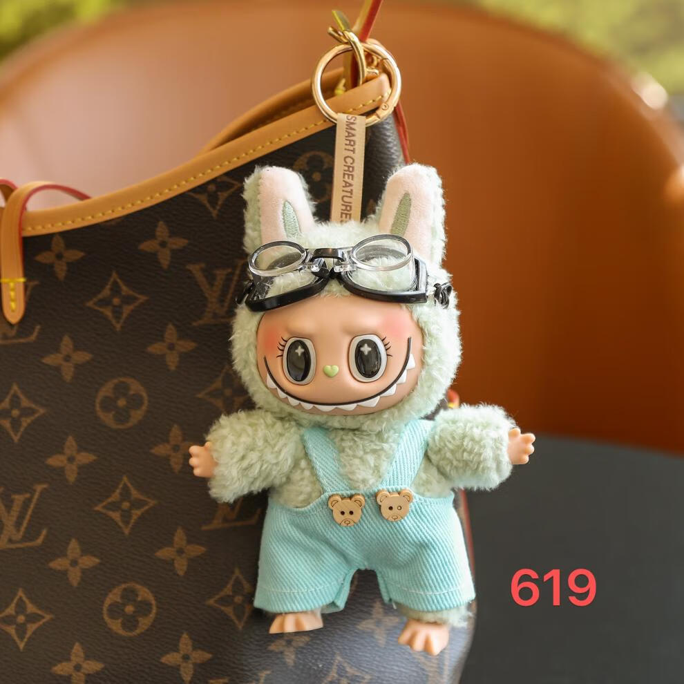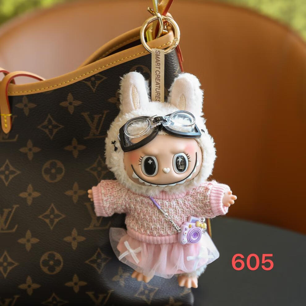 labubu拉布布搪胶毛绒公仔手办贈女生挂件礼物【含娃娃+娃娃】 粉绒萌熊客 【含娃+娃衣】