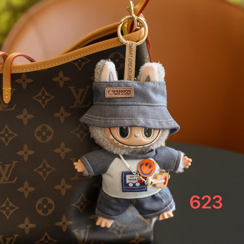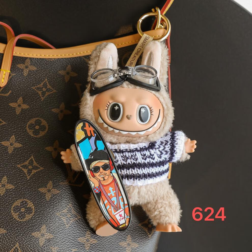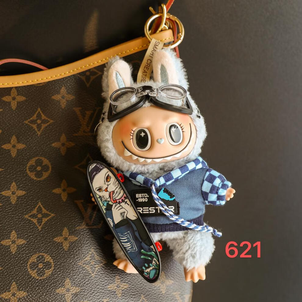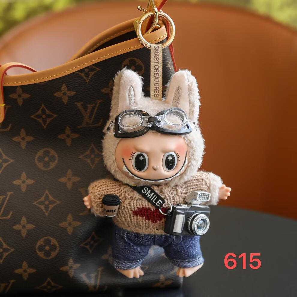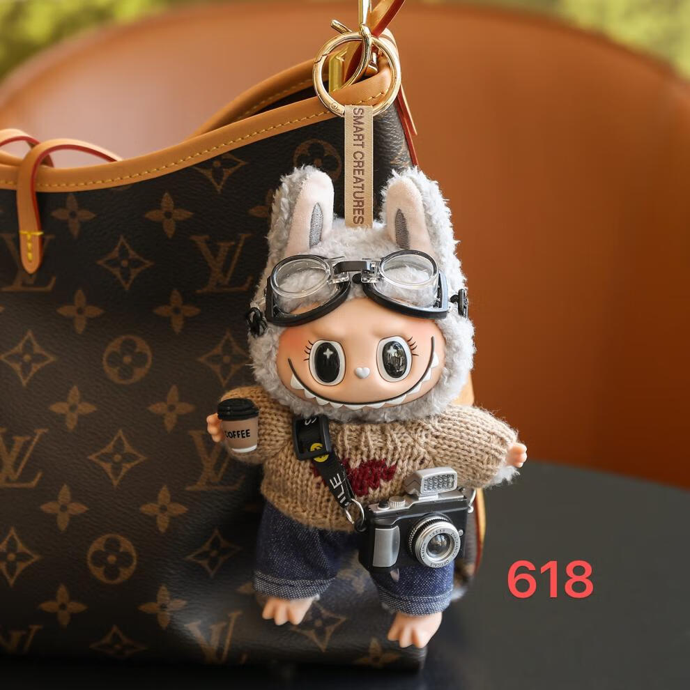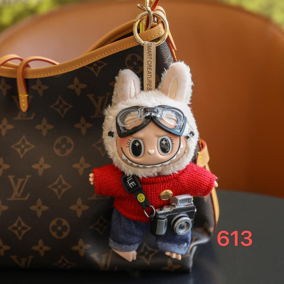 labubu拉布布搪胶毛绒公仔手办贈女生挂件礼物【含娃娃+娃娃】 粉绒萌熊客 【含娃+娃衣】