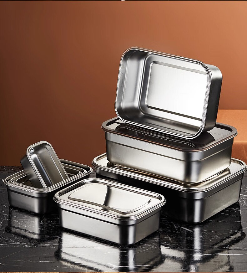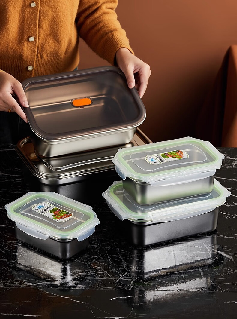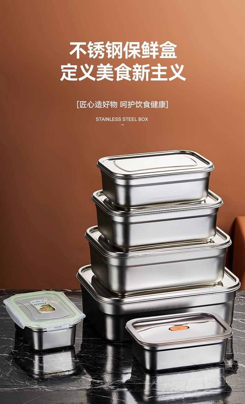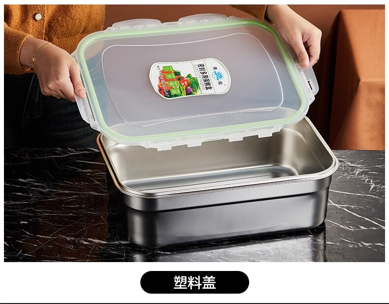 进葆堂316不锈钢保鲜盒食品级可微波炉加热大容量商用带盖冰箱密封饭盒 10号【2800ml】+钢盖/装5斤左右