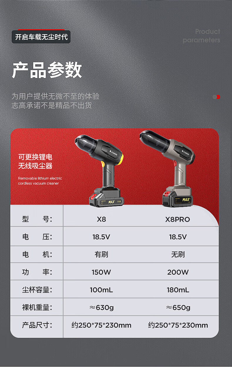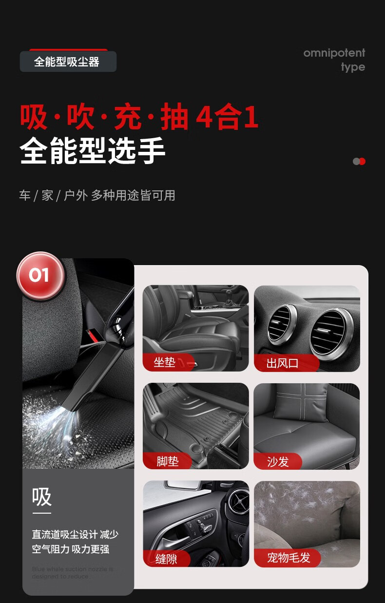 志高无线车载吸尘器大吸力便携多功能车家两用随手吹风除尘一体机 无刷大电机+双电+滤芯*5+收纳箱
