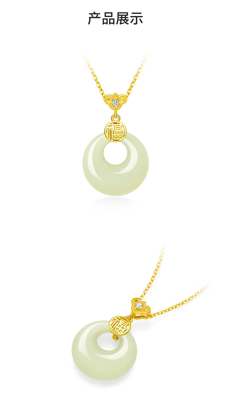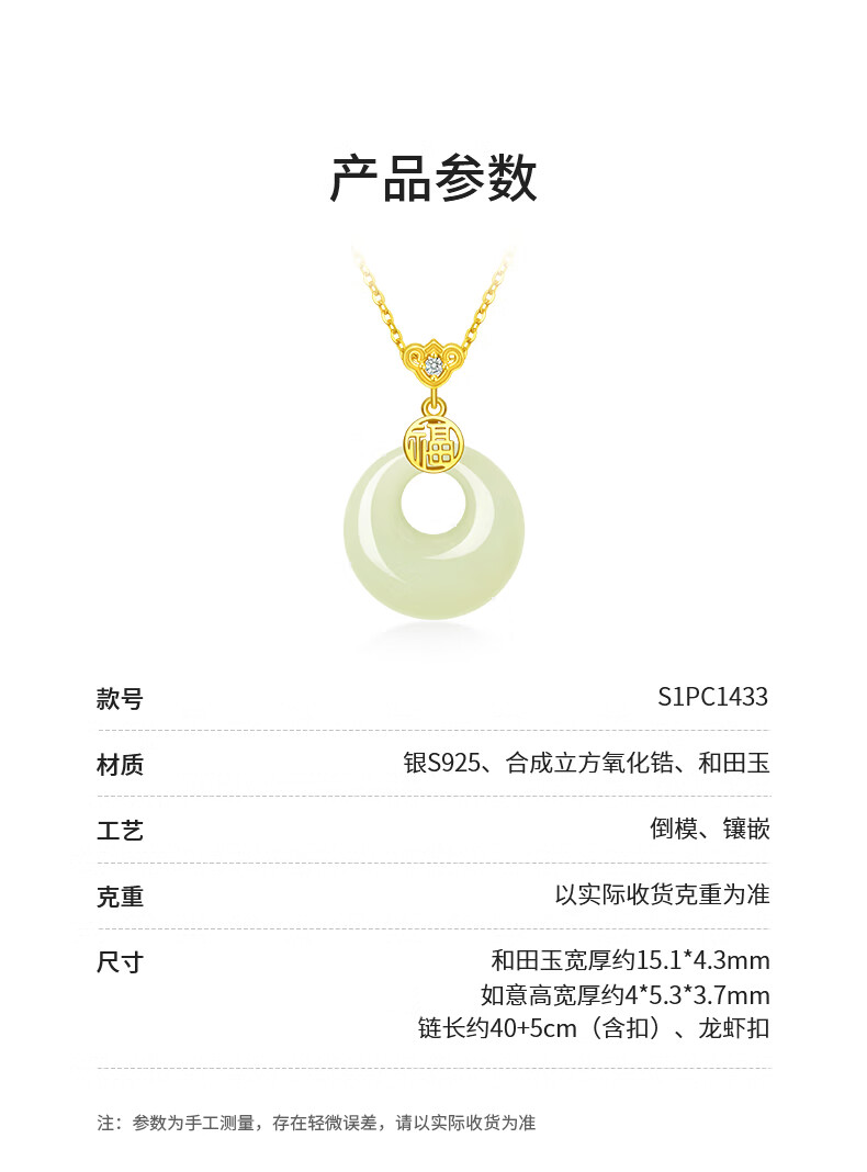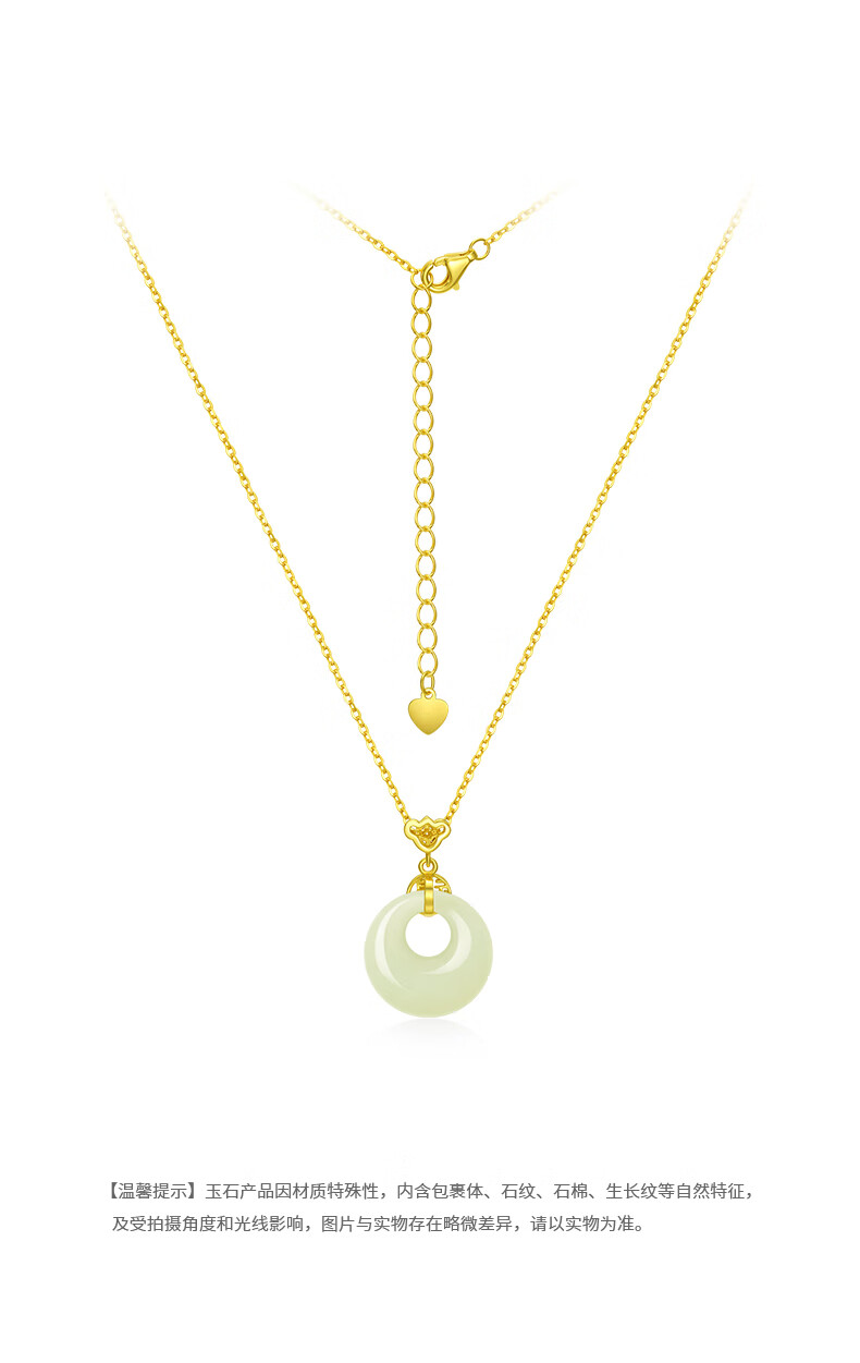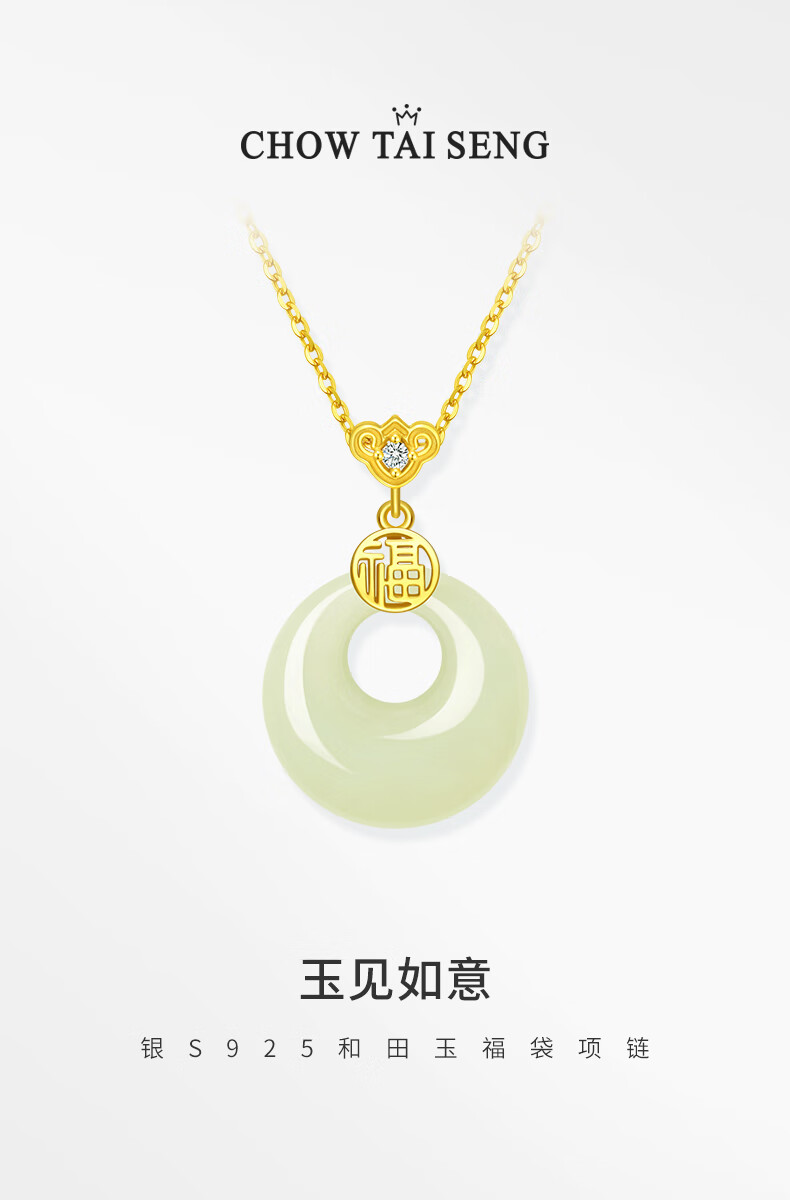 周大生和田玉吊坠银镶玉平安扣福袋项链国潮设计生日礼物送女生 灵蛇献瑞平安扣吊坠