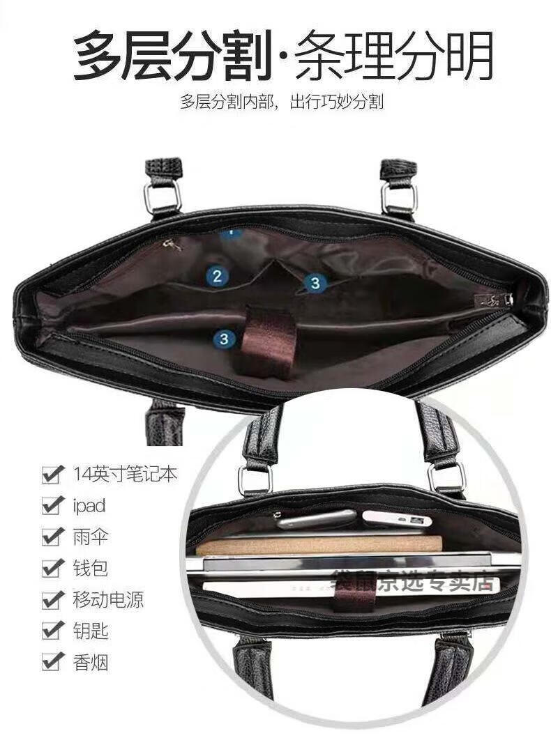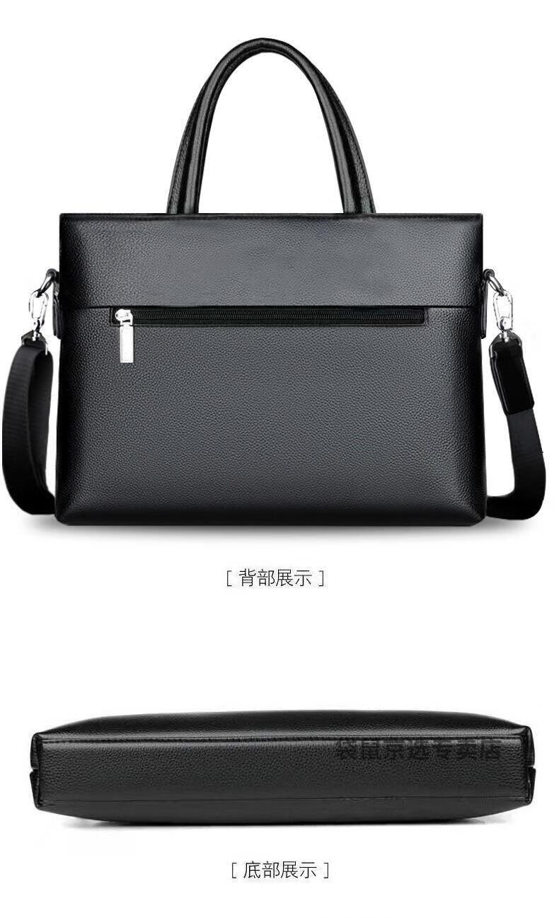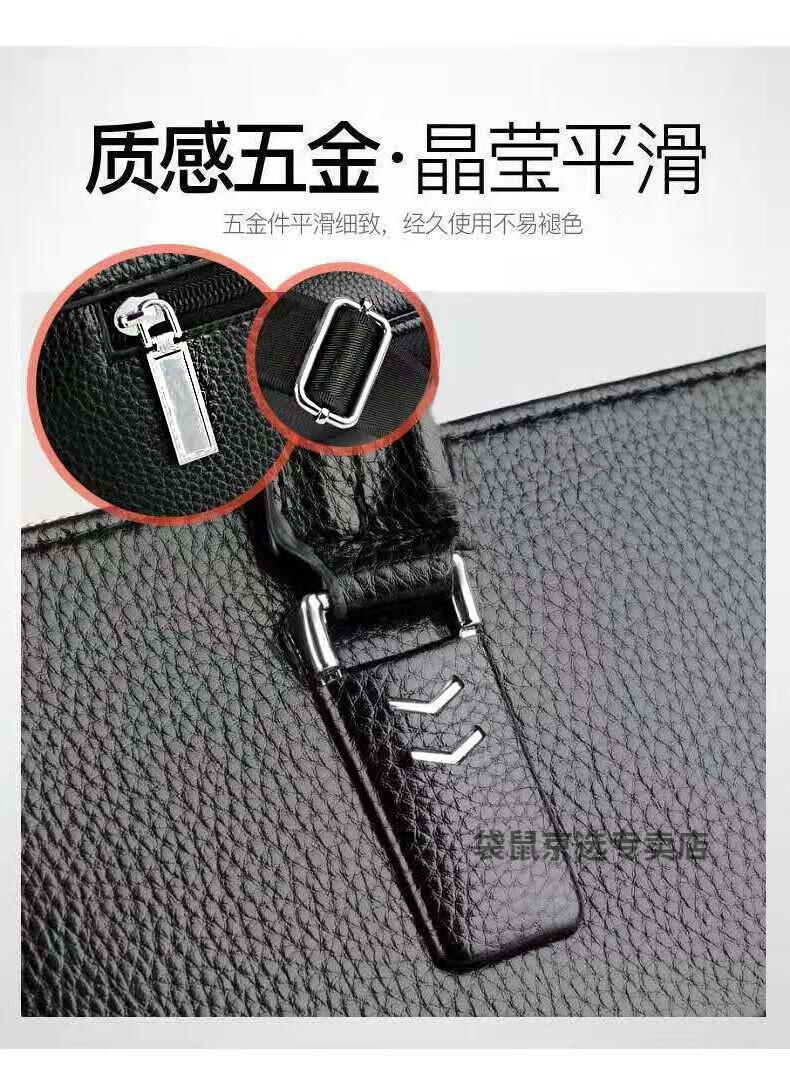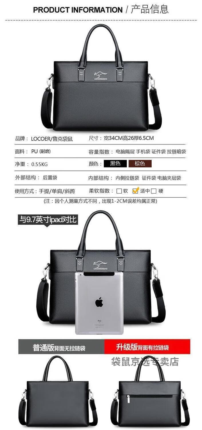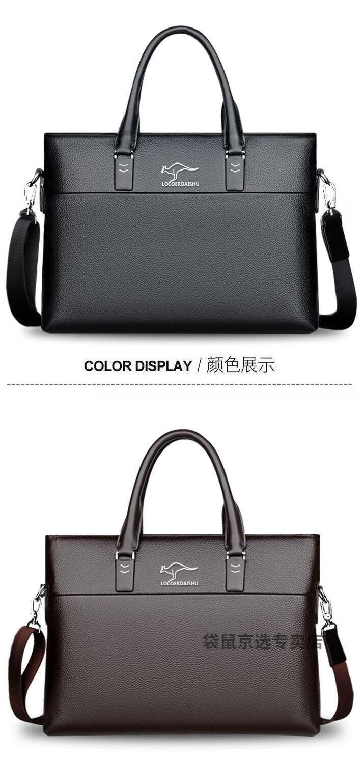 袋鼠轻奢品牌真皮质感男男士横款手提包公文包挎包商务包电脑包男斜挎 黑色升级加厚面料