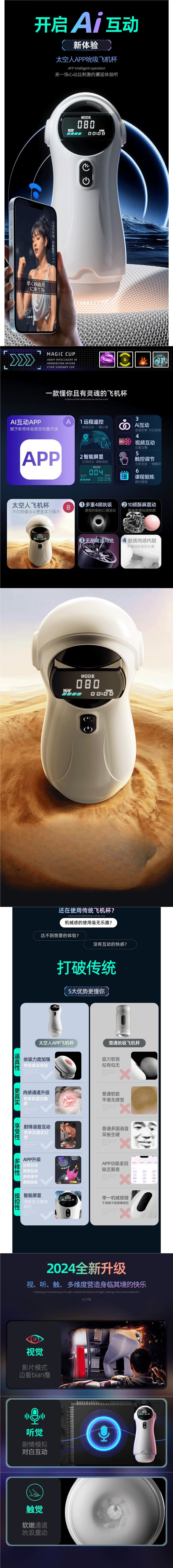 科耐奇 KCONERCHE姬欲太空人飞机杯全自动加热吮吸自动吞吐喷水男性训练自慰器 【APP互动/吮吸/震动/发音】智能液晶屏款 成人情趣用品