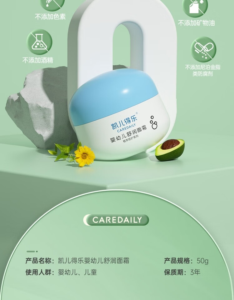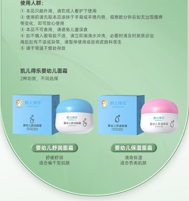 凯儿得乐婴幼儿舒润面霜 深层滋养 养护舒润 适合干燥肌肤 大小宝 宝宝舒润滋养霜50g/瓶
