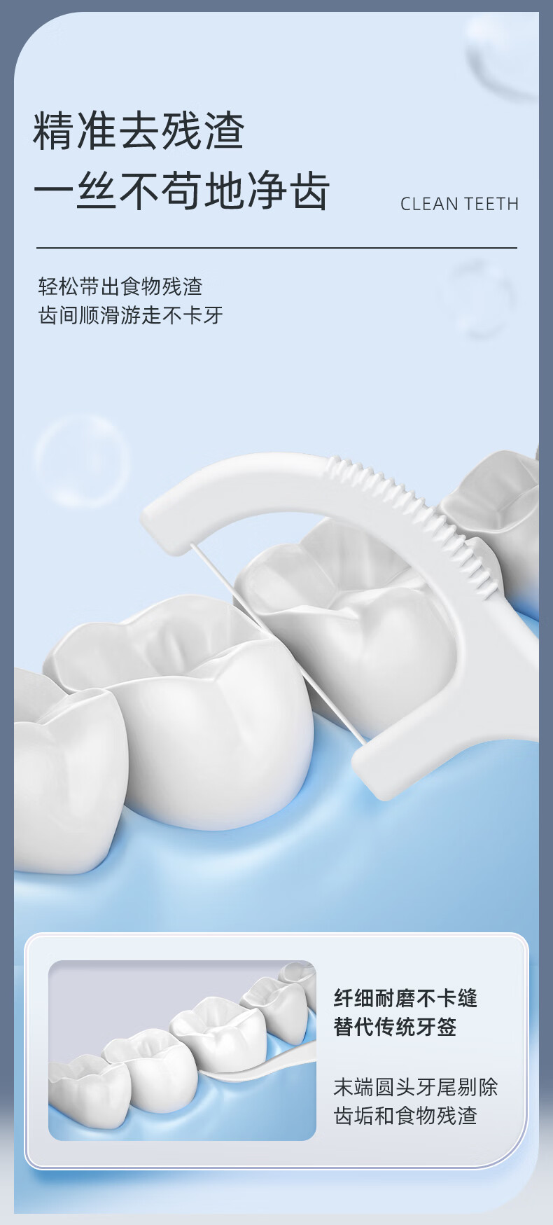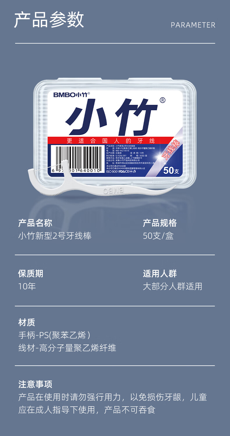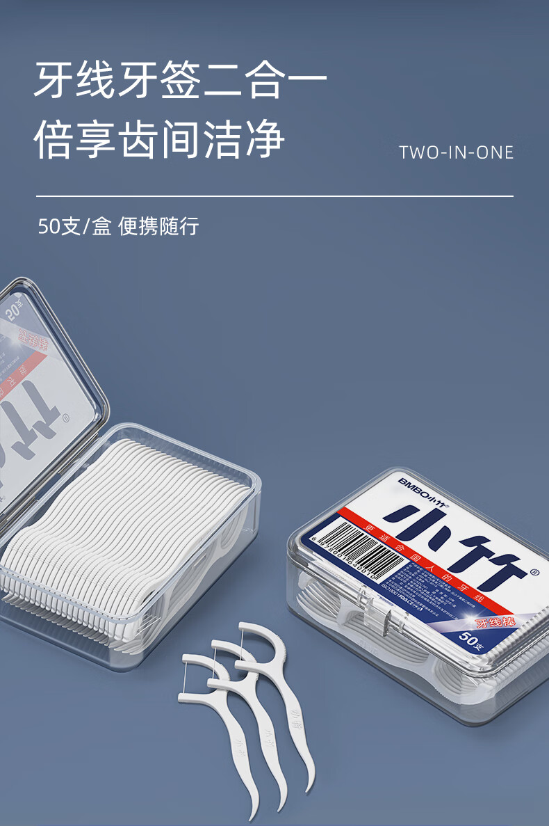小竹牙线棒超细成人牙签线圆线盒便携经典强韧型剔牙牙线独立包装 强韧牙线棒50支*8盒