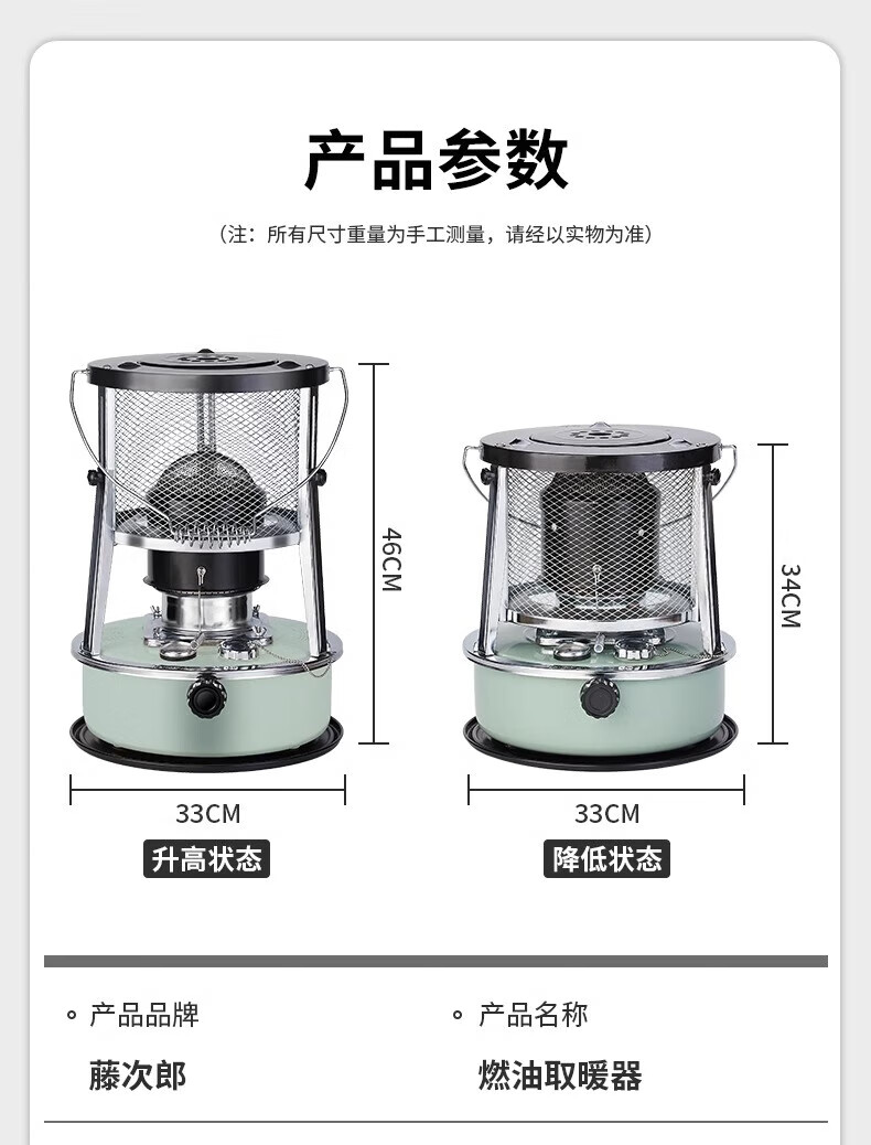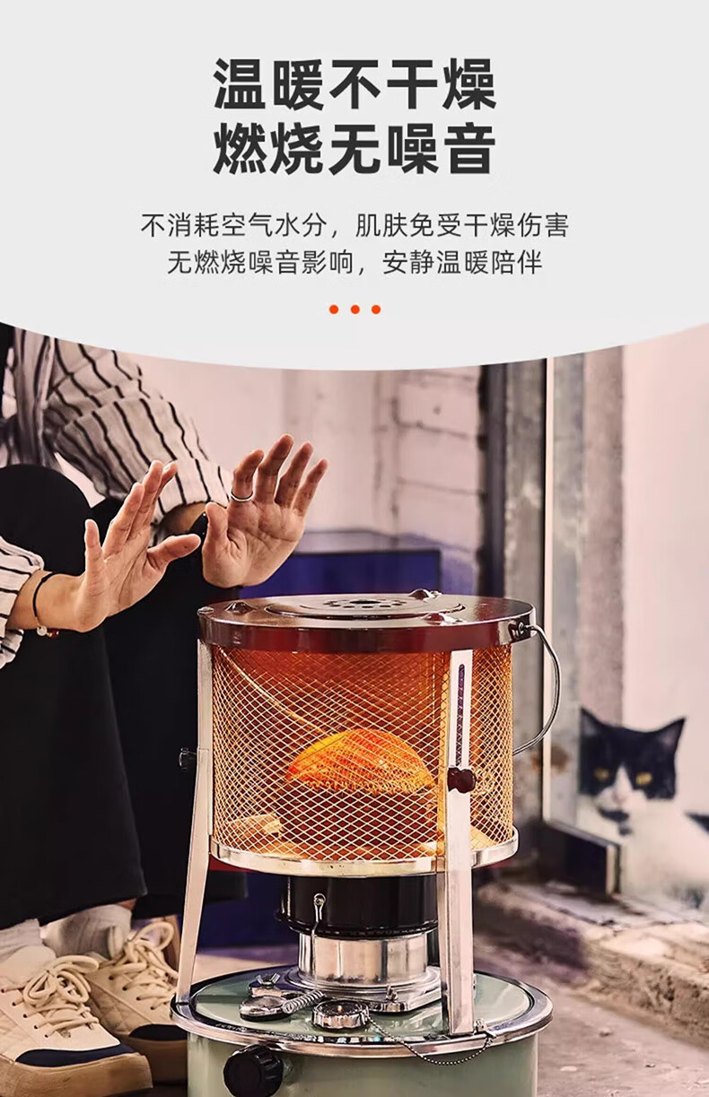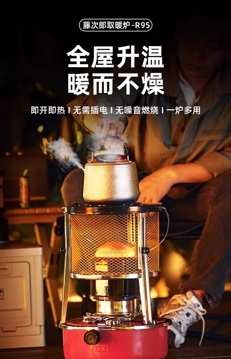 藤次郎煤油取暖炉R95 日式高端露营取暖设备神器帐篷冰钓不插电式供暖炉 乳白色煤油取暖炉+配件套装