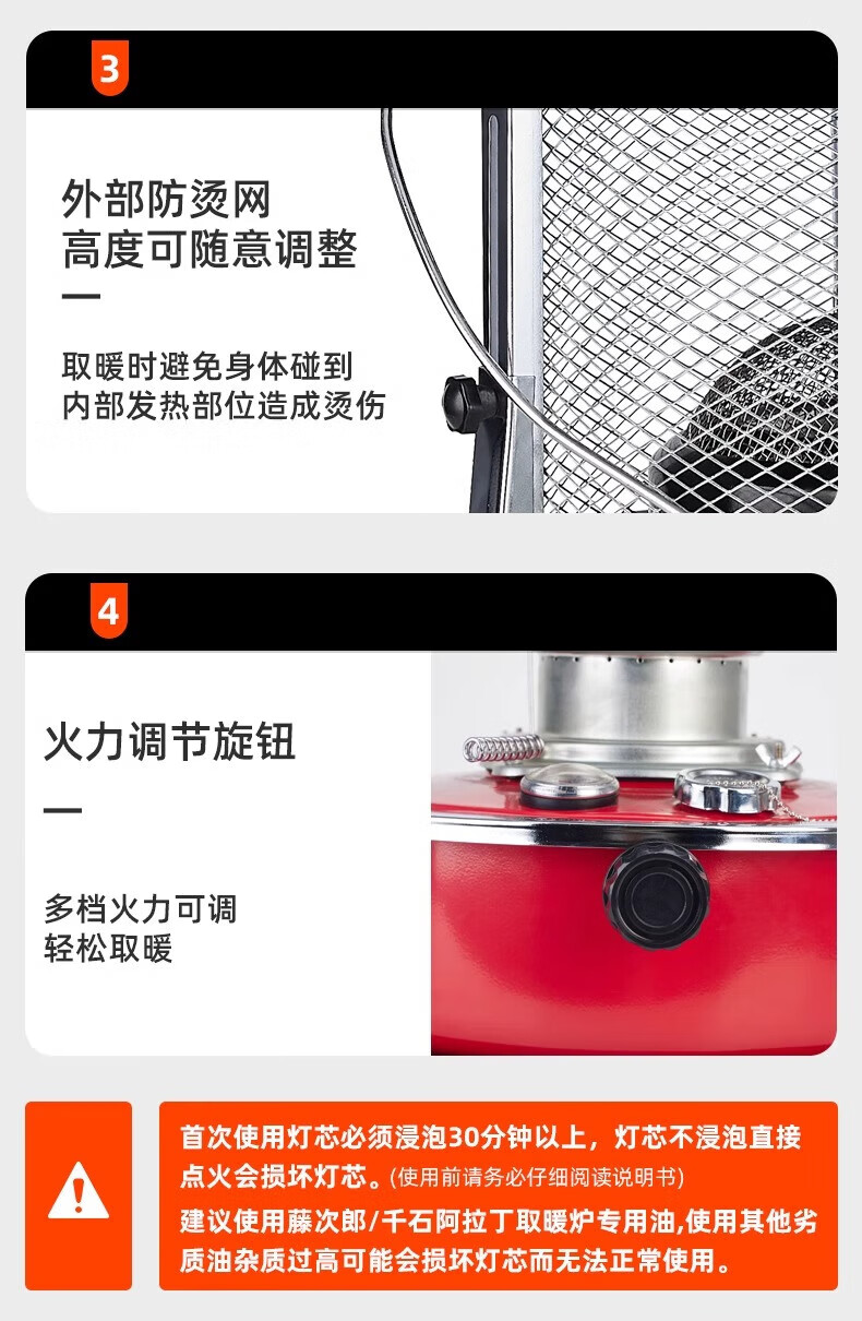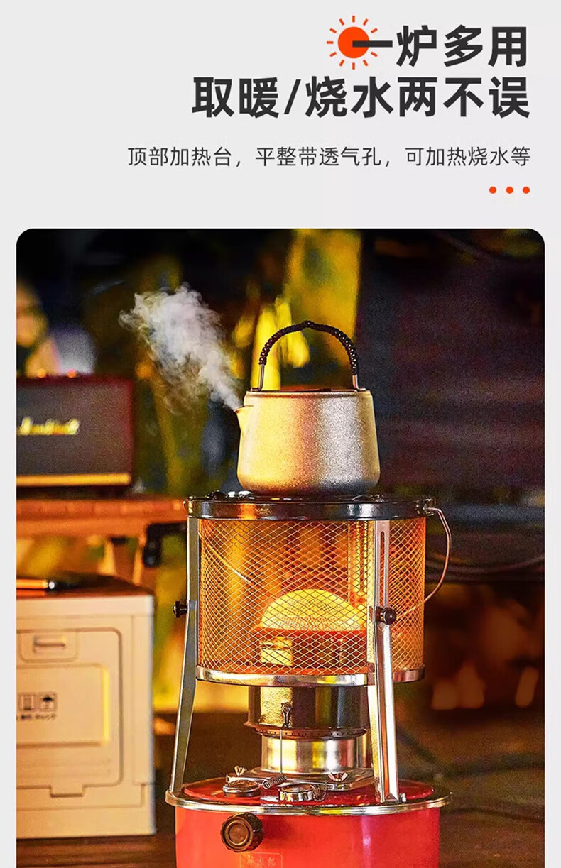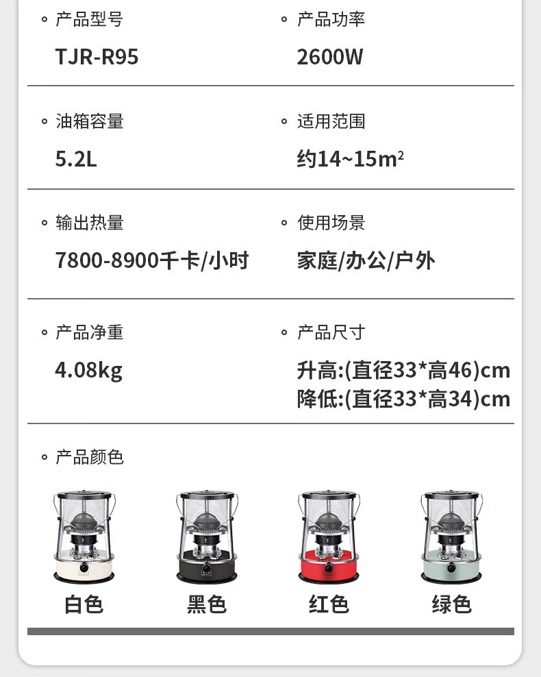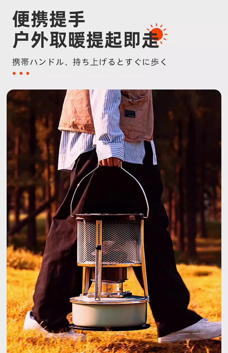 藤次郎煤油取暖炉R95 日式高端露营取暖设备神器帐篷冰钓不插电式供暖炉 乳白色煤油取暖炉+配件套装