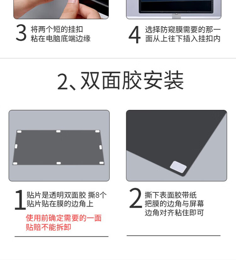 莞膜电脑屏幕防窥膜台式显示器防窥液晶保护膜笔记本防窥屏隐私贴膜 180°不带胶防窥膜*卡扣式安装 27寸窄边框610*340mm